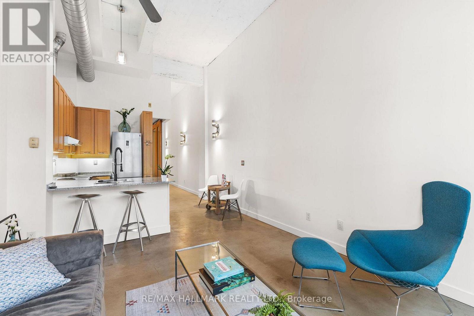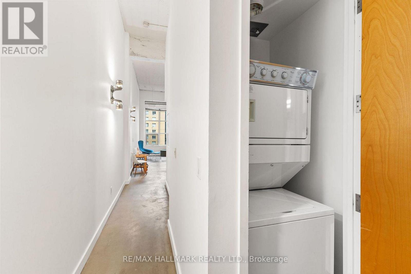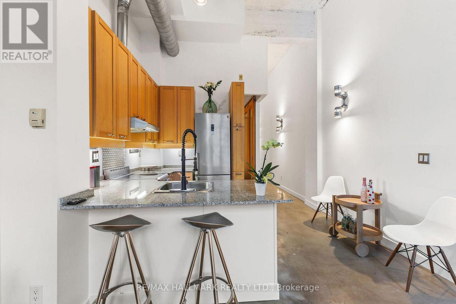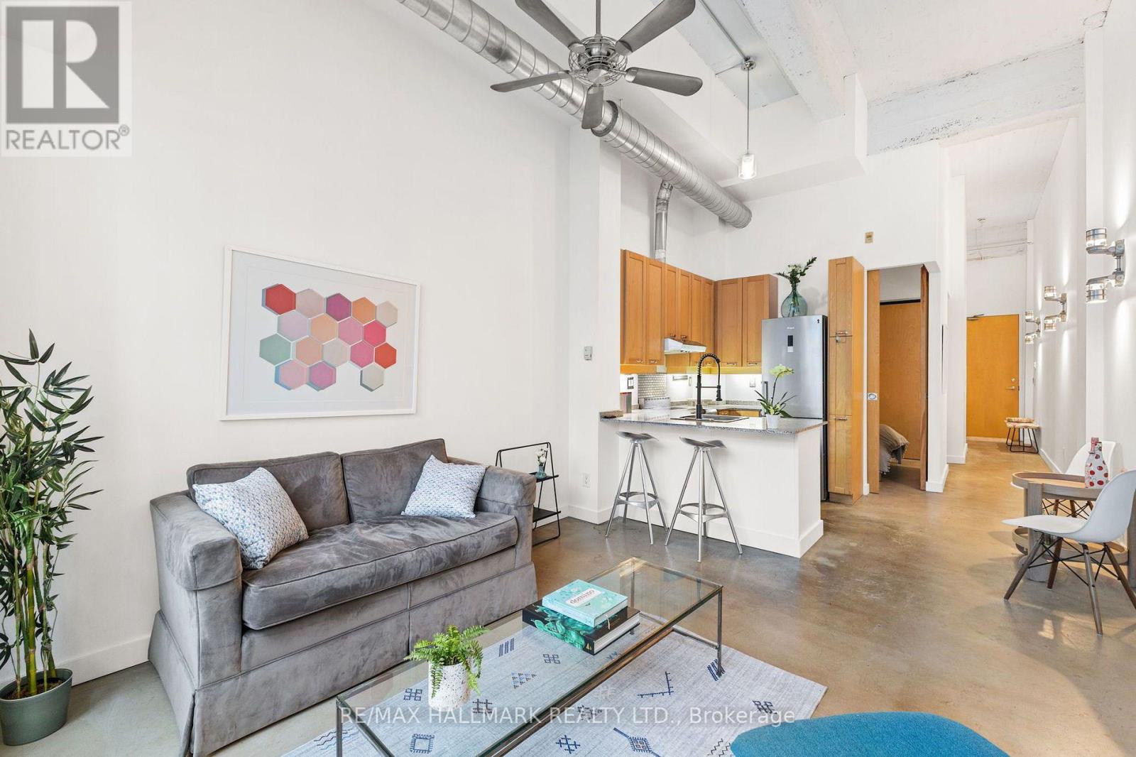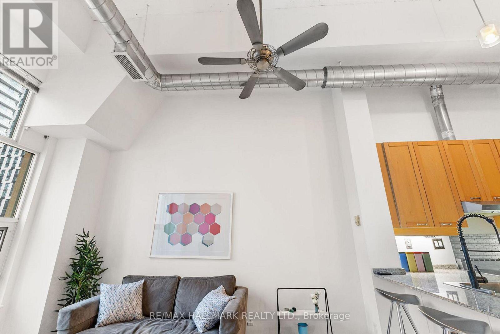 Experience authentic loft living at its finest in the iconic Merchandise Lofts. Suite 404 at 135 Dalhousie Street offers a striking blend of industrial character and modern downtown convenience. This spacious 1-bedroom plus den features soaring 14-foot ceilings, polished concrete floors, and an impressive wall of south-facing windows that flood the space with natural light. The open-concept layout is both functional and inviting, highlighted by a contemporary kitchen that seamlessly connects to the living and dining areas. A generously sized bedroom, versatile den-ideal for a home office or creative space-and a sleek 4-piece bathroom complete the interior. Additional conveniences include ensuite laundry and a dedicated locker for extra storage. Ideally situated in the heart of downtown Toronto, you're just steps from Yonge-Dundas Square, Toronto Metropolitan University, the Financial District, Massey Hall, TTC transit, shopping, dining, and everyday essentials. Residents enjoy access to exceptional building amenities, including a fully equipped fitness centre, indoor pool, basketball court, games rooms, and an expansive rooftop terrace with BBQs, lounge areas, and a dog-friendly play space. A rare opportunity to lease a true hard loft in one of Toronto's most sought-after buildings-offering style, space, and unbeatable urban accessibility. (id:51158)