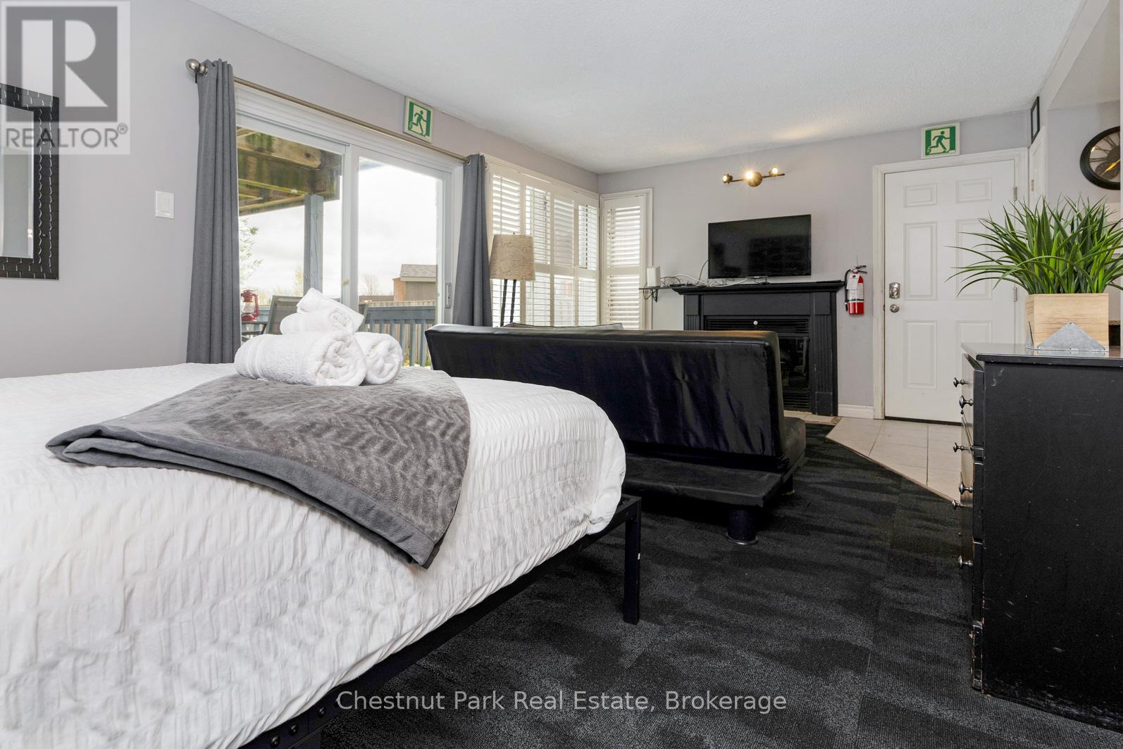 $506.70 MonthlyNorth Creek Resort at Blue ~ income plus enjoyment! Great studio unit steps from the ski gate to Blue Mountain ski hill. Currently short term accommodation (STA) licence approved and renting on Airbnb, buyer to apply and meet criteria with the Town of The Blue Mountains if you wish to continue renting the unit out. Fully furnished and equipped, with a queen bed, pull out couch, in total the unit sleeps 4. Options available for combination of personal use, nightly/weekend/extended rentals. Enjoy the community amenities such as the year round outdoor hot tub, summer heated swimming pool, tennis/pickleball courts, community BBQ, lounge in Gatehouse, overnight security, snow removal to right to the door, Rogers Ignite TV and unlimited Internet, all included in Condo Maintenance. Conveniently dine onsite at the Indian Restaurant, or you can walk, bike, or take the shuttle to Village at Blue Mountain to dine and shop. HST and BMVA fees apply, and in addition to sale price. North Creek Resort at Blue is a member of the Blue Mountain Village Association, fees and corresponding benefits apply. Special assessment until 2027. North Creek Resort at Blue was previously known as Mountain Springs Resort. This is your chance to enjoy your weekend getaways & ski vacations, and supplement the costs with rental possibilities. (id:51158)
