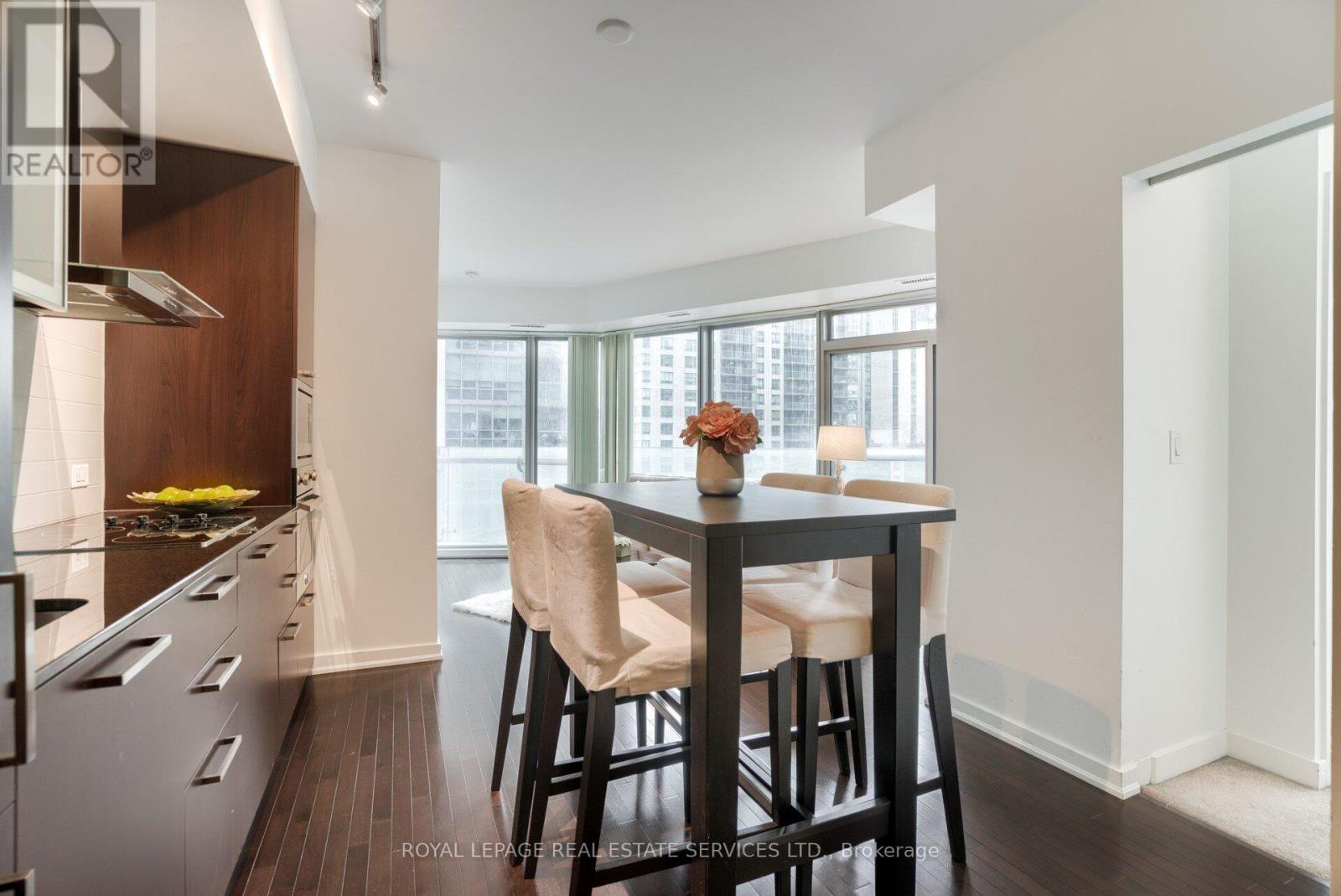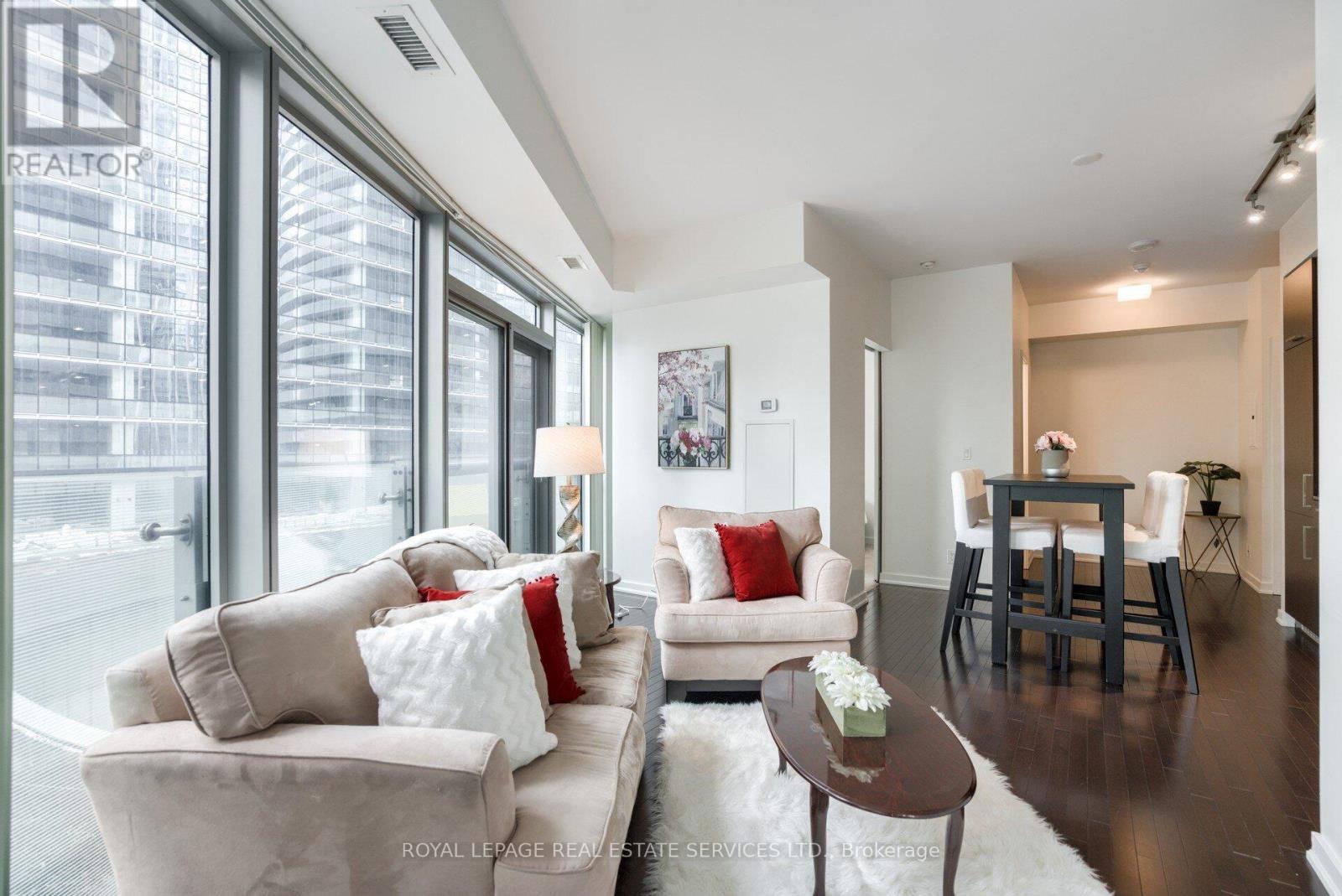 $771.10 MonthlyWelcome to luxury living in Toronto's vibrant waterfront community! This stunning 2 Bedroom + Study suite (751 sq.ft.) boasts floor-to-ceiling windows with breathtaking views. Enjoy an open-concept layout with 9' ceilings, hardwood floors, and a stylish Kitchen. The primary bedroom features a private balcony walkout and an ensuite for your comfort. Steps to TTC, Rogers Centre, Harbourfront, CN Tower, and the Financial & Entertainment Districts. Connected to the PATH for year-round convenience. Exceptional building amenities complete this perfect urban lifestyle! (id:51158)