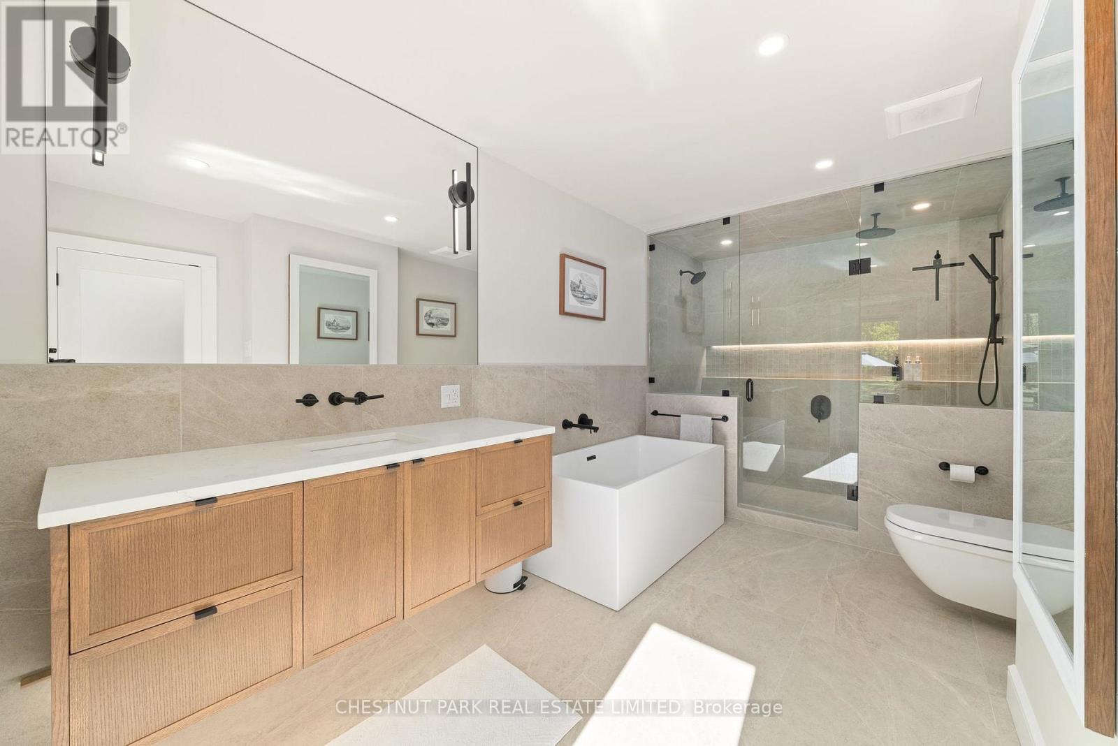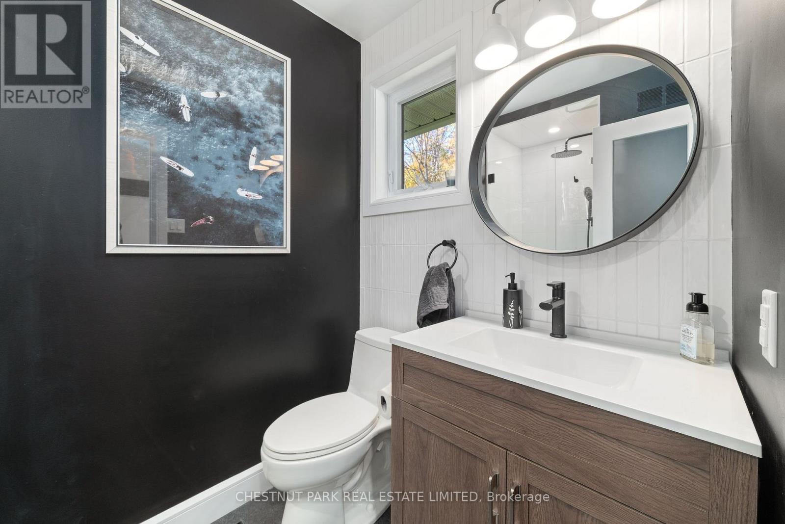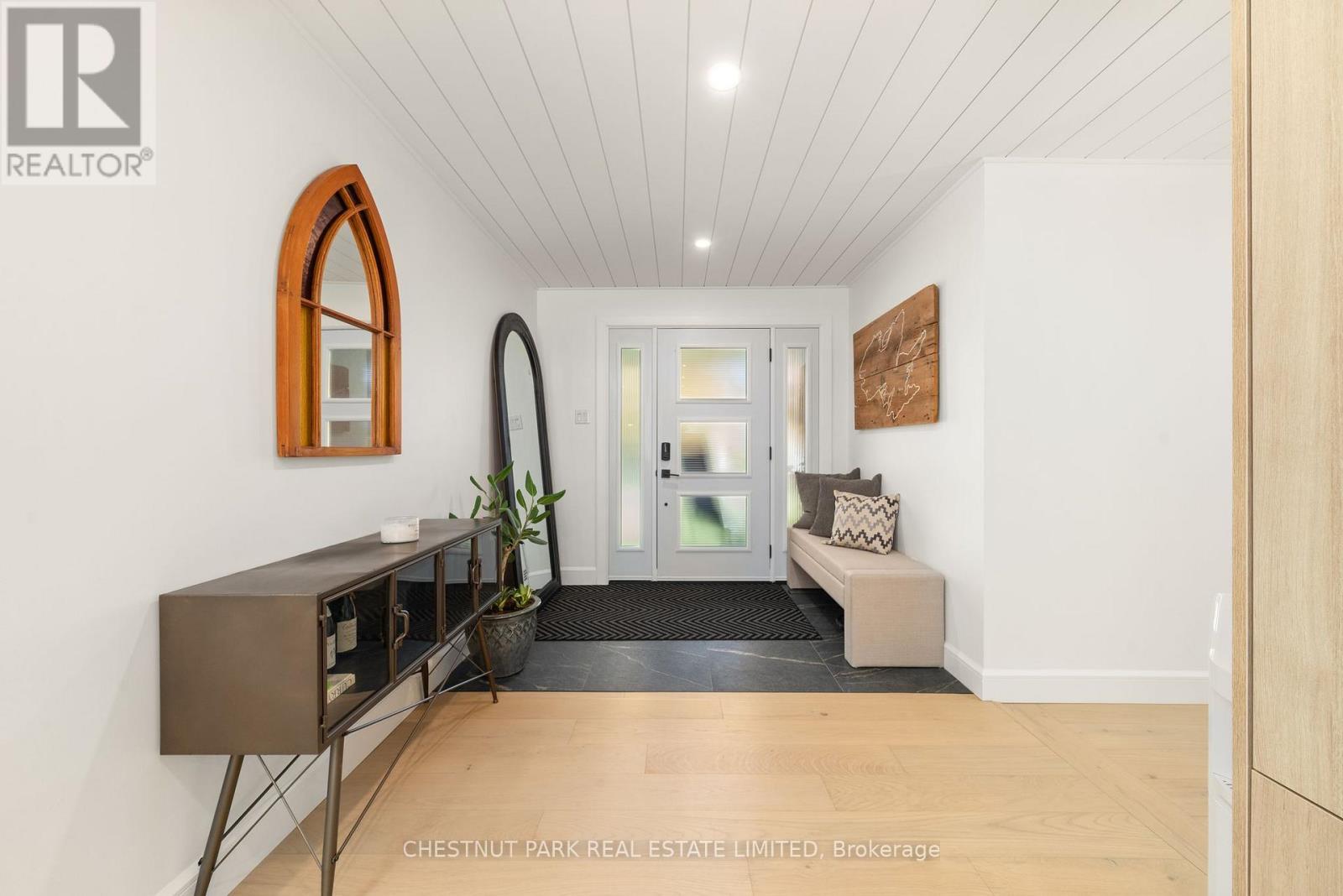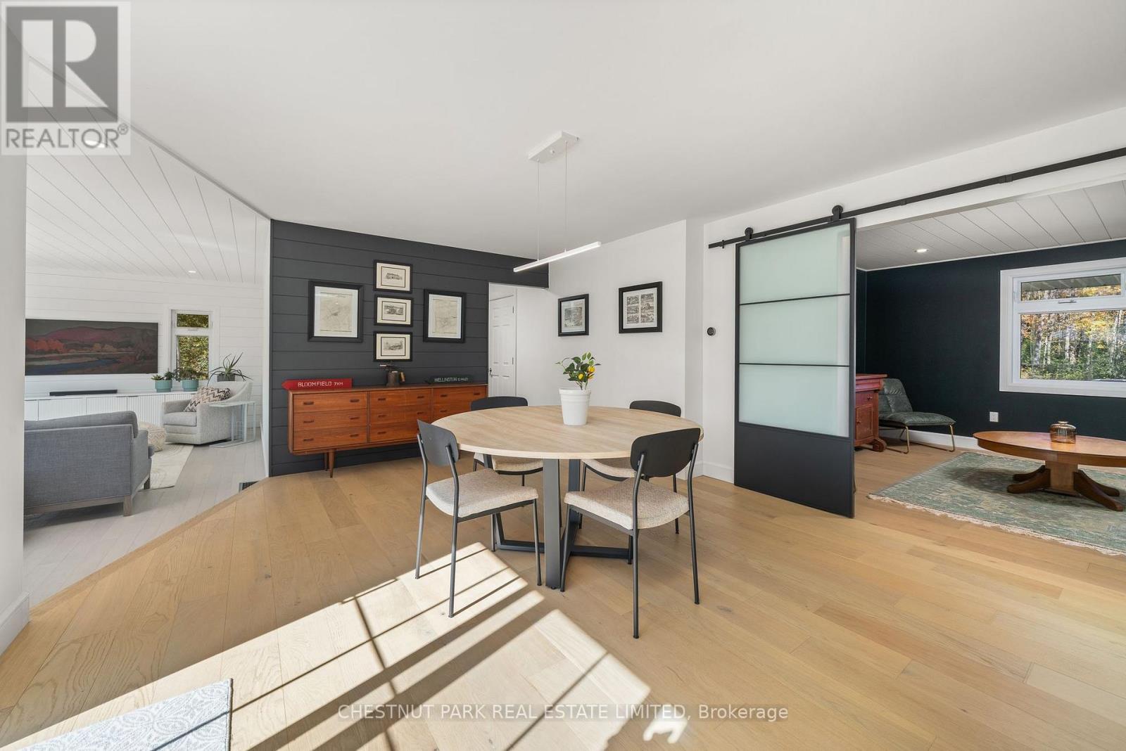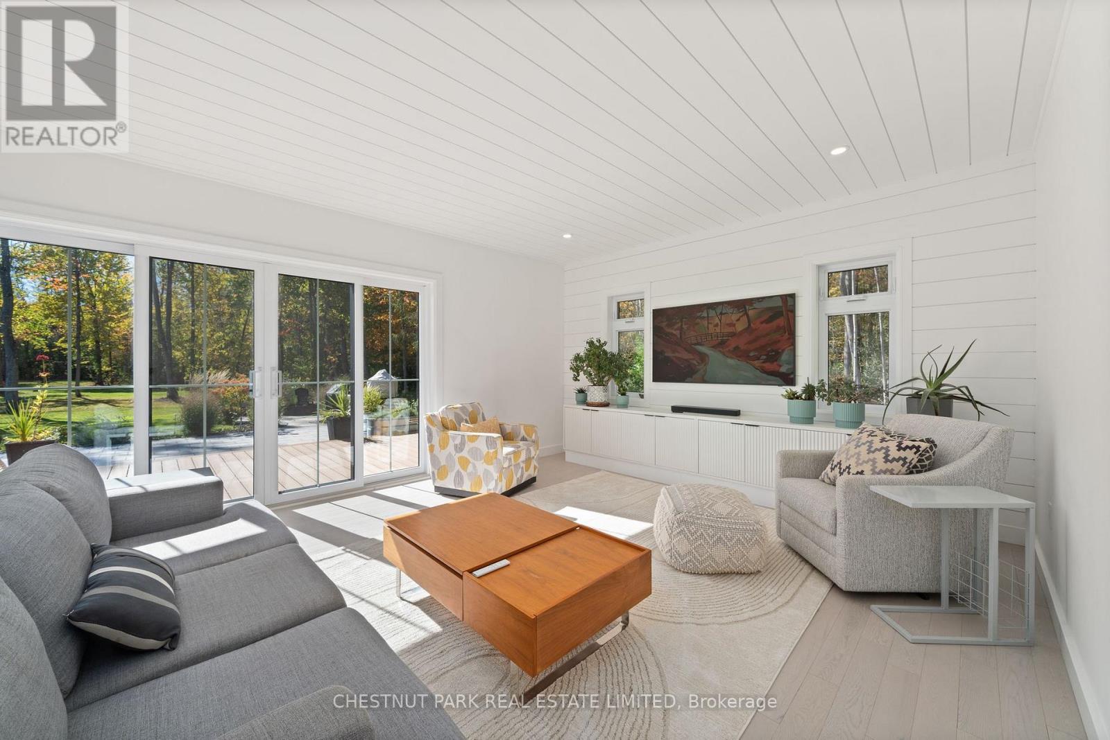 Discreetly set back from the road and enveloped by green space, this masterfully reimagined residence offers over 1,800 SQ FT of sophisticated single-level living, meticulously renovated with both modern luxury and enduring materials. Every element from the Trex composite decking to the custom millwork has been executed with a thoughtful eye for detail and a deep respect for craftsmanship. Inside, soaring ceilings, shiplap accents, and engineered hardwood floors lead you through a gracious open-plan design where the kitchen, dining, and living areas flow effortlessly for entertaining or quiet evenings at home. The bespoke kitchen, adorned with sleek cabinetry and premium appliances, anchors the heart of the home, while expansive windows frame the surrounding haven and flood the interior with natural light. Three well scaled bedrooms, including a generous primary suite with walk-in and spa-like ensuite, offer serene retreats. Generous secondary bedrooms and a full guest bath extend the home's capacity for comfort and flexibility. Electrical and plumbing systems have been fully upgraded, including a state-of-the-art water filtration setup and Intellidrive pressure system. Beyond the interiors, a saltwater pool glistens as the catapult into a backyard oasis with an invitation to relax, entertain, and immerse in the luxury of outdoor living. Exterior updates elevate livability and include new siding, roofing, patios, walkways, and integrated landscape lighting create a setting that is both polished and inviting. The attached double garage won't disappoint while adding convenience, storage, and potential for additional creative / work at home pursuits. Perfectly positioned on the edge of Picton and central to The County's most celebrated destinations, this home is a turn-key invitation to embrace refined County living. In every sense, it is ready to be experienced. (id:51158)
