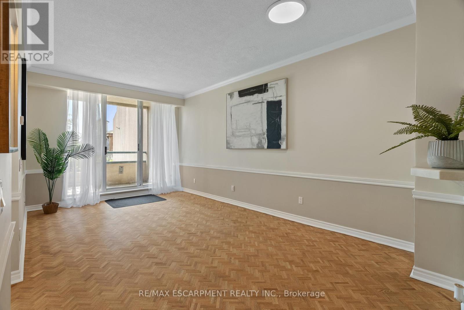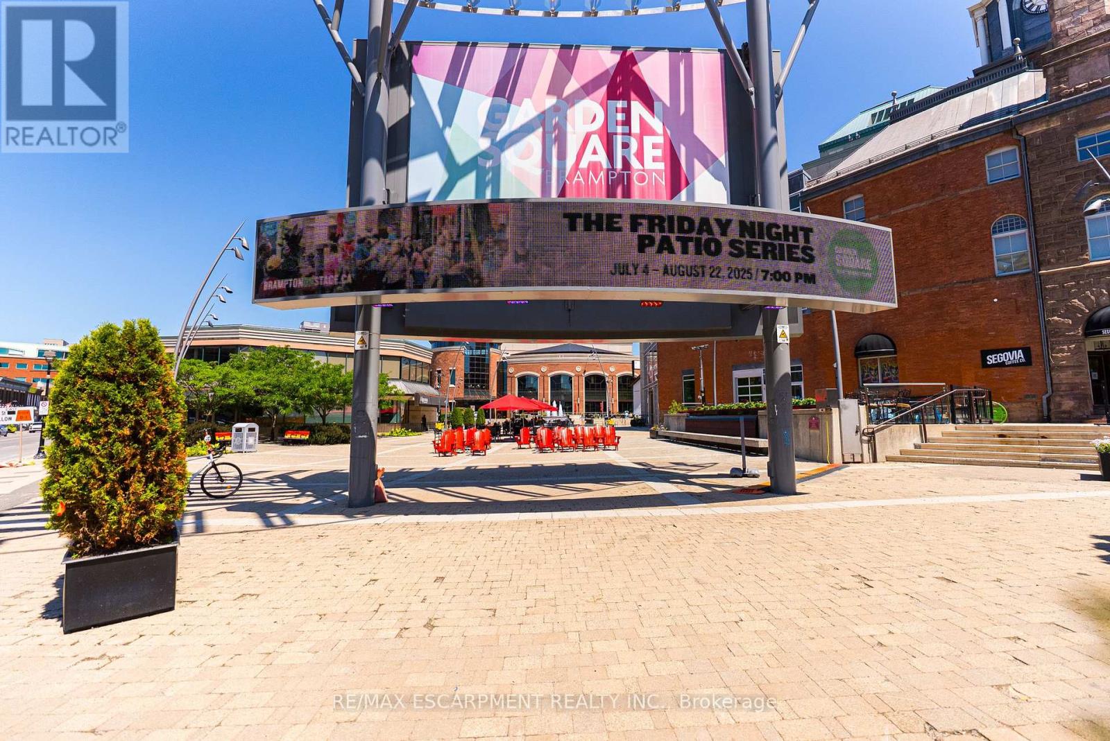 $524.47 MonthlyWalk-out to the rooftop terrace - ideal for relaxation & fun summer nights entertaining family & friends! Spacious primary bedroom features a larger closet. Versatile den w/spacious closet & double entrance doors is super ideal layout, perfect for working from home or hosting guests. Do you like to cook? You'll appreciate the tall kitchen cupboards & euro design. This bright & trendy 1+1 bedroom unit has been freshly painted, newly sanded herringbone floors, excellent amenities. Low cost monthly fees & all located in downtown Brampton. Steps to Gage park, GO station, YMCA, Rose Theatre, Restos & Cafes! (id:51158)