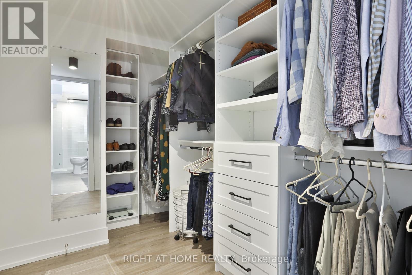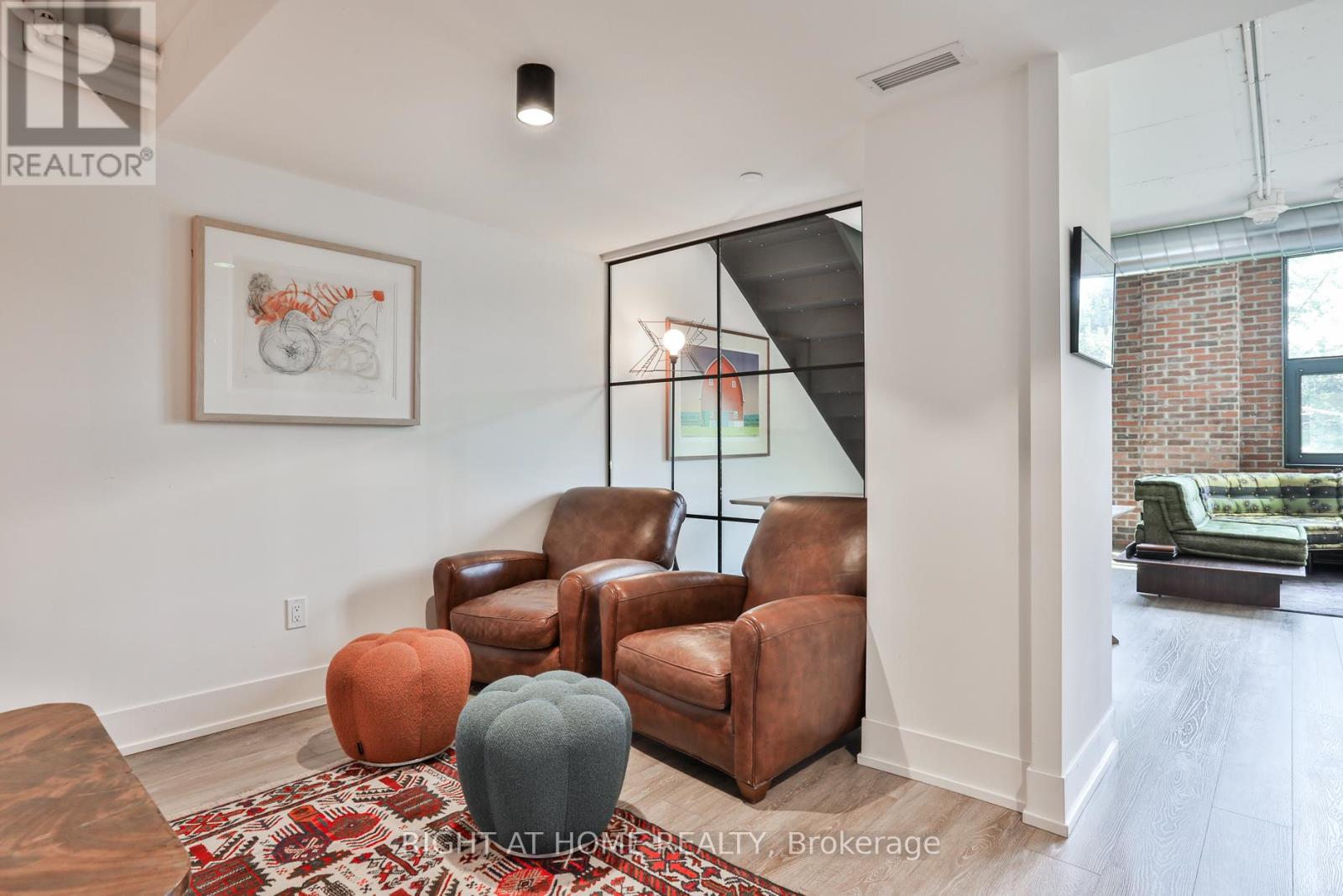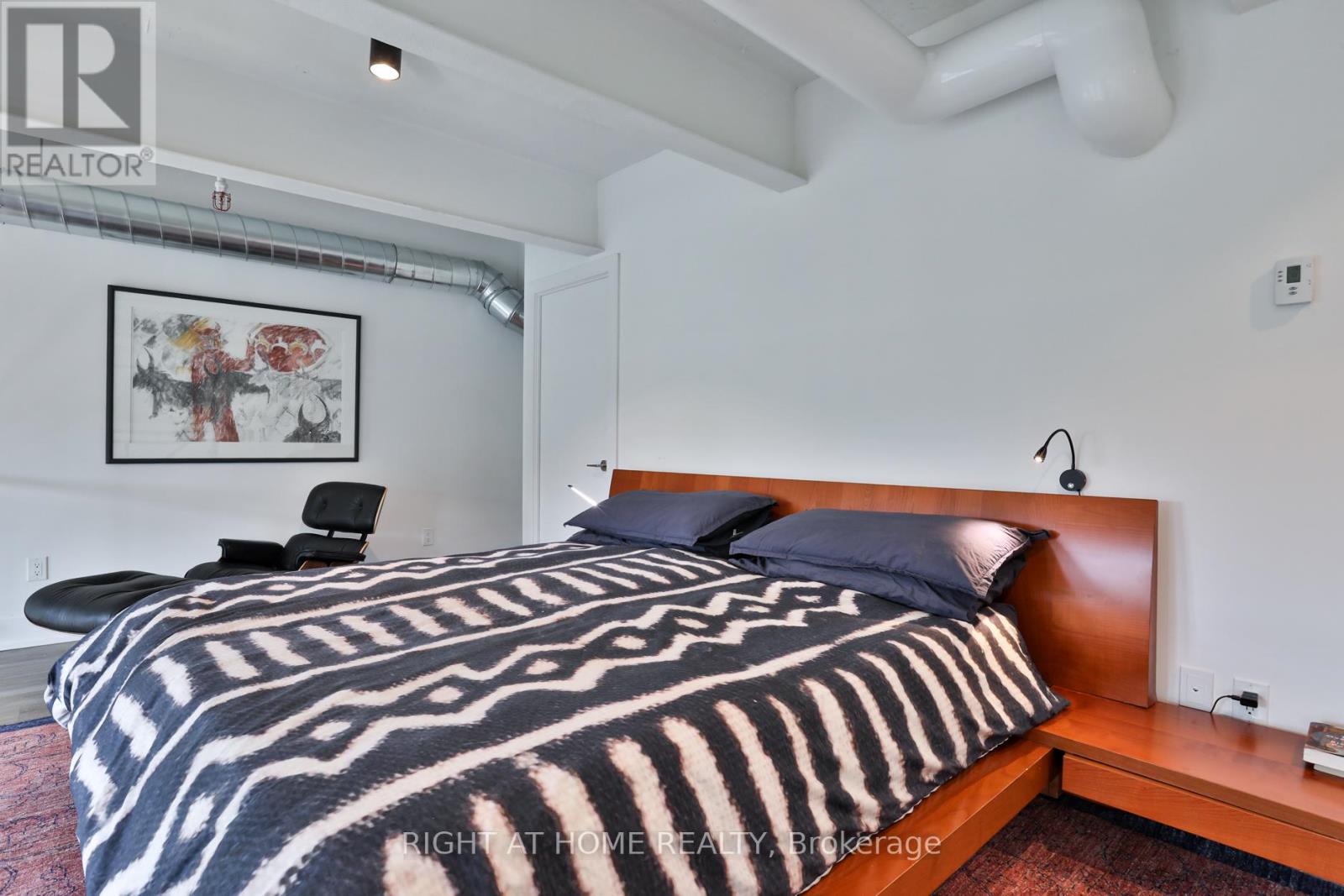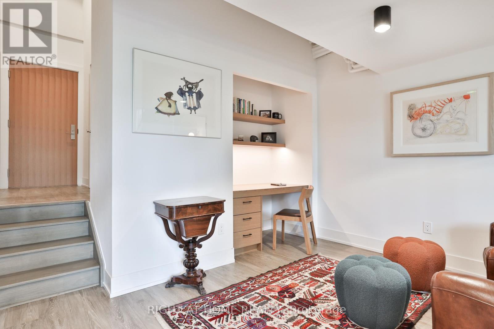 Something truly special at Wonder Condos - a sun-filled heritage loft with ideal west exposure, dramatic 17-foot ceilings, and original character throughout. Nearly 1,500 square feet of exceptional living space framed by soaring windows with integrated blinds, warm red brick accents, and a flexible floorplan accommodating up to three bedrooms. The upper loft is devoted to a serene primary suite with a generous walk-in closet and spa-like ensuite with dual vanities. A sprawling chefs kitchen anchors the main level, featuring an oversized island, abundant storage, premium appliances and induction range. Currently, the main floor includes a large office with custom built-ins and walk-in closet (easily reverted to a bedroom) plus a comfortable den, once a third bedroom. A full bathroom serves this level. Life at Wonder Condos offers a dynamic blend of history and modern convenience, with vibrant amenities including a rooftop terrace with BBQs and fire pits, co-working space, dog-wash station, well-equipped gym, and kids party room. Steps to the shops and dining of Queen East, and moments to Ashbridges Bay, Lake Ontario, and easy downtown/DVP access. An evolving neighbourhood within easy walking and cycling distance to the new Port Lands, Biidaasige Park, and the upcoming Ontario Line just blocks away. Exceptional space in a remarkable community. (id:51158)