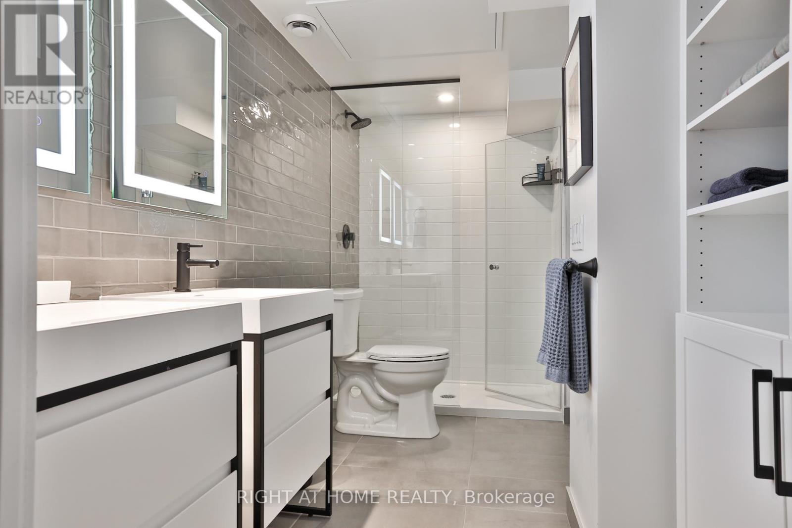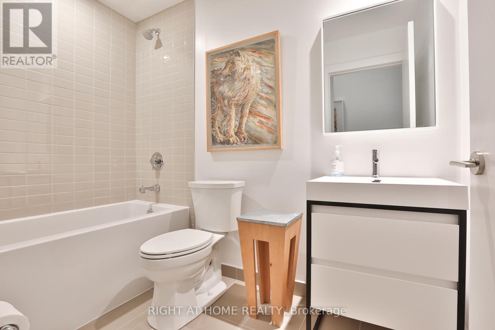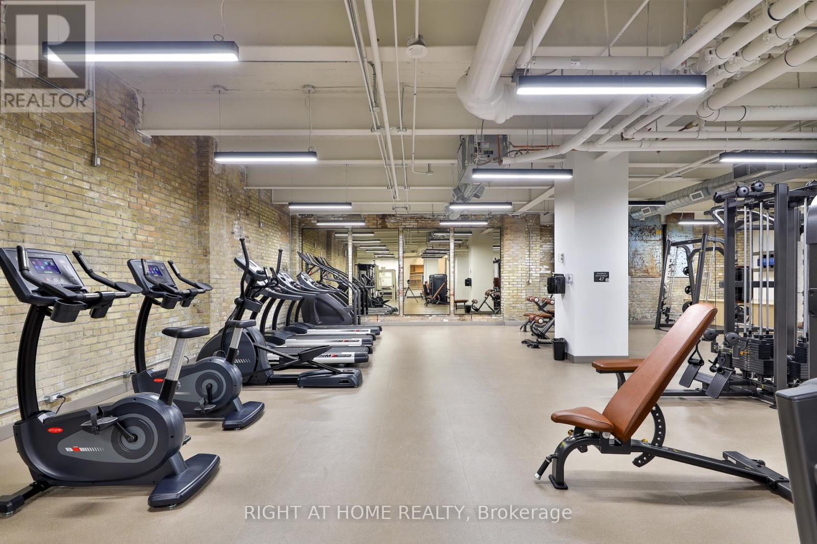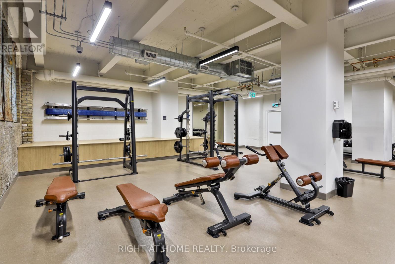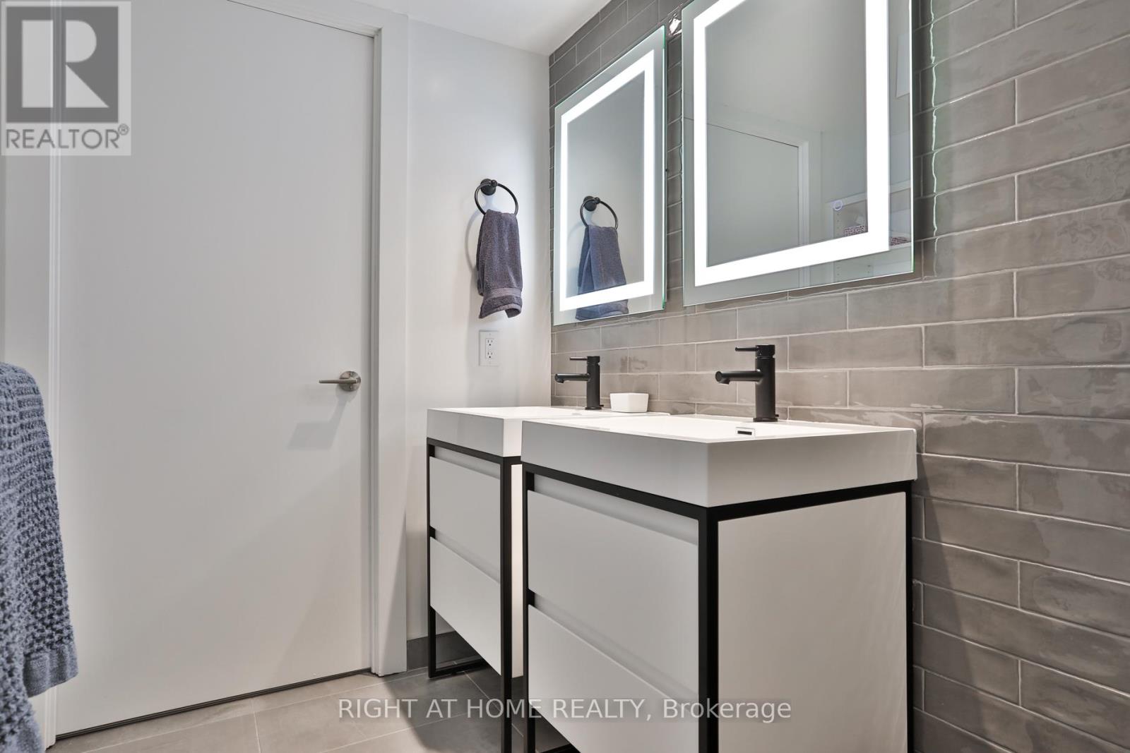 Something truly special at Wonder Condos - a sun-filled heritage loft with ideal west exposure, dramatic 17-foot ceilings, and original character throughout. Nearly 1,500 square feet of exceptional living space framed by soaring windows with integrated blinds, warm red brick accents, and a flexible floorplan accommodating up to three bedrooms. The upper loft is devoted to a serene primary suite with a generous walk-in closet and spa-like ensuite with dual vanities. A sprawling chefs kitchen anchors the main level, featuring an oversized island, abundant storage, premium appliances and induction range. Currently, the main floor includes a large office with custom built-ins and walk-in closet (easily reverted to a bedroom) plus a comfortable den, once a third bedroom. A full bathroom serves this level. Life at Wonder Condos offers a dynamic blend of history and modern convenience, with vibrant amenities including a rooftop terrace with BBQs and fire pits, co-working space, dog-wash station, well-equipped gym, and kids party room. Steps to the shops and dining of Queen East, and moments to Ashbridges Bay, Lake Ontario, and easy downtown/DVP access. An evolving neighbourhood within easy walking and cycling distance to the new Port Lands, Biidaasige Park, and the upcoming Ontario Line just blocks away. Exceptional space in a remarkable community. (id:51158)