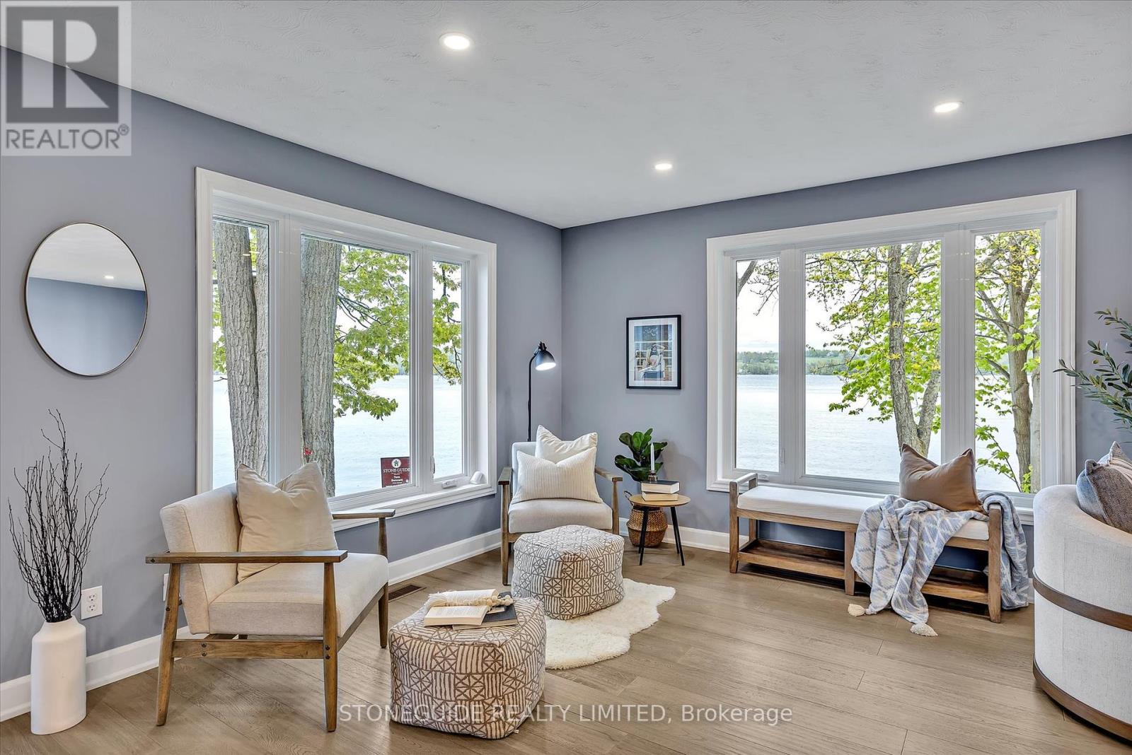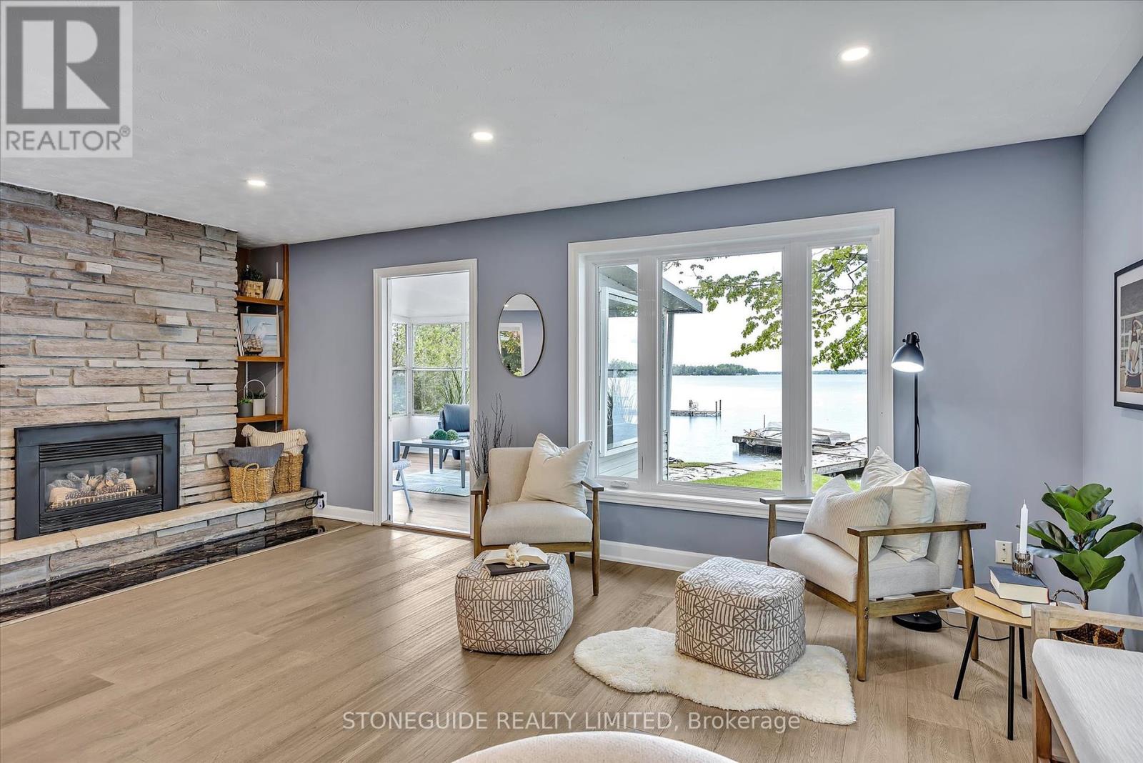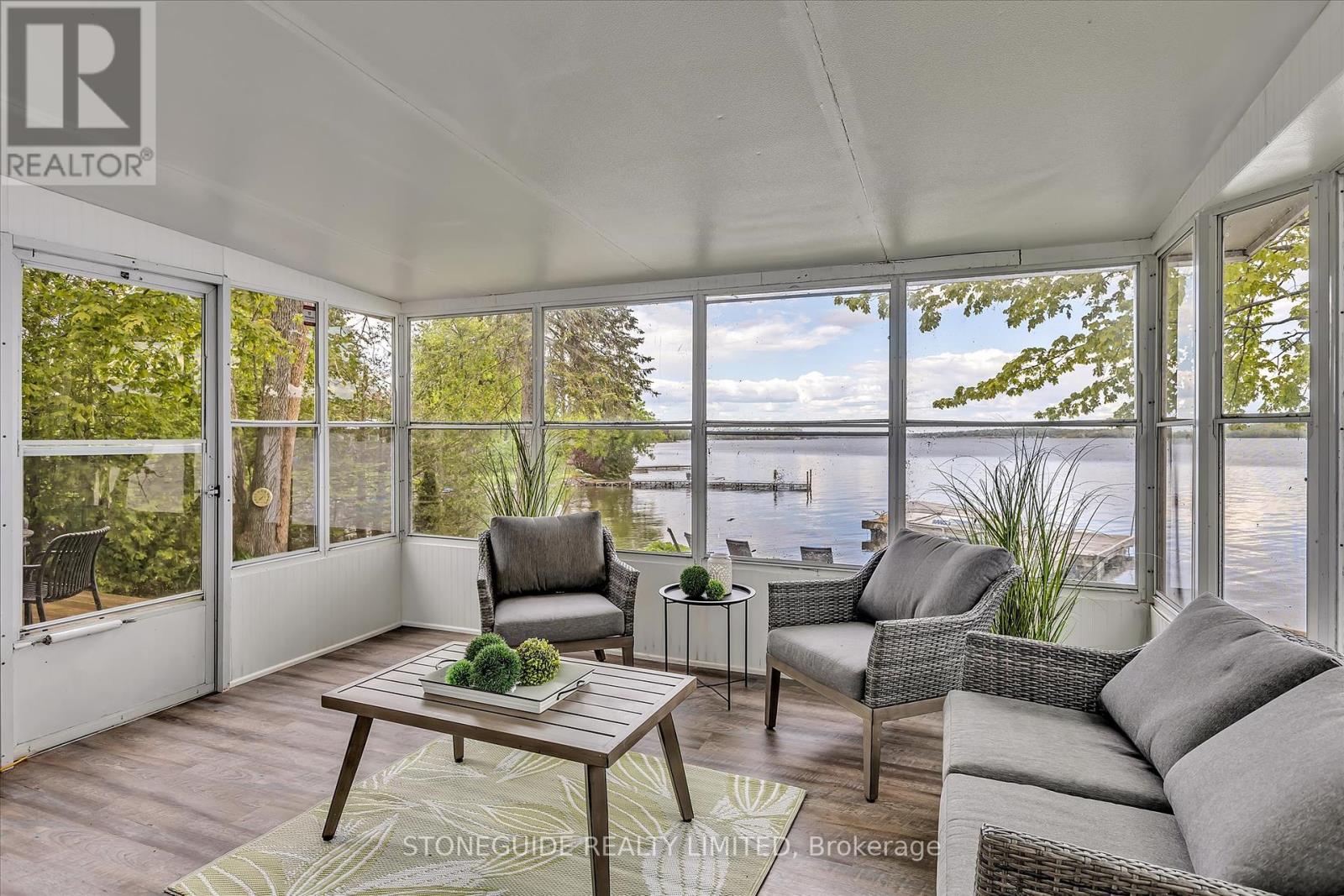 This spectacular lakeside home on Chemong Lake offers 270 feet of frontage (not including the canal) and a sense of unparalleled privacy. Spanning 2,560 square feet, this custom- designed home showcases breathtaking lake views from all principal rooms. The unique 2+2 bedroom layout provides flexibility, with a lakeside primary suite featuring a walk-in closet and a 4-piece cheater ensuite on the main floor. The spacious living room, with newer floors, freshly painted throughout, gas fireplace, and access to a 3-season sunroom, is perfect for relaxation or entertaining while enjoying commanding views of the lake. The recently updated kitchen boasts granite countertops, stainless steel appliances, and a modern design. Upstairs, the private second level includes two large bedrooms and a full bathroom, making it ideal for guests or older children. Additional highlights include main floor laundry and a perfect blend of charm and functionality, making this an ideal retreat or year-round residence. (id:51158)