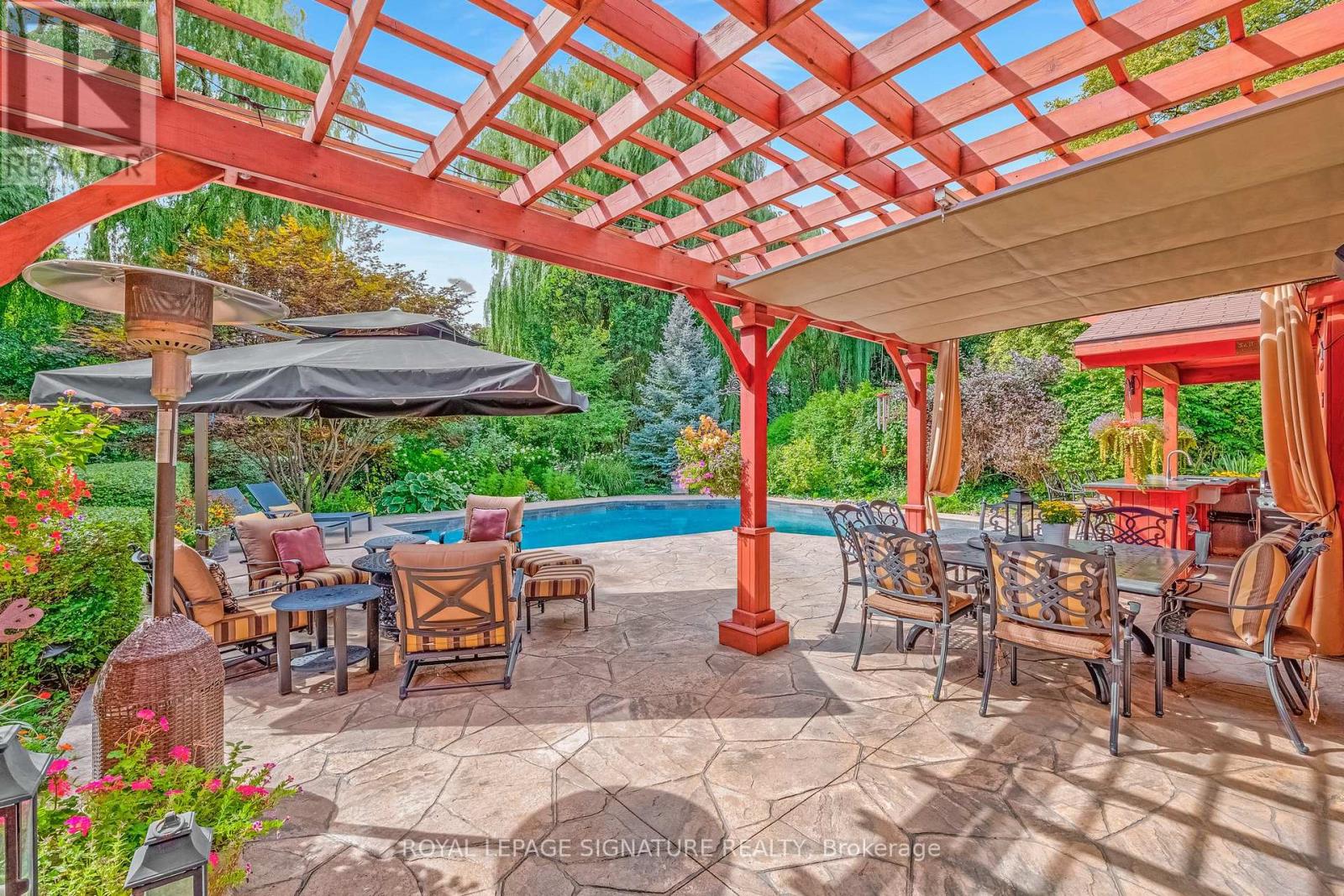 Welcome home to 41 Denver Crescent a Henry Farm Ravine Oasis. Here is your unique opportunity to live on one of Henry Farms most prestigious and tranquil streets. This stunning 4+1 bedroom home is ideal for anyone seeking a serene escape within the city. The true showstopper is the breathtaking, sun-drenched, south-facing, resort-like backyard. Backing onto a gorgeous ravine, the mature trees and lush gardens create the perfect backdrop to the Gunite pool (solar heated), hot tub, pergola, and expansive stone patio - big enough for an extra-large dining table, casual seating area, and loungers! A fully equipped cabana with a wet bar, fridge, gas BBQ, and TV makes entertaining effortless. Every inch of this beautifully landscaped backyard has been thoughtfully designed for relaxation, luxury, and enjoyment. By night, the landscape glows with thoughtfully placed lighting, turning every evening into something magical. Behind the pool is a hidden lower-level grassy area that is perfect for a playset, soccer practice, or even a putting green! The open concept main floor features hardwood throughout, an updated kitchen with quartz counters, breakfast bar, and tons of storage! The elegant living room/dining area seamlessly accommodates gatherings of all sizes. Upstairs, you'll find three bedrooms with lots of closet space. The basement is fully finished with a rec room, cozy bedroom with a fireplace, and lots of storage. On ground level, you'll find a large office (or bedroom) with built-ins and a 28-ft family room with a walk-out to your own private backyard oasis. Double car garage plus parking for 4 cars in the driveway. Henry Farm is one of the most engaged communities you'll find in the city. Community newsletter, events, local school, tennis club, church, neighbourhood watch, all make this community unique. Just steps to transit, GO train, subway, North York General Hospital, Fairview Mall, grocery stores, and the Don Valley trails. Minutes to both 401 and DVP. (id:51158)