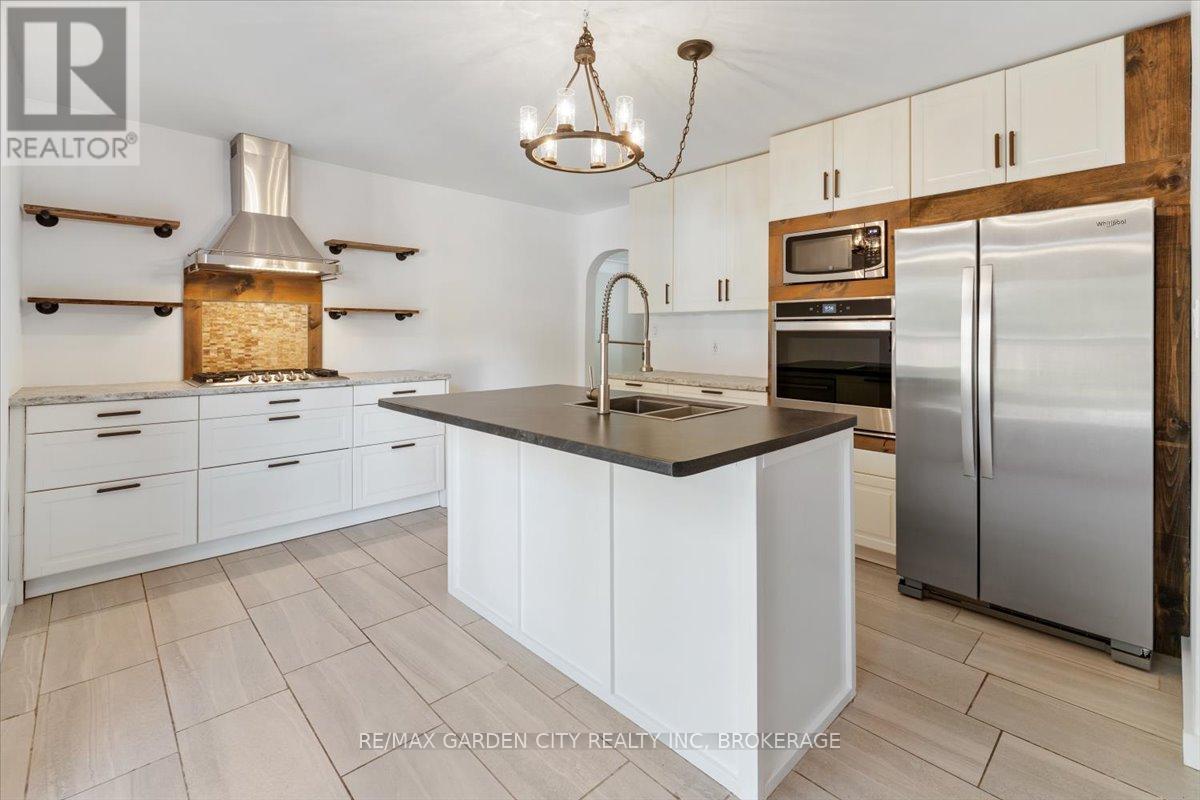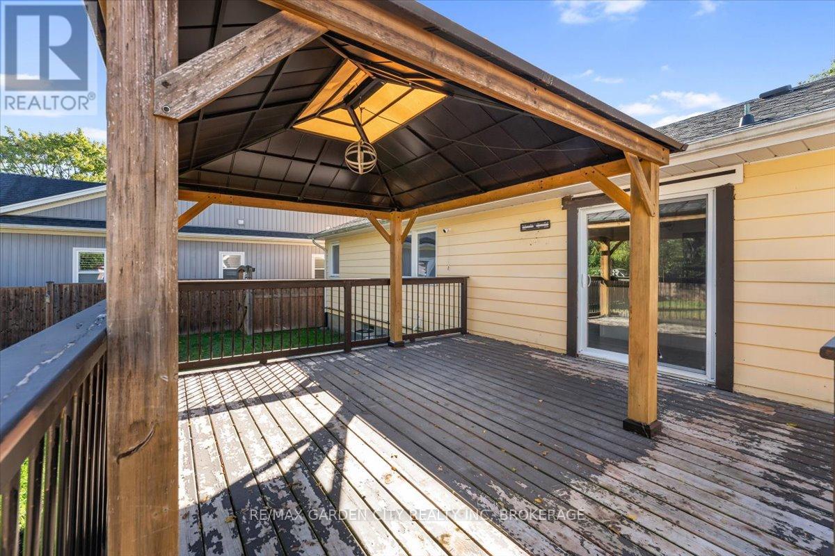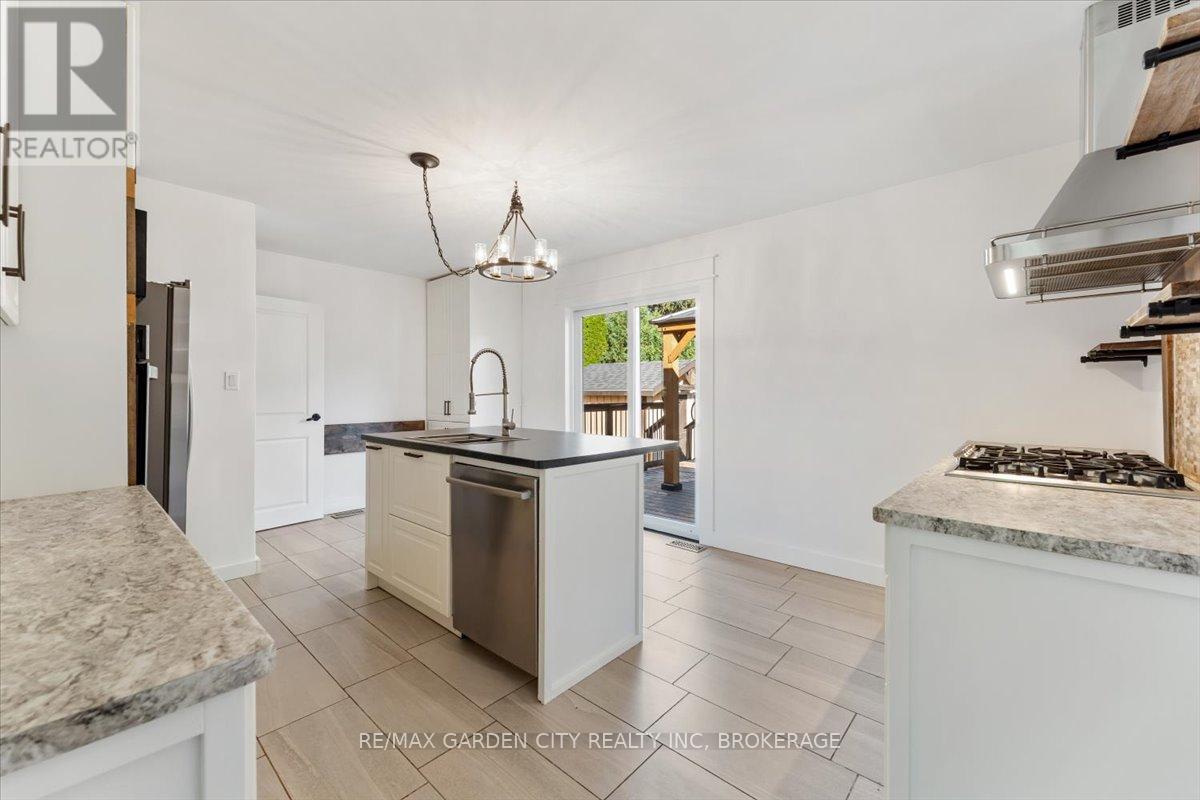 Welcome to 41 Emmett St, in the heart of beautiful and desirable Fonthill. This 3+1 bed, 2 bath bungalow is ready and waiting for its new owners. Many updates throughout including-newer flooring, newer kitchen, both bathrooms updated. You'll be greeted with features like accent walls, barn doors, shiplap, rainfall showers, large principle rooms and a lovely flow through the home. Main floor has large living area and great eat in kitchen, with gas stove, new fridge and lots of cabinetry. Three generous bedrooms, with the master having a large closet and adjacent to the fully renovated bath, with separate shower and soaker tub!! Downstairs, you'll walk right into the huge recroom space, again with feature walls.... downstairs is partially finished, with a fully renovated bathroom which has a HUGE walk in shower, an additional bedroom and a laundry area. Open the sliding door off the kitchen to enter you backyard retreat, private, fully fenced, with a generous deck, gazebo, storage sheds, nicely landscaped, really the country feel but within the town! This home also benefits from an attached garage, private double driveway. Its an excellent options for both single family and those looking to rent a basement, with the option already installed of laundry on both levels! Book your tour of this Fonthill charmer today and fall in love with the home, the area and the lifestyle (id:51158)
