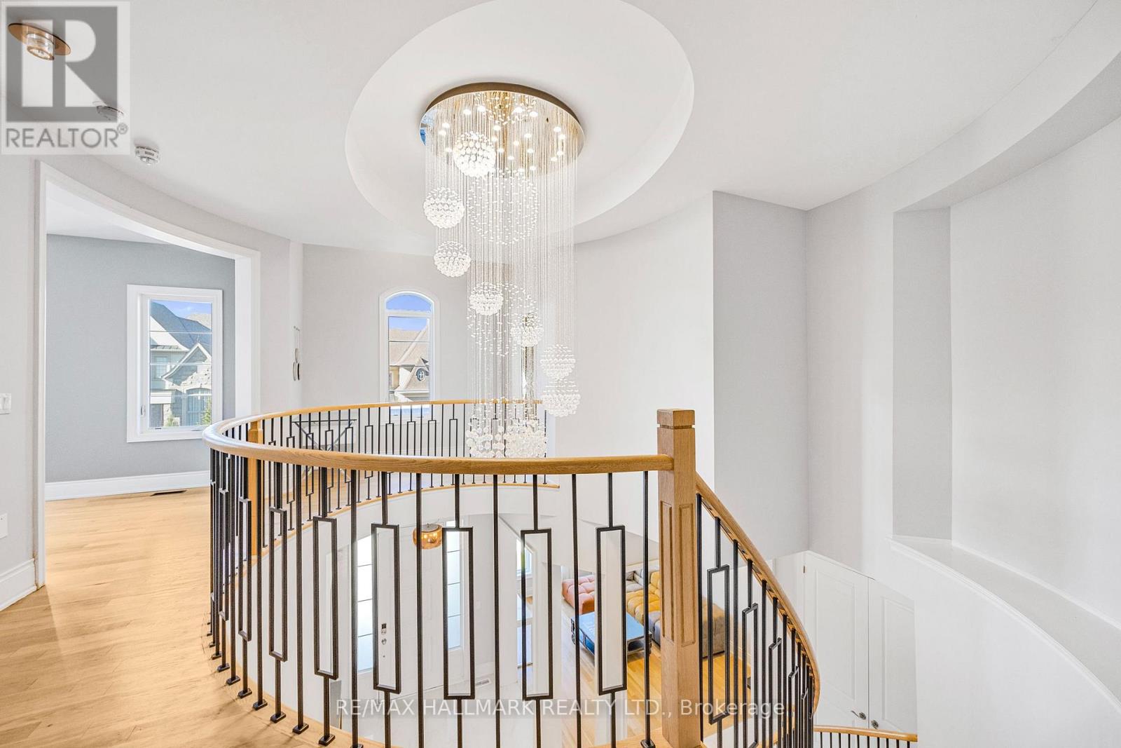 This magnificent home offers approximately 5,000 sq. ft. of refined living space, thoughtfully designed for both grand entertaining and everyday comfort. A rare tandem 3-car garage PLUS EV CHARGER adds exceptional convenience to this already impressive property. The main floor makes a striking first impression with its soaring 21-ft entrance hallway, setting the tone for the elegance found throughout. Natural color oak hardwood flooring spans the entire level, while the second floor features brand-new hardwood for a seamless, modern aesthetic. 11-ft coffered ceilings elevate the main living areas, complementing the chef-inspired kitchen complete with a dramatic two-tone quartz waterfall island, premium finishes, and generous workspace. A spacious formal dining room, sunlit living room, and inviting family room with a gas fireplace offer multiple spaces for relaxation and gathering. A well-appointed laundry room and stylish powder room complete the main level. Upstairs, 10-ft ceilings create an airy sense of openness. Four generously sized bedrooms each enjoy their own private ensuite and walk-in closet, providing unparalleled comfort and privacy. A versatile media room offers the flexibility to function as a fifth bedroom, office, or entertainment space. The primary suite is a true sanctuary, featuring a beautiful sun-filled half-circle sitting area, a spacious walk-in closet, and an indulgent spa-like ensuite with a sleek frameless glass shower. (id:51158)
