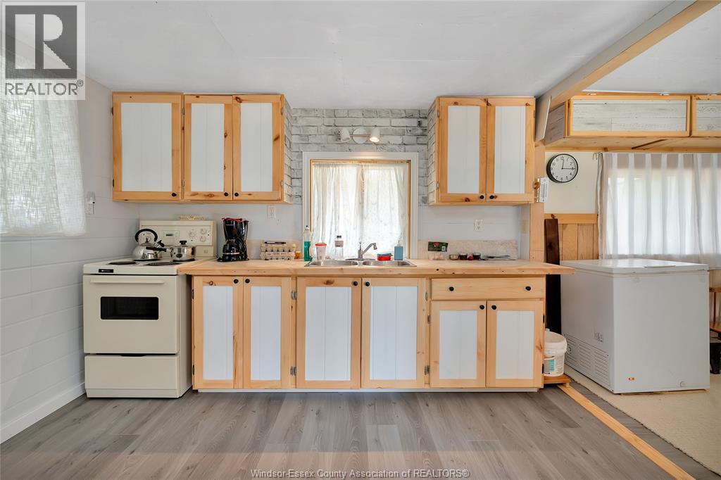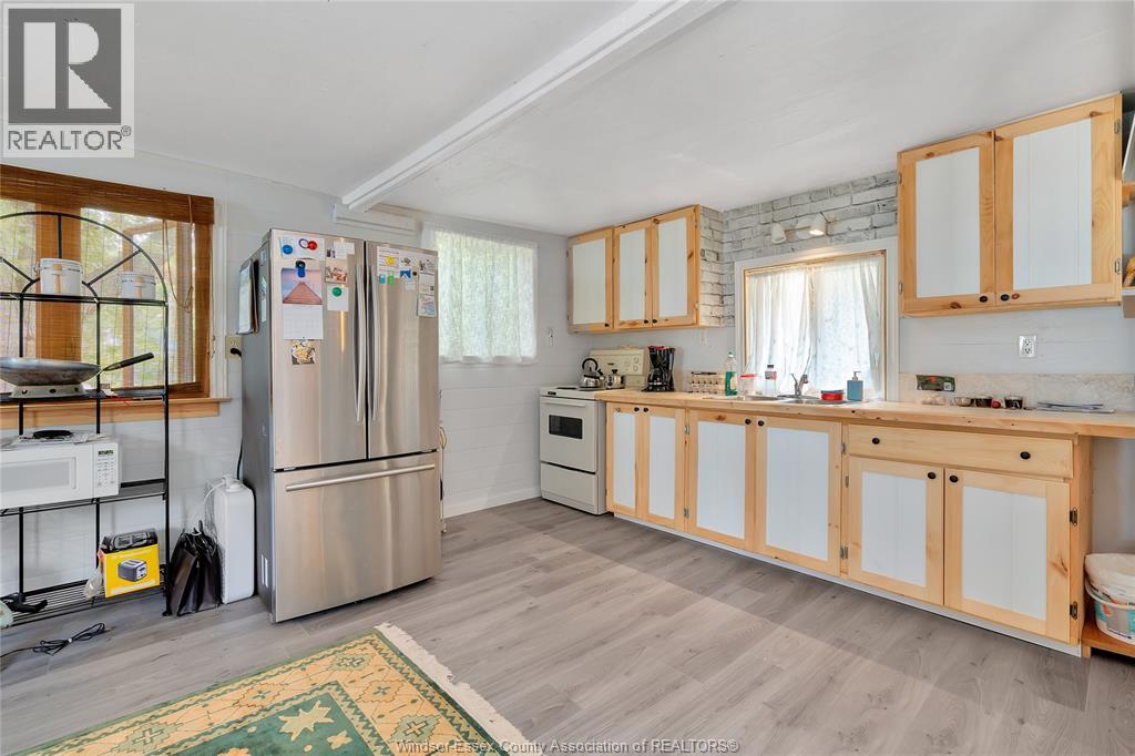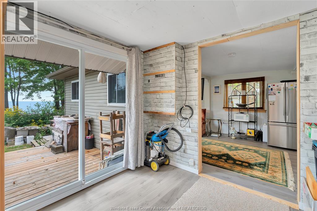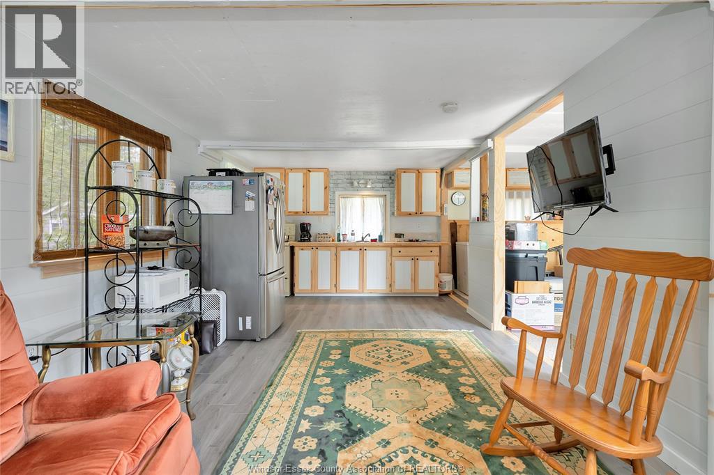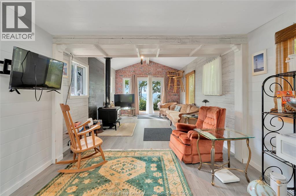 Welcome to Klies Beach -the cottage community in the heart of wine country w/million dollar views. 41 Klies Beach, a 4-season cottage that features open concept living w/large bright liv rm w/cathedral ceilings, dining area, and kit, open to large bdrm area, all w/new LVP floors. Bdrm features 2 patio doors and can easily be converted to 2 bdrms. 3pc bath w/large ceramic shower. 2 decks, overlooking take Erie. New EuroShed for lots of storage and workshop. 2nd shed for even more storage space. Updates include part of roof, mini-split system, new insulation from top to bottom, and cottage has been lifted .. Low util bills make this an affordable year round home, or smart investment for Short Term rental. Land rent approx $4,000 for the full year, which covers prop tax, water, and road clearing in the winter. Buyer must be approved by Park owner. Mins to Colchester beach, many great restaurants and wineries! ALL OFFERS MUST INCLUDE ATTACHED SCHEDULE B (id:51158)