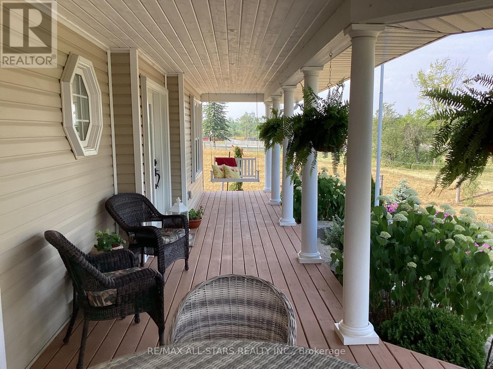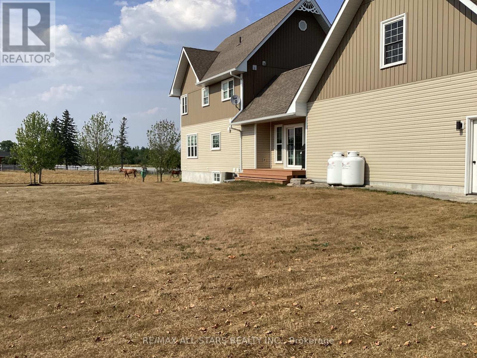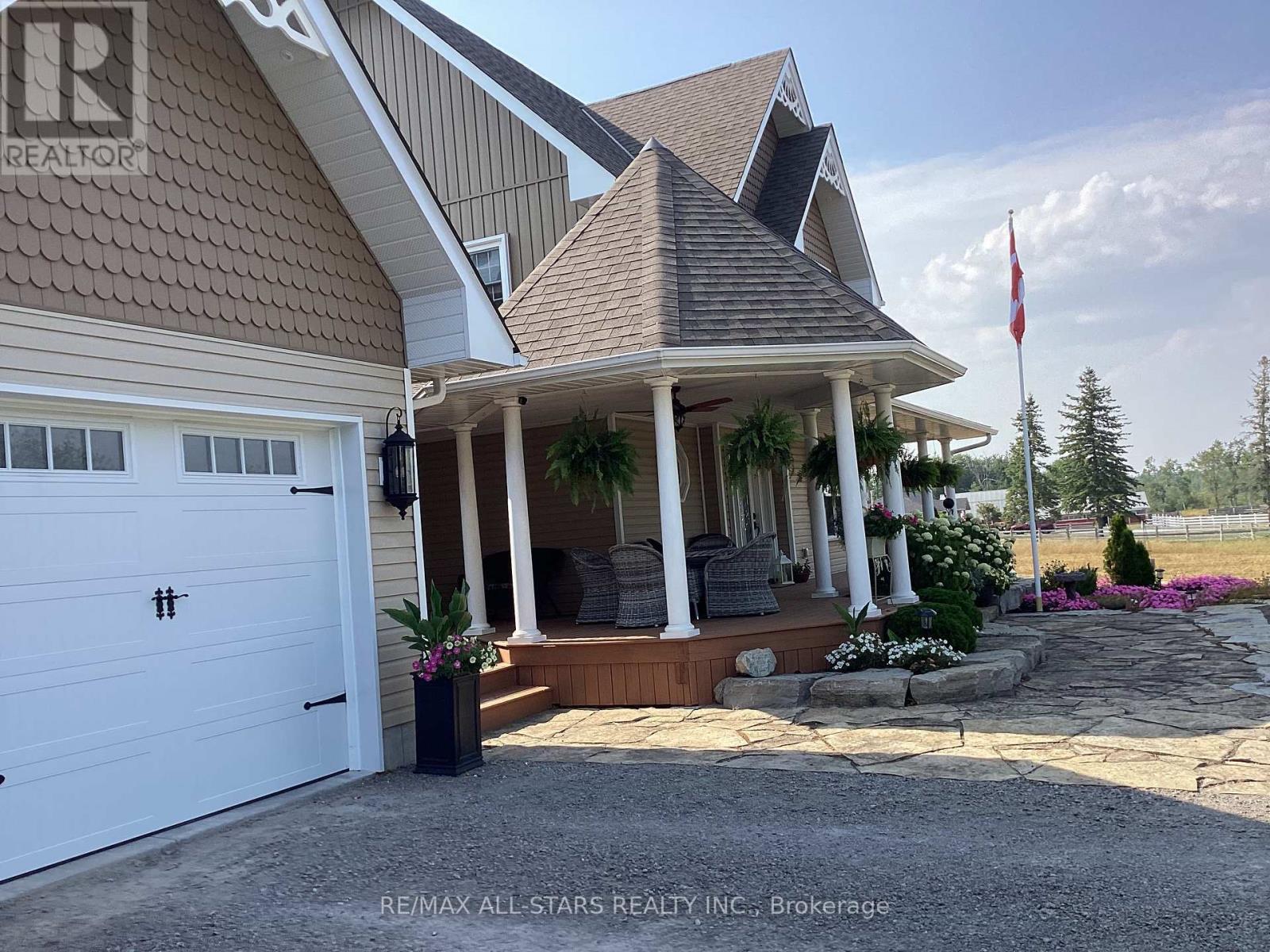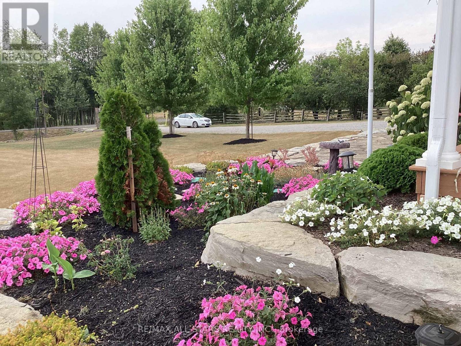 This custom-built on a full-sized acre lot offers country living at its best! Located a short drive north of Lindsay just off Highway 35 on a quiet year-round road that has just been freshly paved. The over-sized attached 2 car garage has access from the main floor and an entrance to the backyard. The kitchen is loaded with lots of upgraded cupboards and cabinets, track lighting, and plenty of counter space. Off one end of the kitchen is a cozy sitting room with a view of both the backyard and front porch. There is a spacious dining area off the kitchen with lots of big windows. The living room has its own propane fireplace to enjoy on those cold winter nights. The primary bedroom upstairs has its own ensuite bathroom with separate shower and soaker tub. Both these rooms have high cathedral ceilings. There is in-floor heating in the basement and an excellent well servicing the property (10 gallons per minute according to well drillers report). The sprawling front porch with a large sitting area under the gazebo offers a great place in the spring, summer and autumn to entertain or relax. It also offers a great view of a beautiful flower garden bordered and landscaped with limestone rocks. (id:51158)