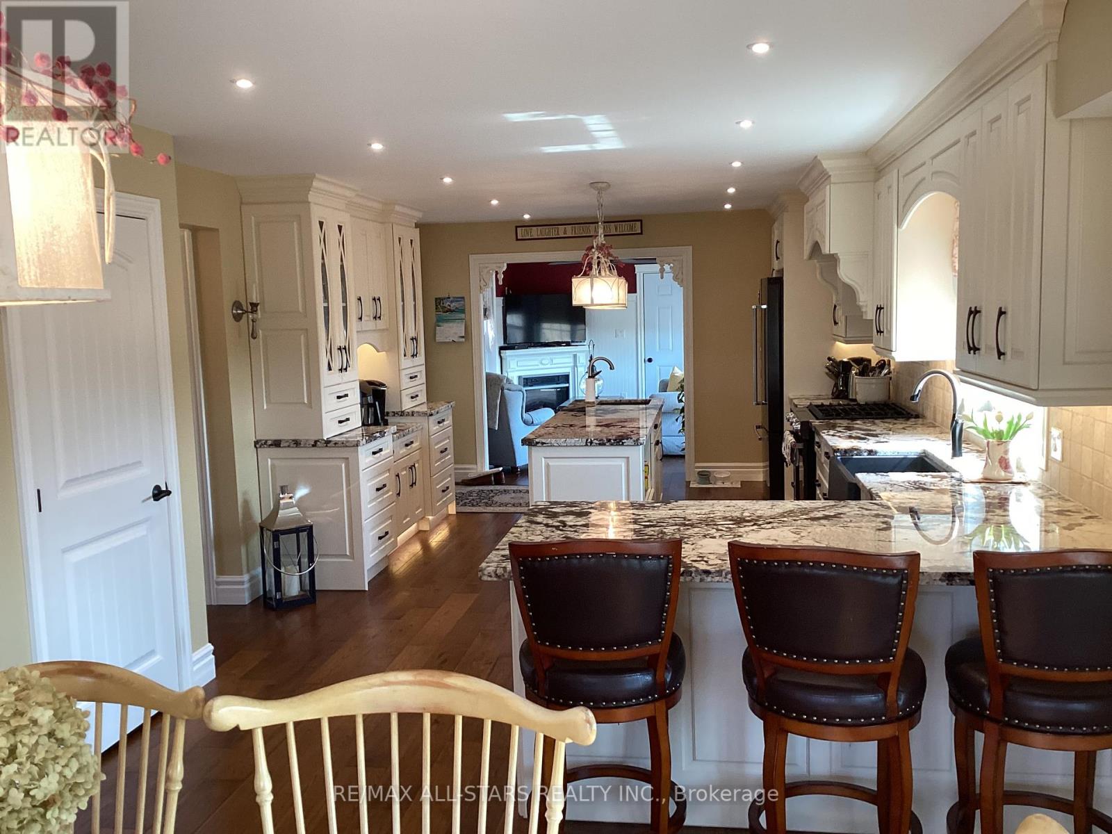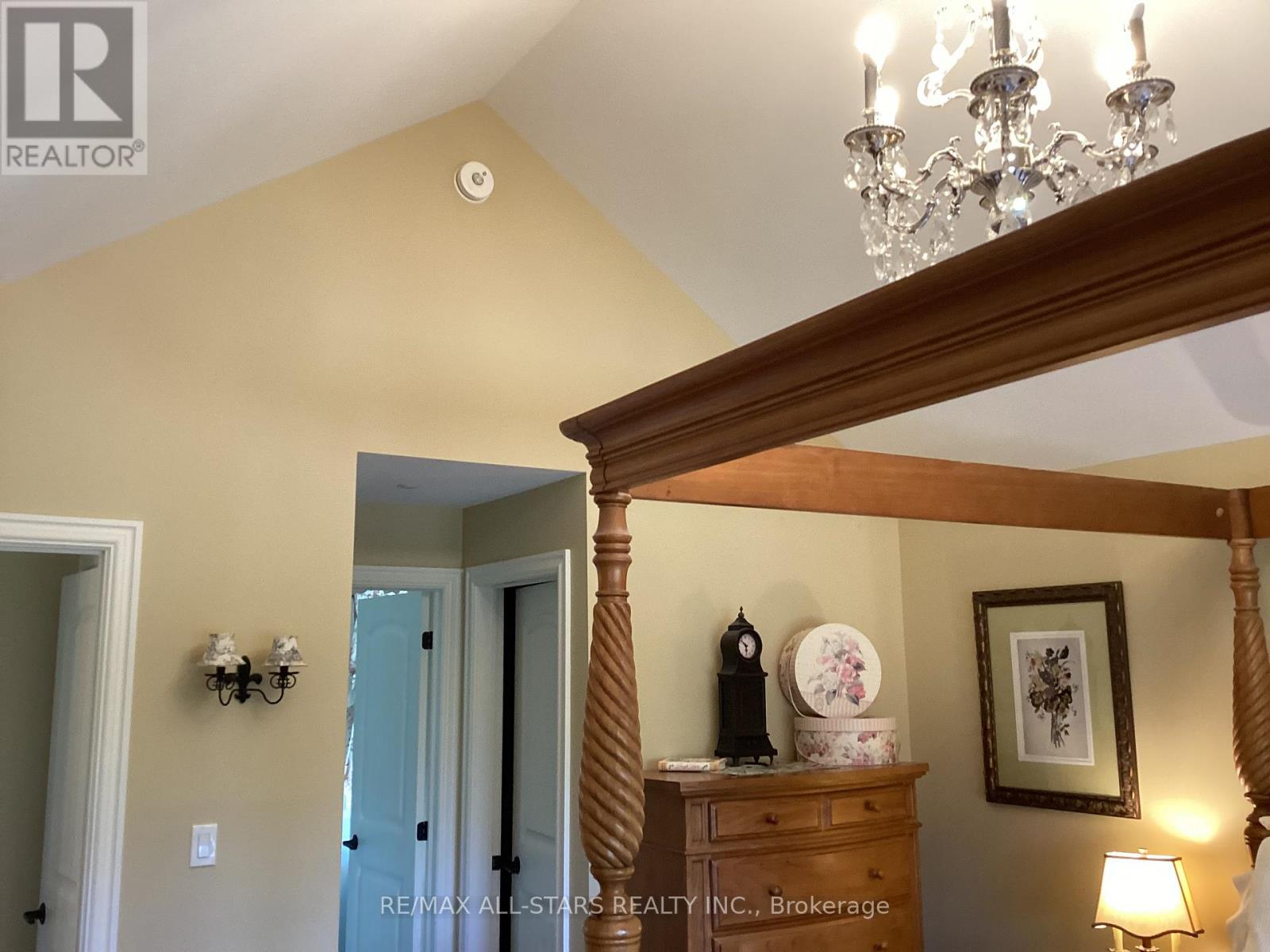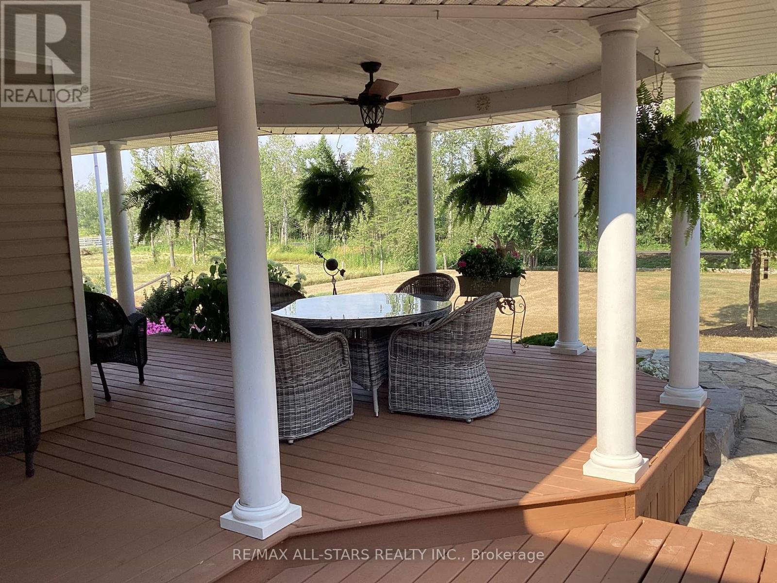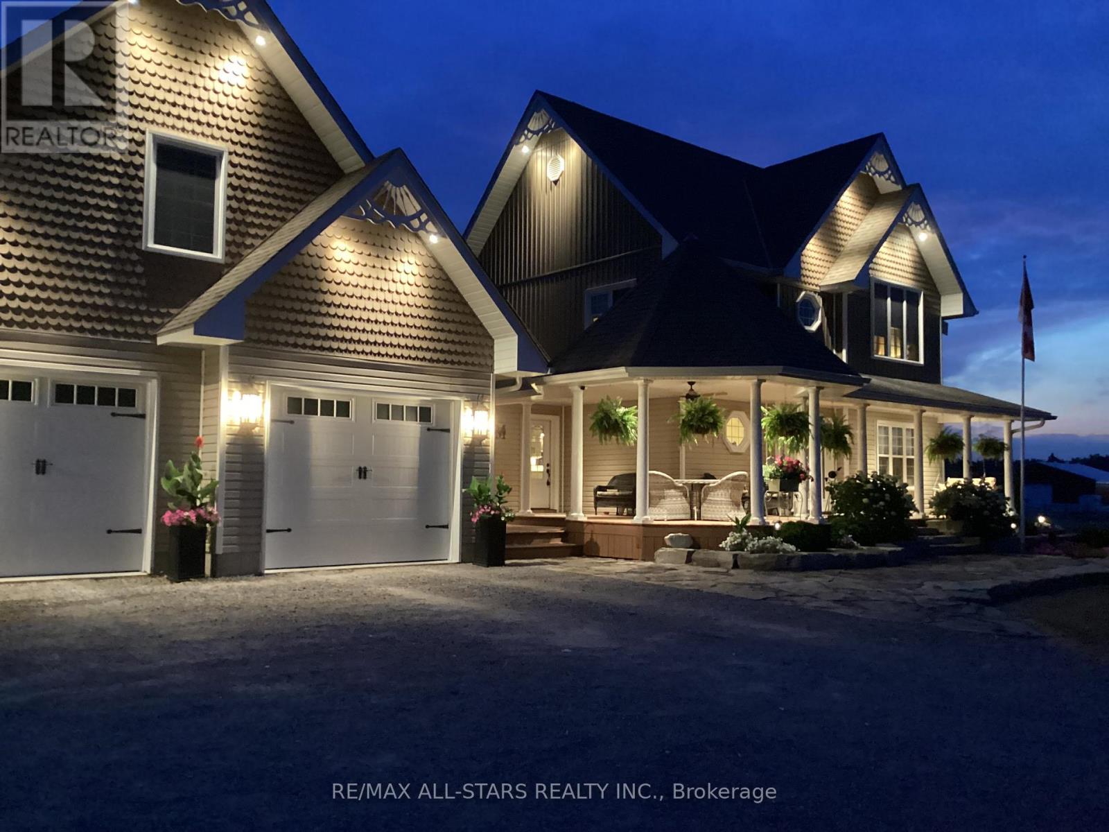 This custom-built on a full-sized acre lot offers country living at its best! Located a short drive north of Lindsay just off Highway 35 on a quiet year-round road that has just been freshly paved. The over-sized attached 2 car garage has access from the main floor and an entrance to the backyard. The kitchen is loaded with lots of upgraded cupboards and cabinets, track lighting, and plenty of counter space. Off one end of the kitchen is a cozy sitting room with a view of both the backyard and front porch. There is a spacious dining area off the kitchen with lots of big windows. The living room has its own propane fireplace to enjoy on those cold winter nights. The primary bedroom upstairs has its own ensuite bathroom with separate shower and soaker tub. Both these rooms have high cathedral ceilings. There is in-floor heating in the basement and an excellent well servicing the property (10 gallons per minute according to well drillers report). The sprawling front porch with a large sitting area under the gazebo offers a great place in the spring, summer and autumn to entertain or relax. It also offers a great view of a beautiful flower garden bordered and landscaped with limestone rocks. (id:51158)