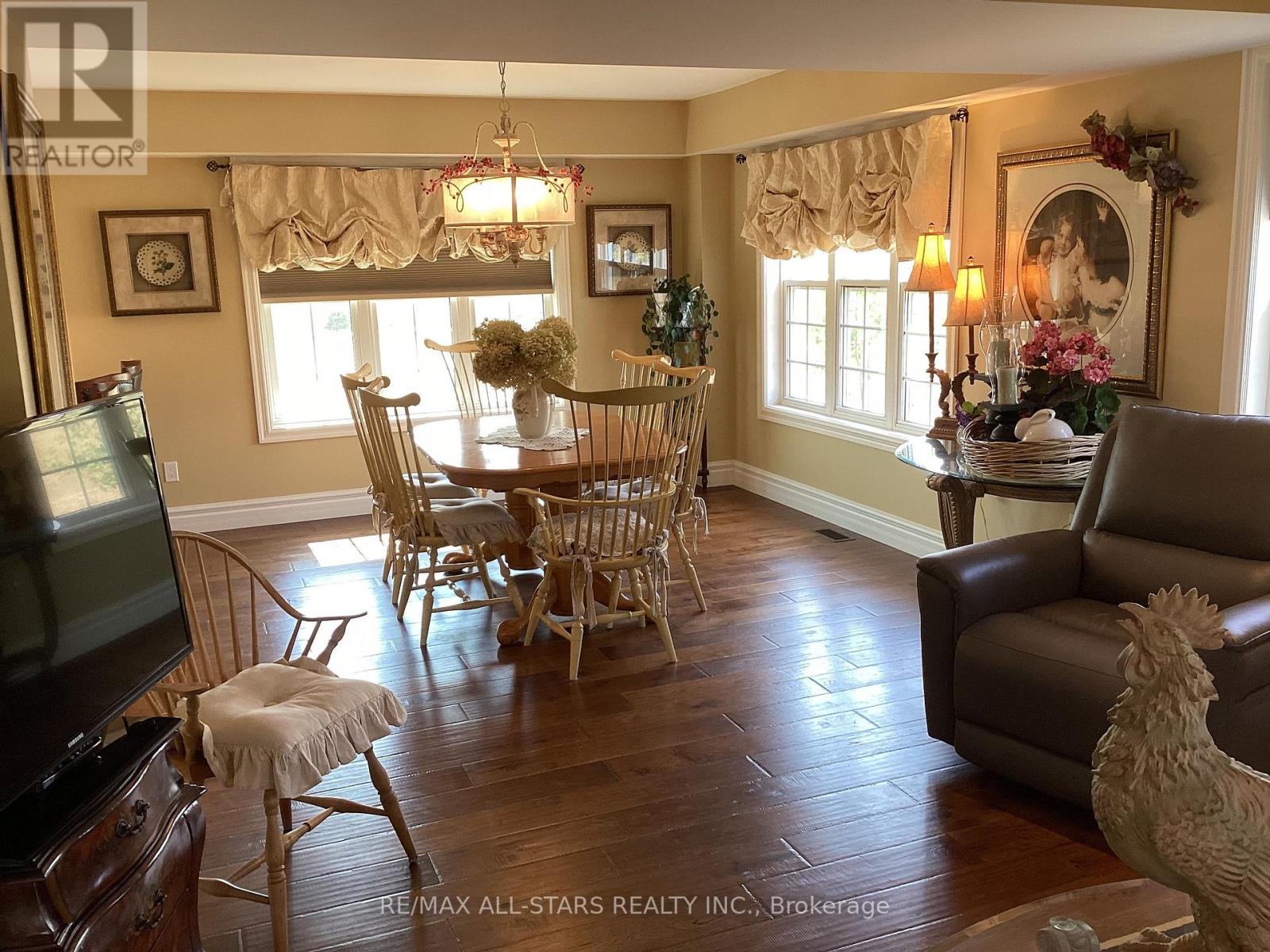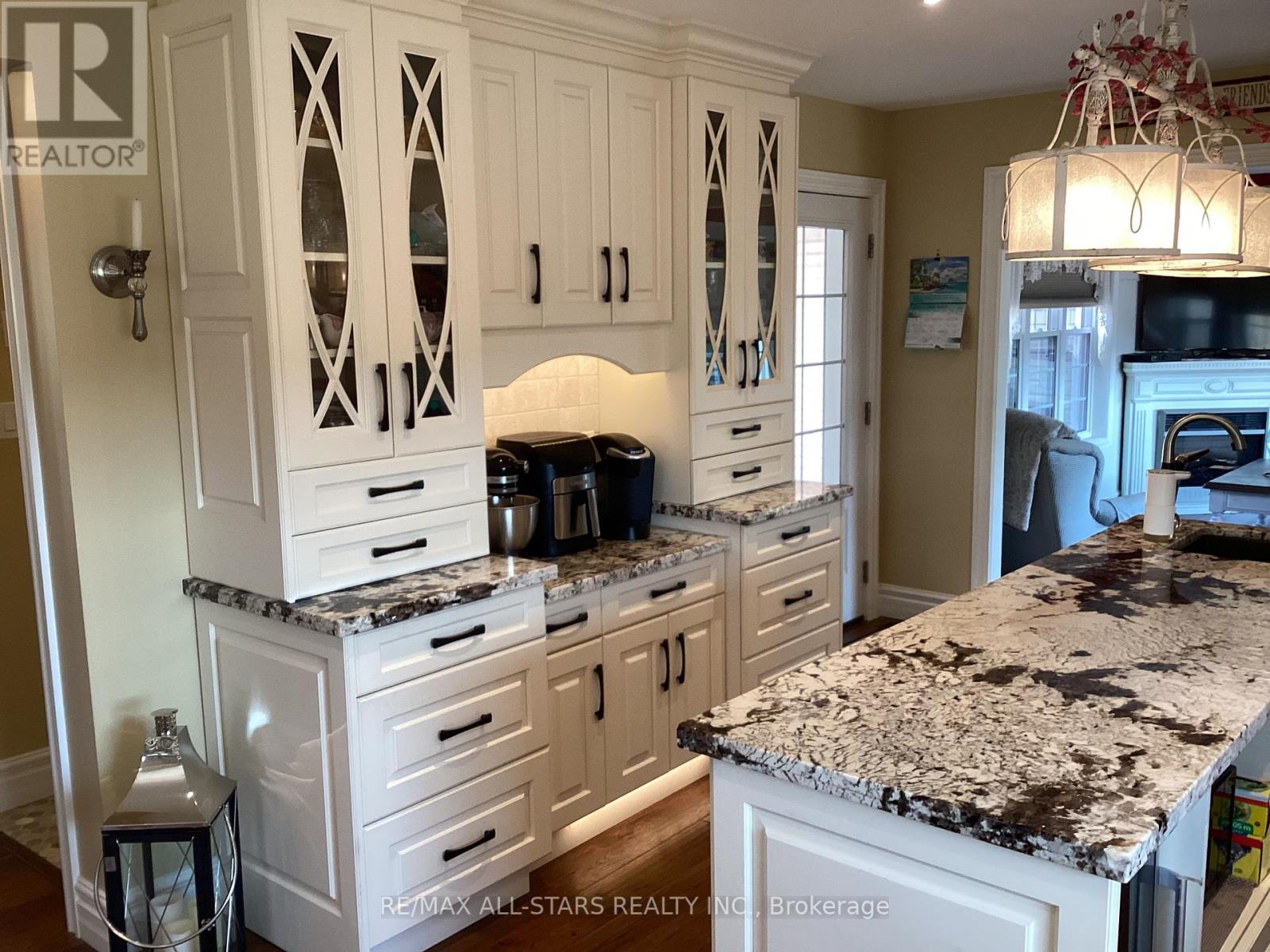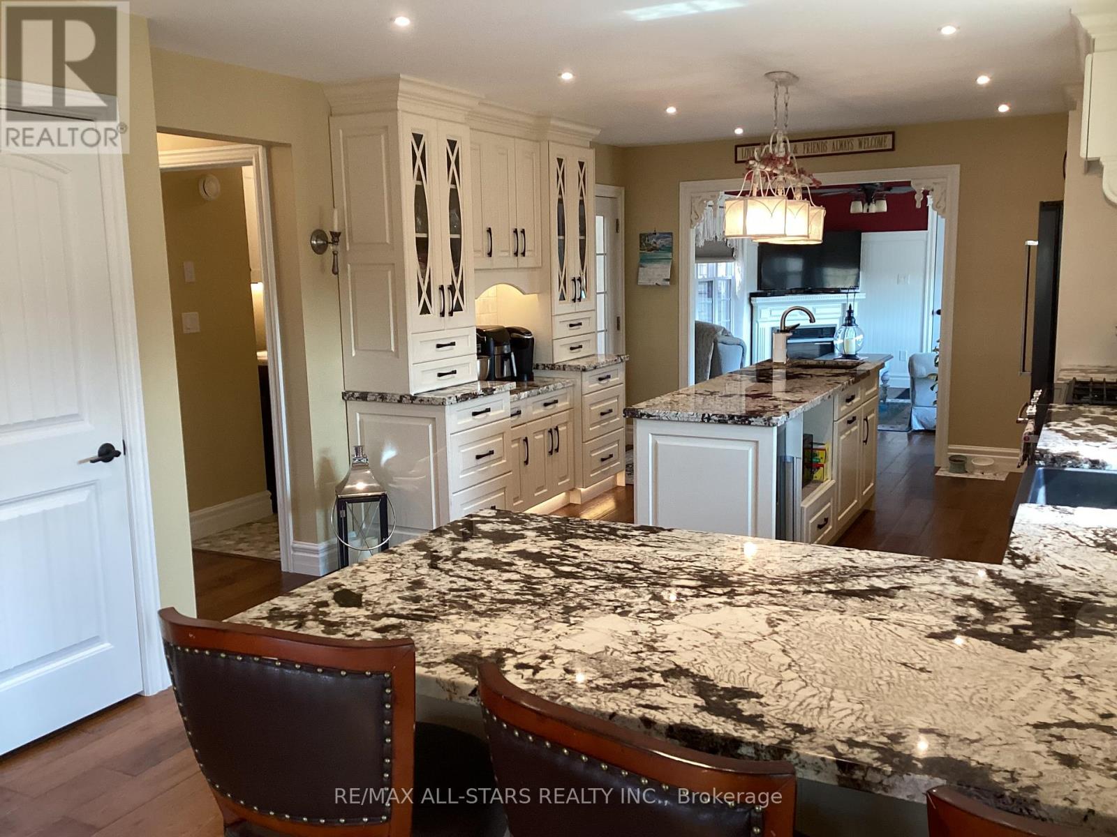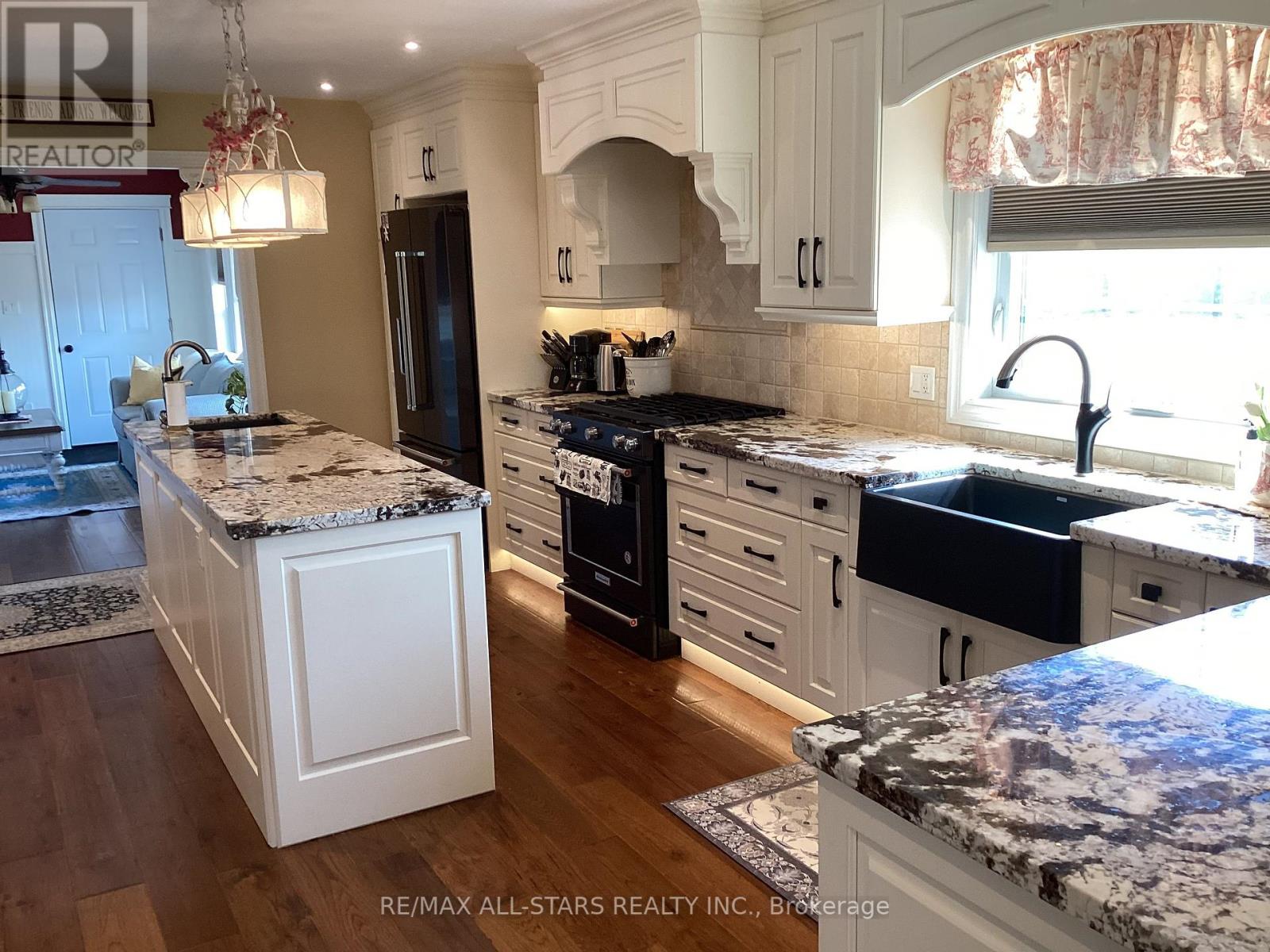 This custom-built on a full-sized acre lot offers country living at its best! Located a short drive north of Lindsay just off Highway 35 on a quiet year-round road that has just been freshly paved. The over-sized attached 2 car garage has access from the main floor and an entrance to the backyard. The kitchen is loaded with lots of upgraded cupboards and cabinets, track lighting, and plenty of counter space. Off one end of the kitchen is a cozy sitting room with a view of both the backyard and front porch. There is a spacious dining area off the kitchen with lots of big windows. The living room has its own propane fireplace to enjoy on those cold winter nights. The primary bedroom upstairs has its own ensuite bathroom with separate shower and soaker tub. Both these rooms have high cathedral ceilings. There is in-floor heating in the basement and an excellent well servicing the property (10 gallons per minute according to well drillers report). The sprawling front porch with a large sitting area under the gazebo offers a great place in the spring, summer and autumn to entertain or relax. It also offers a great view of a beautiful flower garden bordered and landscaped with limestone rocks. (id:51158)