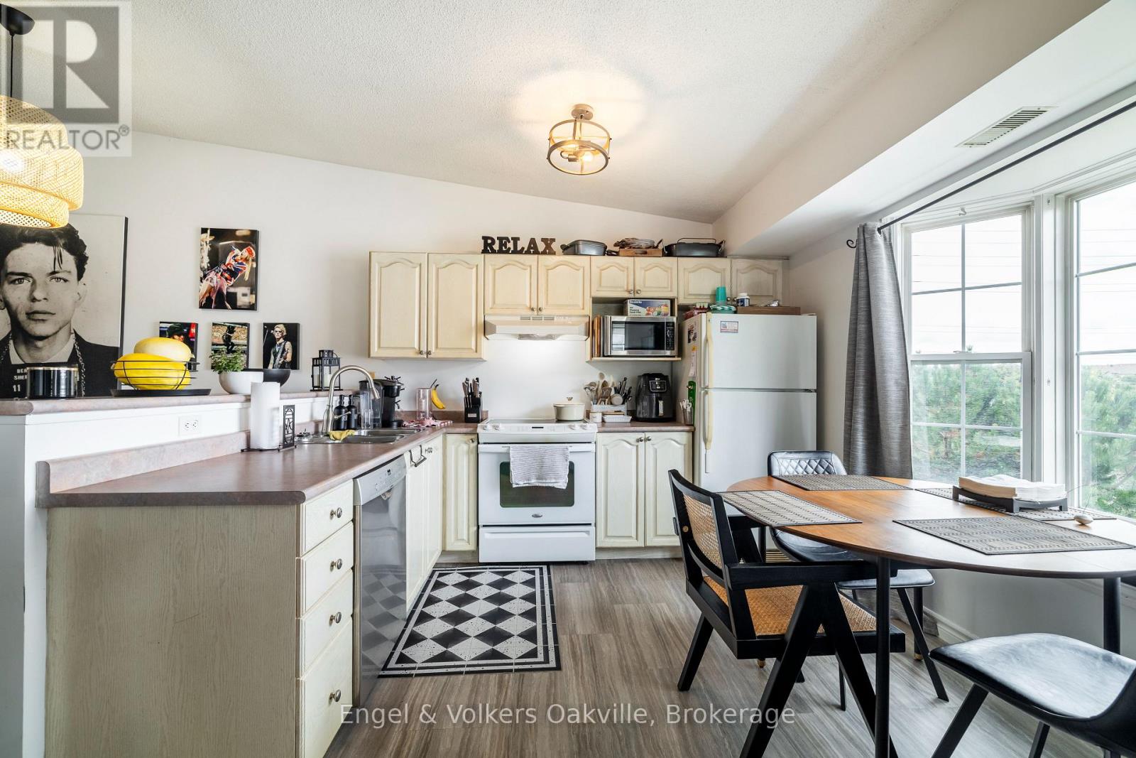 $771.44 MonthlyRarely offered 3-bedroom, 2-bathroom Penthouse unit with vaulted ceilings, a condo that offers over 1200 square feet of living space with two owned parking spaces and a locker. As you step inside, you'll immediately notice the spacious open concept layout. The living & dining areas are a true highlight that overlooks a spacious and functional kitchen, large island and breakfast bar. This condo offers three generously sized bedrooms, including a spacious primary bedroom with an ensuite, two additional bedrooms and a 4-piece main bathroom. A large & sun-filled balcony off the kitchen completes the space. This convenient central Burlington location is close to amenities, with/ easy commuter access to major highways & public transit. Don't miss this incredible opportunity to own a condo that offers the space of a townhouse, along with w/the convenience of lifestyle condo living. 48 hr irrevocable. (id:51158)