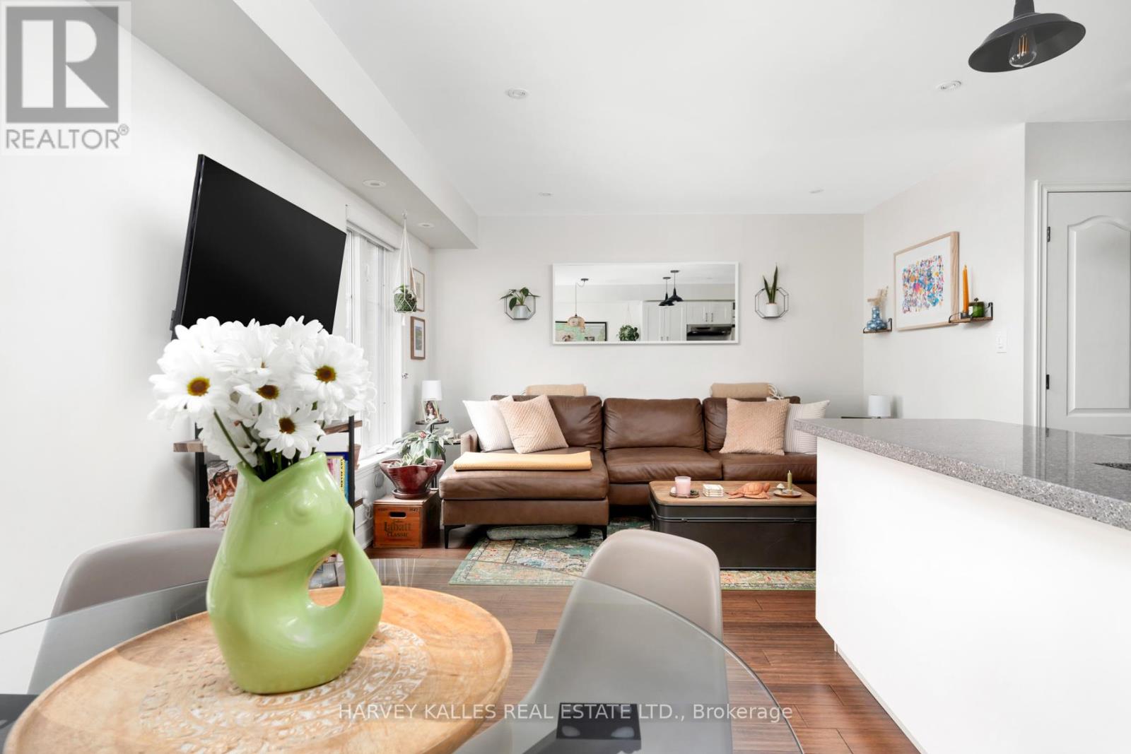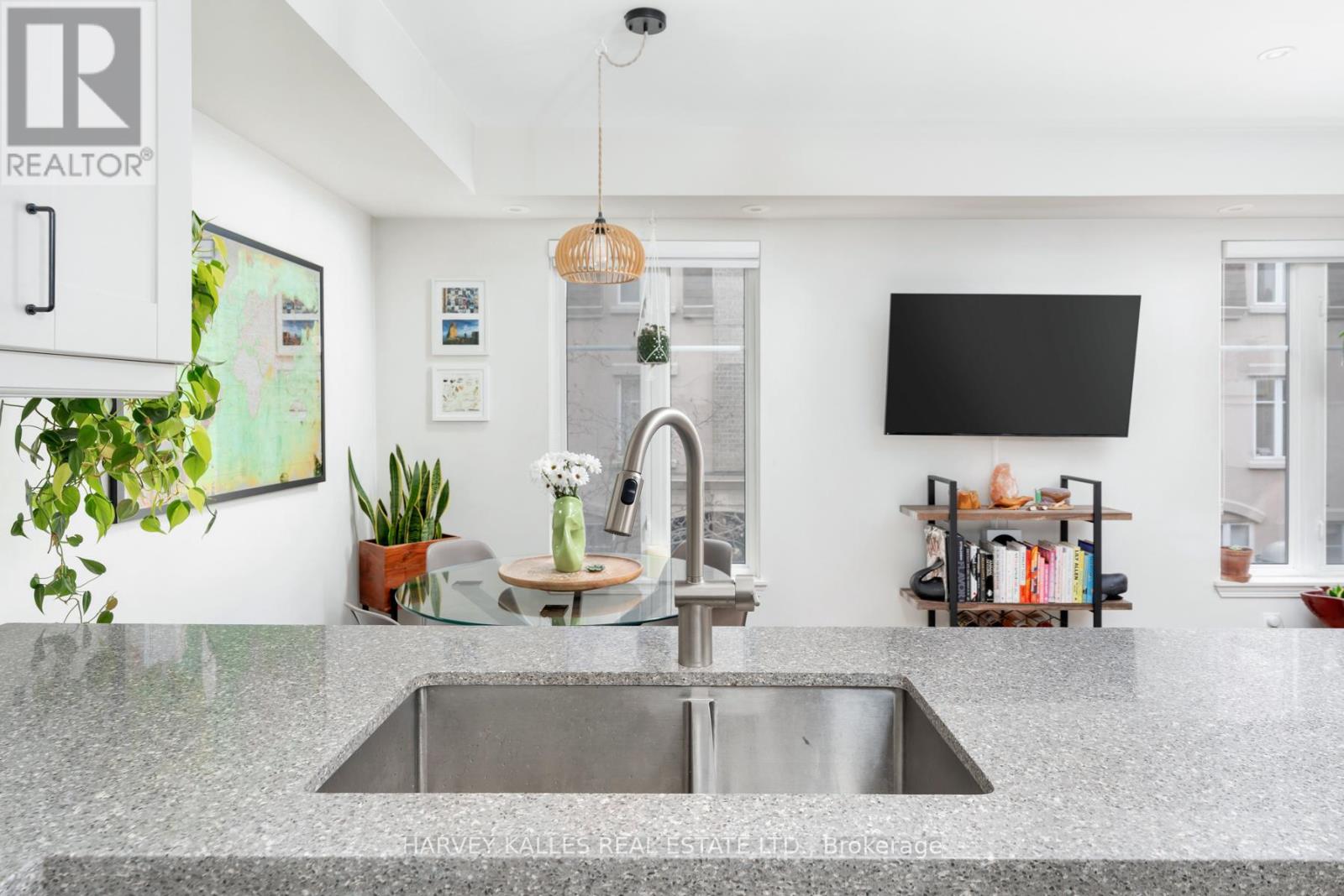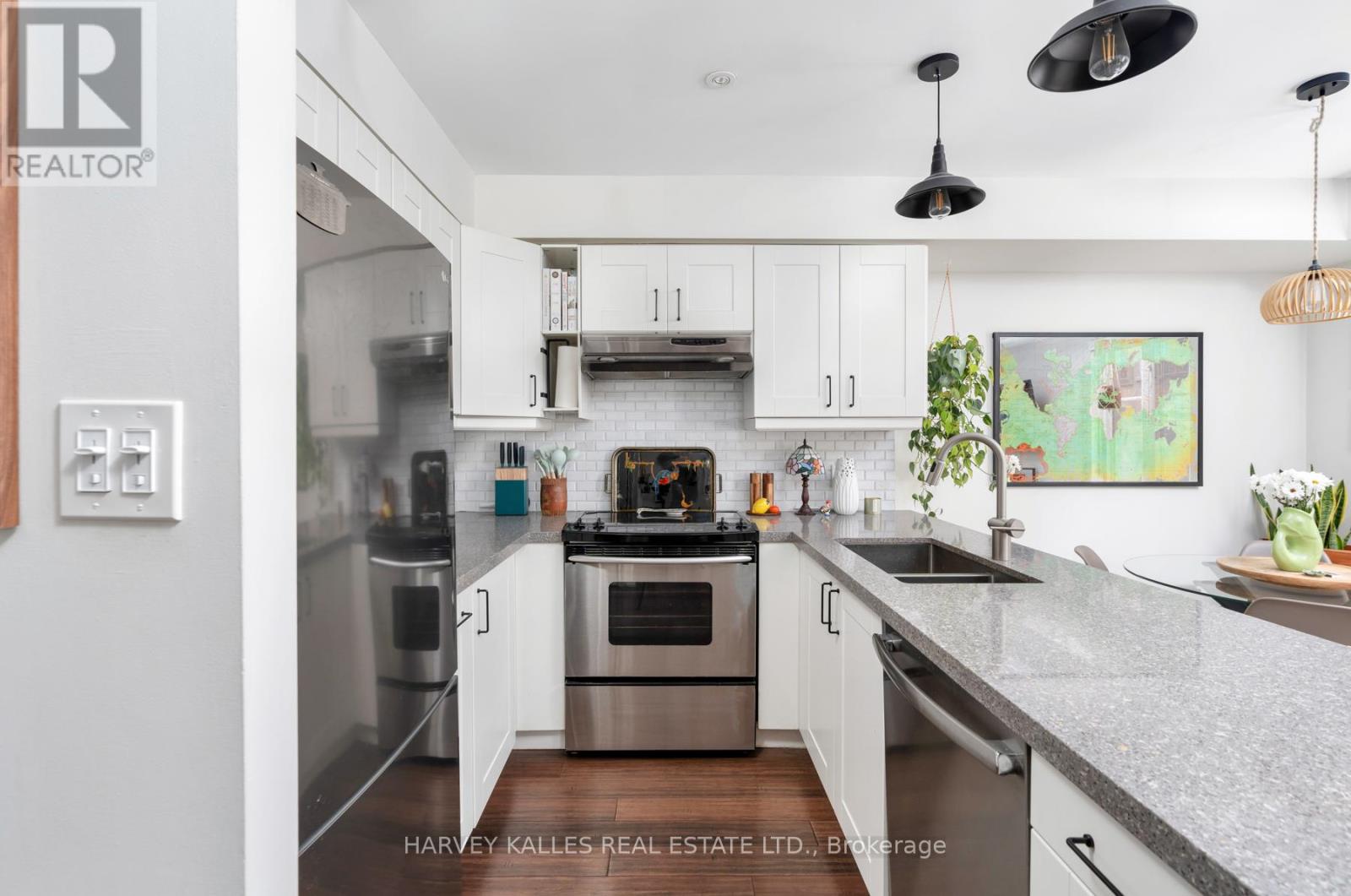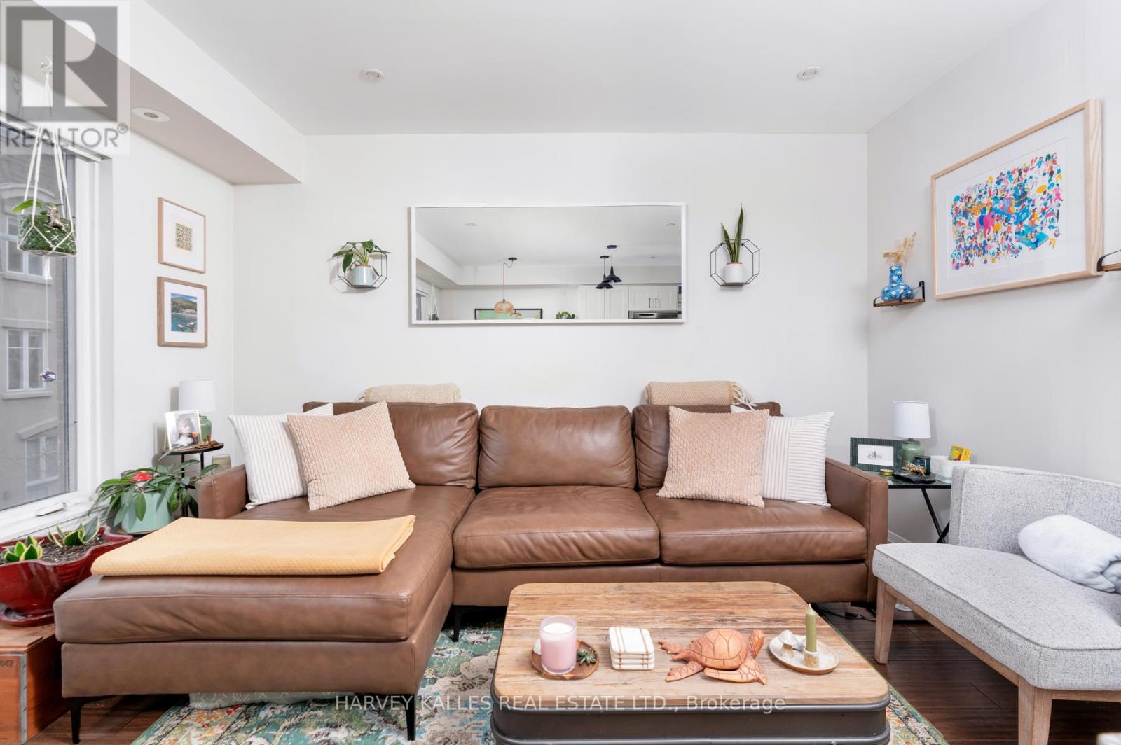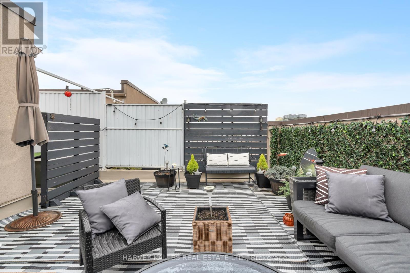 $697.60 MonthlyDiscover the perfect blend of style, function, and location in this beautifully updated 3-storey townhouse in the heart of Liberty Village. Offering two spacious bedrooms, two fully renovated bathrooms, and approximately 1,100 square feet of bright, thoughtfully designed living space, this home is ideal for professionals, couples, or small families looking to enjoy the best of urban Toronto living. The open-concept main level features engineered hardwood flooring, pot lights, and elegant pendant lighting. A renovated kitchen serves as the heart of the home, with quartz countertops, a subway tile backsplash, stainless steel appliances, and an oversized custom pantry for added storage. Both bathrooms have been tastefully upgraded, including a luxurious upstairs bath with heated marble floors. Each bedroom includes double closets with built-in organizers, offering excellent storage without sacrificing style. The standout feature is the expansive 330 sq. ft. private rooftop terrace with unobstructed city skyline viewsan ideal space for entertaining, relaxing, or hosting memorable evenings with friends. Complete with a gas BBQ hookup, its a rare outdoor retreat in the city. Additional conveniences include ensuite laundry, an underground parking space, and an owned locker. Monthly maintenance fees cover water, parking, and building insurance, making for stress-free, low-maintenance living. Located steps from parks, cafes, gyms, restaurants, boutique shops, and transit, this turnkey townhouse puts you in the heart of Liberty Villages vibrant energy. Whether youre upgrading from a condo or buying your first home, this is the one that checks all the boxes. Move in and start living the lifestyle youve been waiting for. (id:51158)