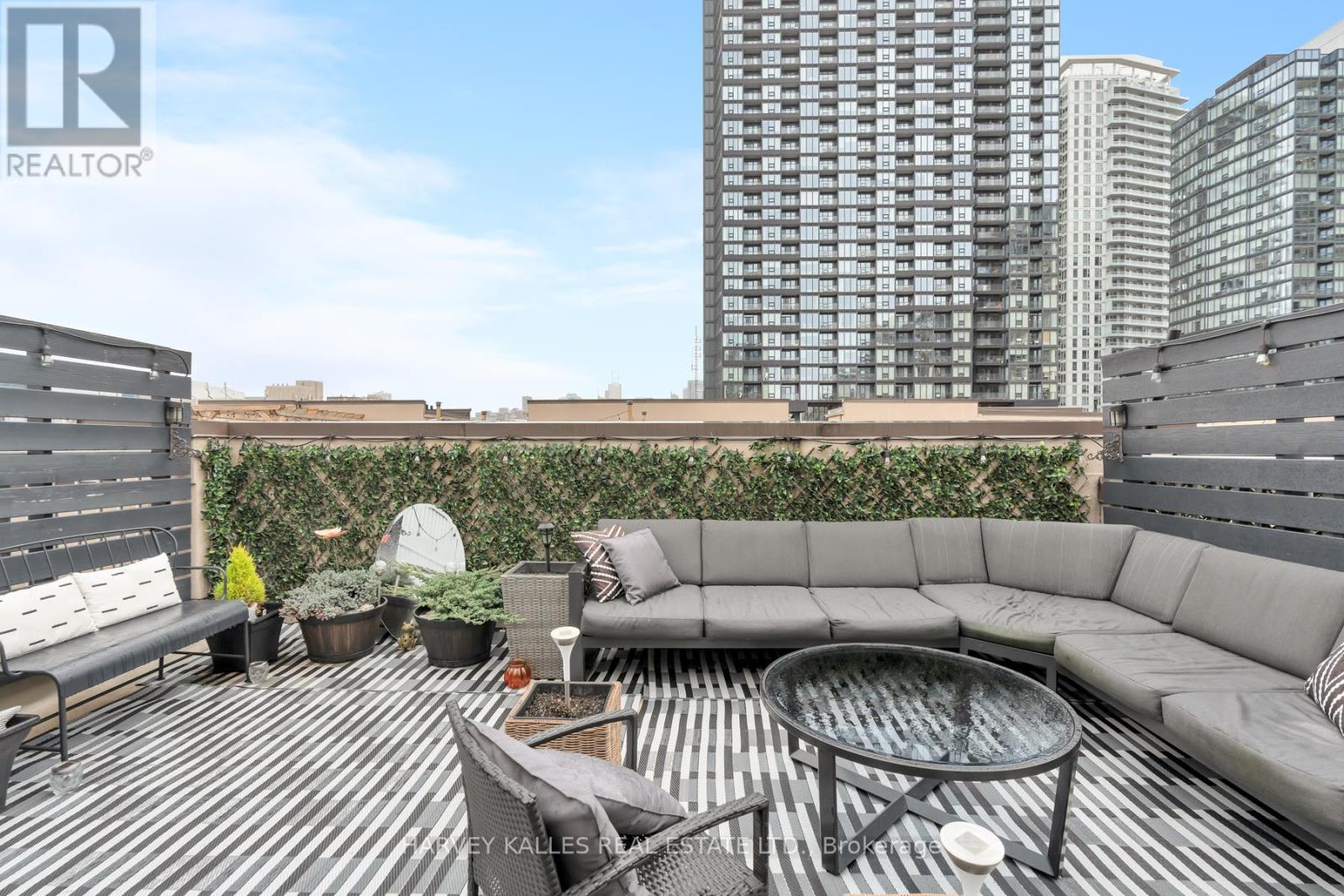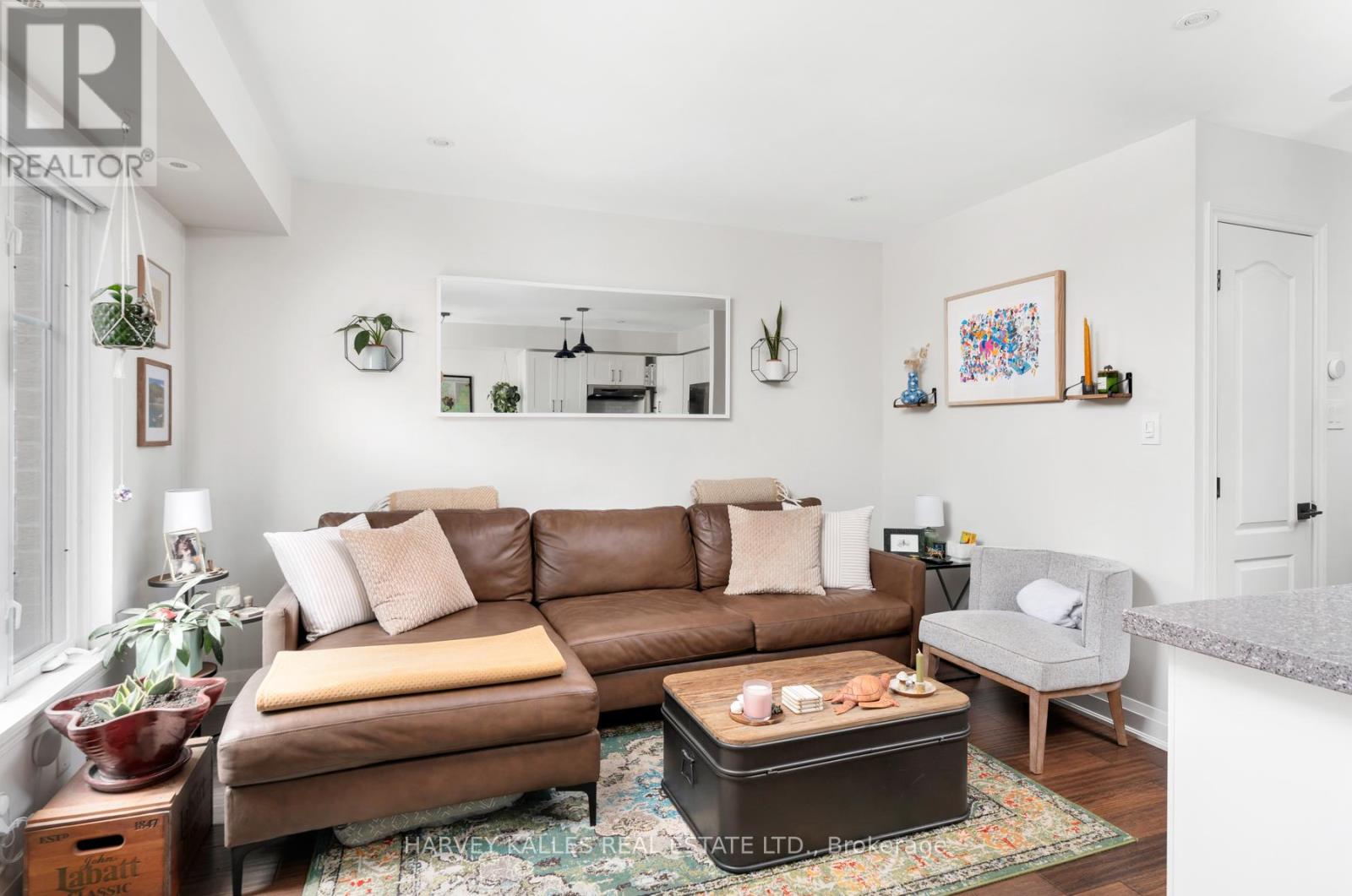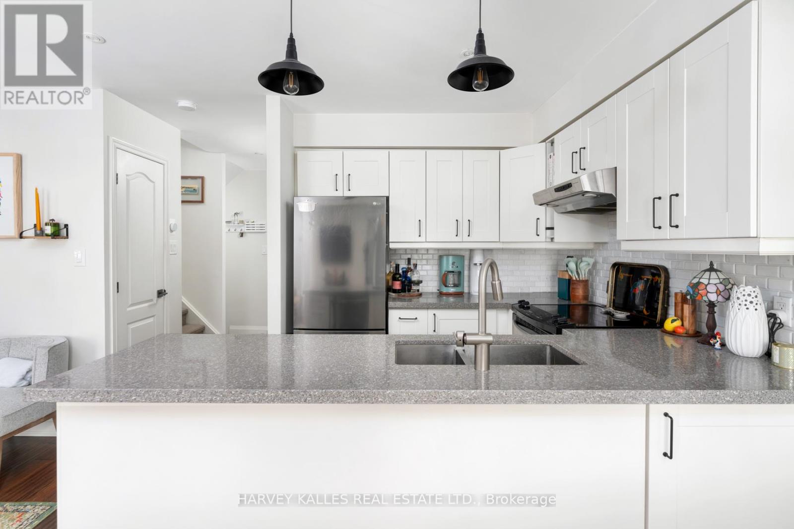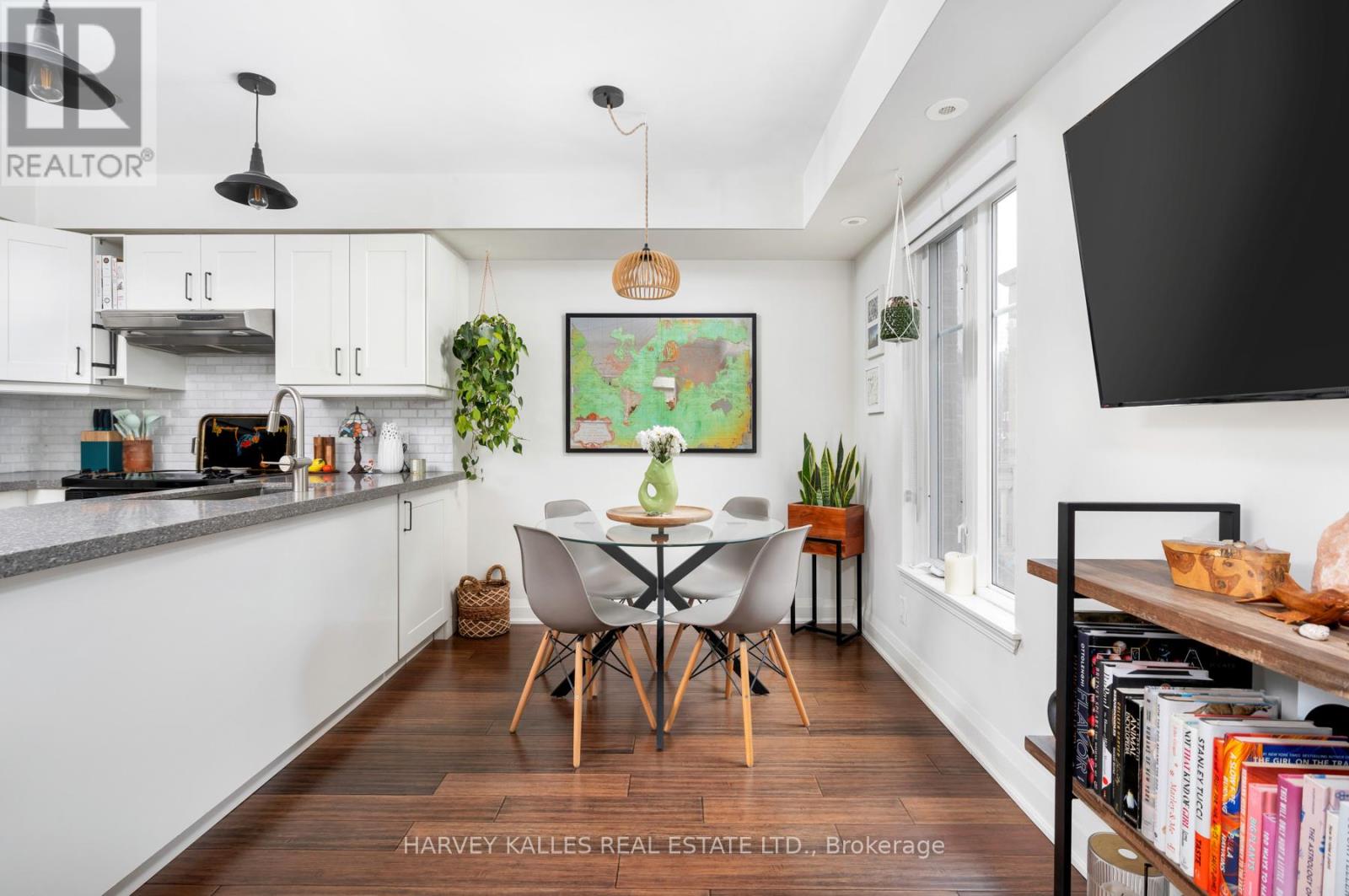 $697.60 MonthlyDiscover the perfect blend of style, function, and location in this beautifully updated 3-storey townhouse in the heart of Liberty Village. Offering two spacious bedrooms, two fully renovated bathrooms, and approximately 1,100 square feet of bright, thoughtfully designed living space, this home is ideal for professionals, couples, or small families looking to enjoy the best of urban Toronto living. The open-concept main level features engineered hardwood flooring, pot lights, and elegant pendant lighting. A renovated kitchen serves as the heart of the home, with quartz countertops, a subway tile backsplash, stainless steel appliances, and an oversized custom pantry for added storage. Both bathrooms have been tastefully upgraded, including a luxurious upstairs bath with heated marble floors. Each bedroom includes double closets with built-in organizers, offering excellent storage without sacrificing style. The standout feature is the expansive 330 sq. ft. private rooftop terrace with unobstructed city skyline viewsan ideal space for entertaining, relaxing, or hosting memorable evenings with friends. Complete with a gas BBQ hookup, its a rare outdoor retreat in the city. Additional conveniences include ensuite laundry, an underground parking space, and an owned locker. Monthly maintenance fees cover water, parking, and building insurance, making for stress-free, low-maintenance living. Located steps from parks, cafes, gyms, restaurants, boutique shops, and transit, this turnkey townhouse puts you in the heart of Liberty Villages vibrant energy. Whether youre upgrading from a condo or buying your first home, this is the one that checks all the boxes. Move in and start living the lifestyle youve been waiting for. (id:51158)