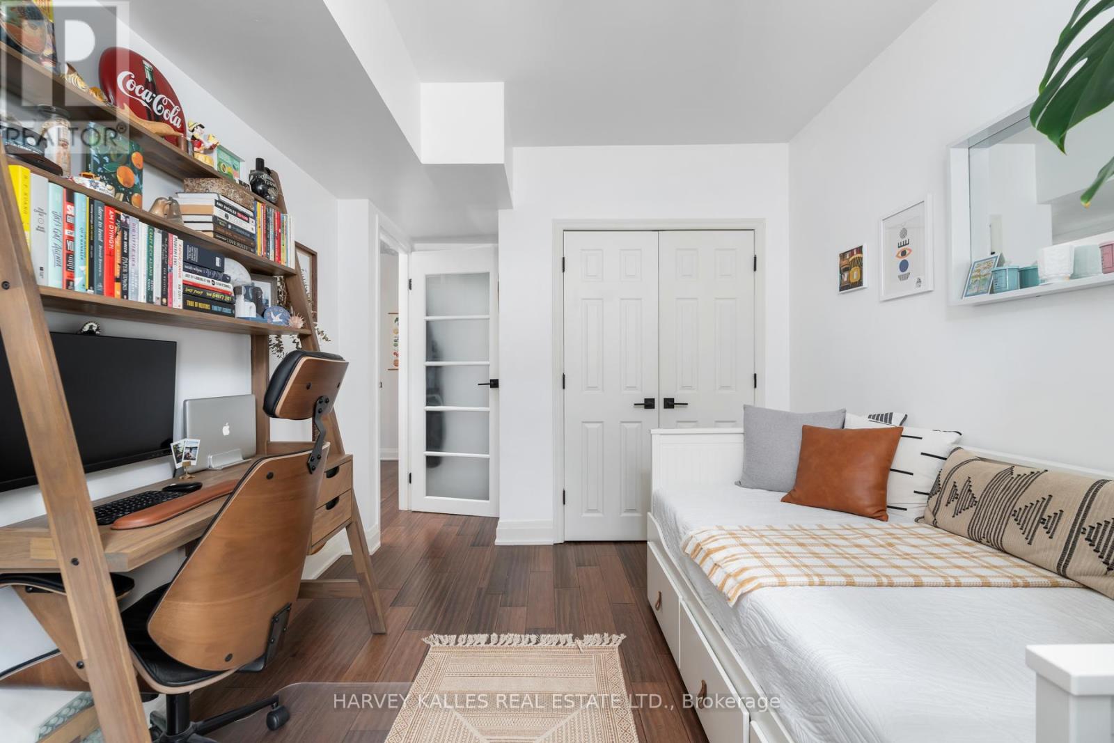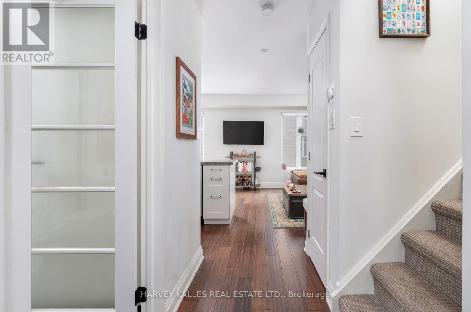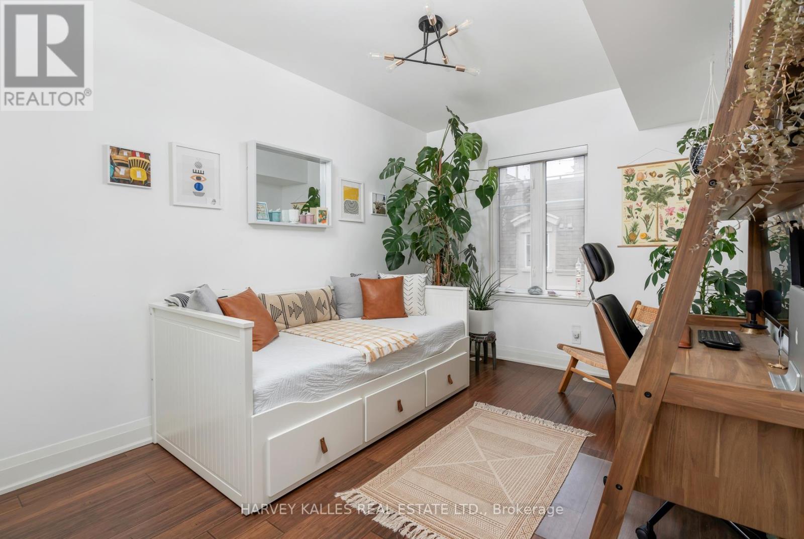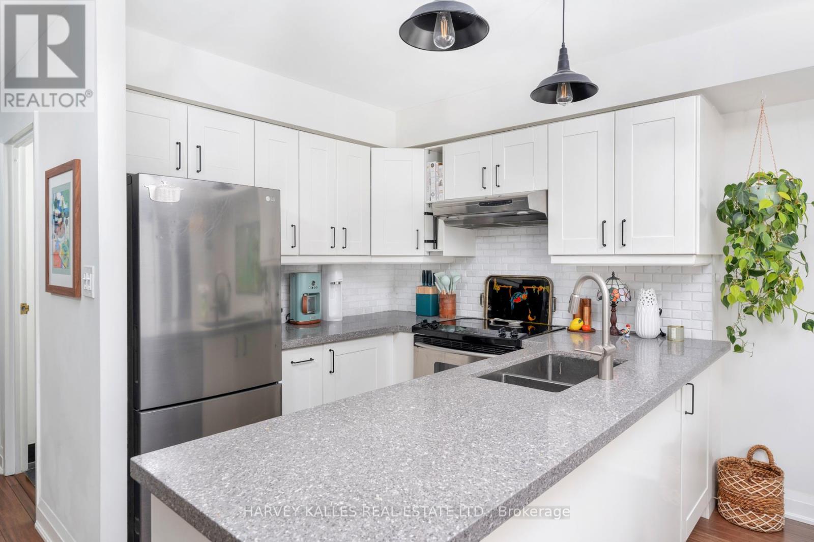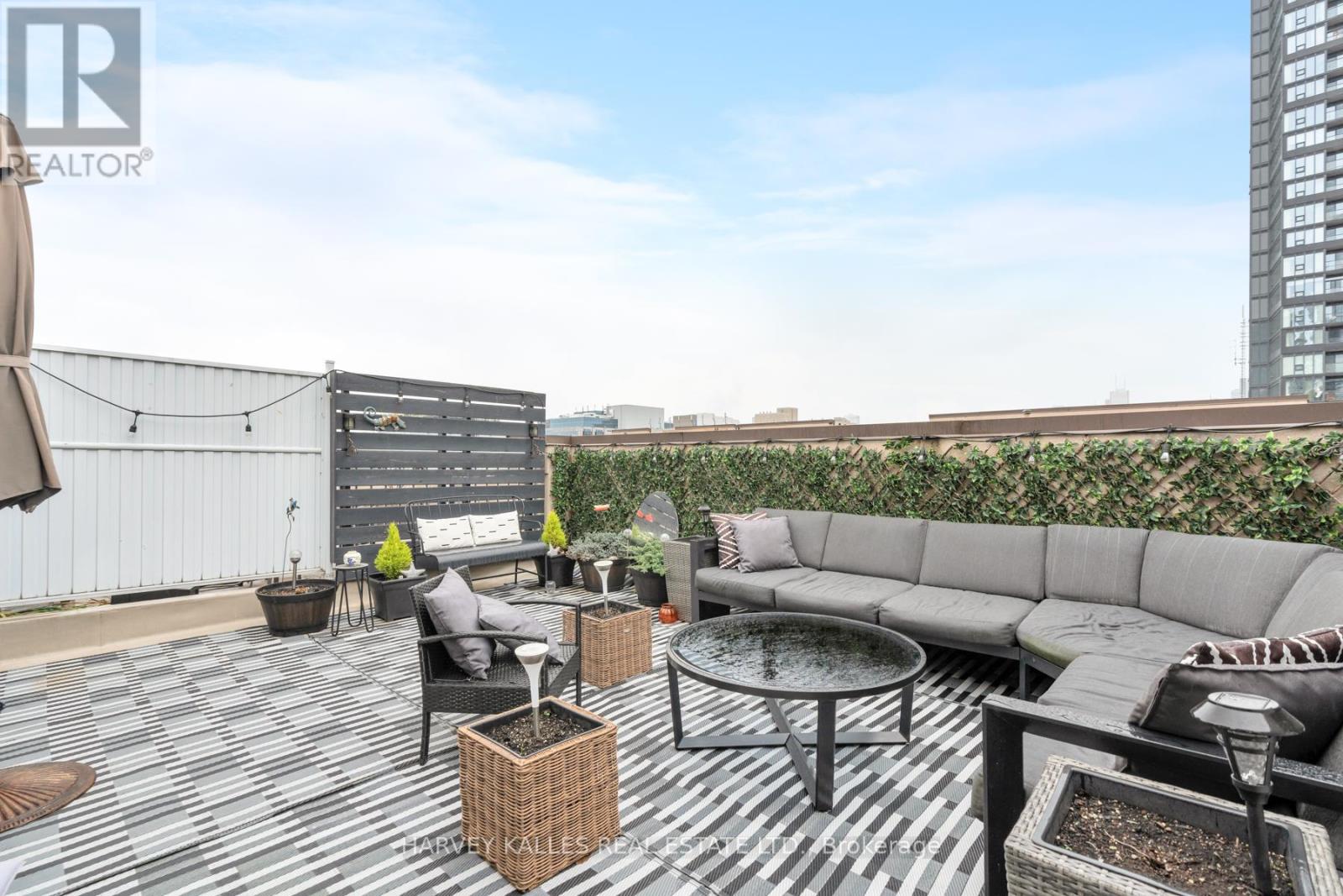 $697.60 MonthlyDiscover the perfect blend of style, function, and location in this beautifully updated 3-storey townhouse in the heart of Liberty Village. Offering two spacious bedrooms, two fully renovated bathrooms, and approximately 1,100 square feet of bright, thoughtfully designed living space, this home is ideal for professionals, couples, or small families looking to enjoy the best of urban Toronto living. The open-concept main level features engineered hardwood flooring, pot lights, and elegant pendant lighting. A renovated kitchen serves as the heart of the home, with quartz countertops, a subway tile backsplash, stainless steel appliances, and an oversized custom pantry for added storage. Both bathrooms have been tastefully upgraded, including a luxurious upstairs bath with heated marble floors. Each bedroom includes double closets with built-in organizers, offering excellent storage without sacrificing style. The standout feature is the expansive 330 sq. ft. private rooftop terrace with unobstructed city skyline viewsan ideal space for entertaining, relaxing, or hosting memorable evenings with friends. Complete with a gas BBQ hookup, its a rare outdoor retreat in the city. Additional conveniences include ensuite laundry, an underground parking space, and an owned locker. Monthly maintenance fees cover water, parking, and building insurance, making for stress-free, low-maintenance living. Located steps from parks, cafes, gyms, restaurants, boutique shops, and transit, this turnkey townhouse puts you in the heart of Liberty Villages vibrant energy. Whether youre upgrading from a condo or buying your first home, this is the one that checks all the boxes. Move in and start living the lifestyle youve been waiting for. (id:51158)