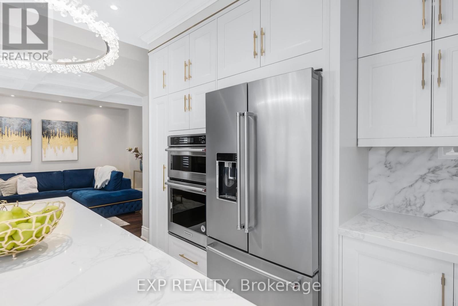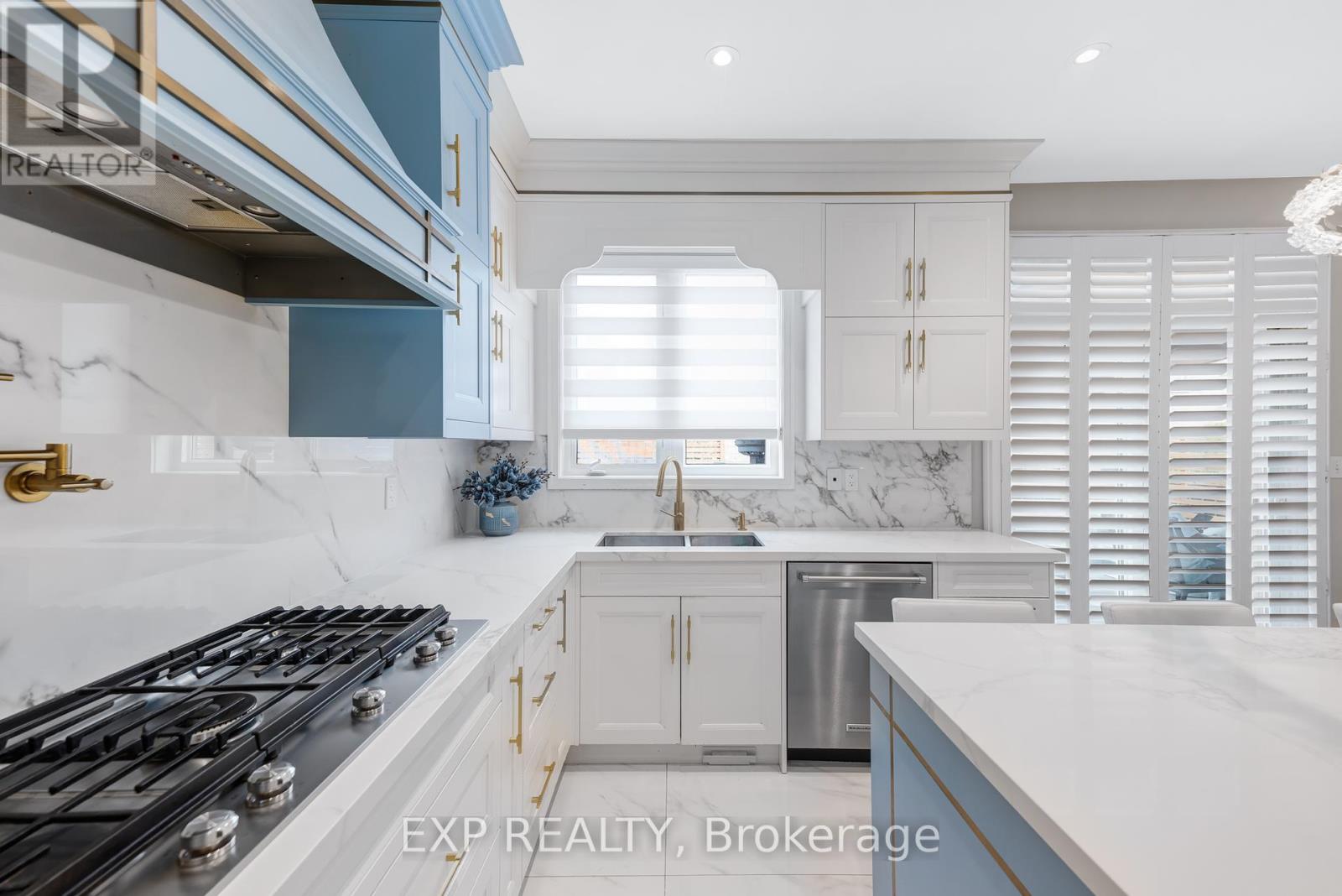 Welcome to 413 Sunny Meadow Boulevard! A Renovated Turn Key Gem Steps from Sesquicentennial Park. Located on a quiet, family-friendly street, this original owner home offers incredible value with thoughtful updates, smart features, and a layout designed for multi-generational living or income potential. Curb appeal shines with a timeless all-brick exterior, new garage door (2021), irrigation system, and parking for up to 6 cars on the oversized driveway. Inside, hardwood floors flow throughout the main and second levels, enhanced by crown moulding, pot lights, and a coffered ceiling in the living room. The cozy gas fireplace anchors the space, while the formal dining room is ideal for entertaining. The newly renovated kitchen is a showstopper with a 5-burner gas range, built-in oven/microwave, stainless steel fridge, quartz counters, and an oversized island. Upstairs features 4 spacious bedrooms plus a dedicated home office, perfect for remote work or study. The primary suite boasts his & hers closets (including walk-in) and a luxury ensuite (2021) with standalone tub and double sinks. Two bedrooms share a Jack & Jill bath, and the fourth has its own private ensuite. The finished basement offers 8-ft ceilings, a separate side entrance, and a rough-in for a bath and bedroom perfect for rental potential or an in-law suite. Your backyard is an entertainers dream: a composite deck (2022), built-in BBQ, and a cedar pergola covering a 9-person jacuzzi hot tub with pot lights and added privacy. (id:51158)