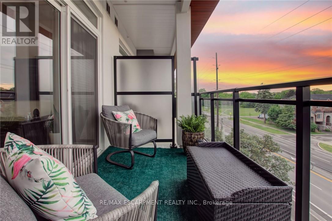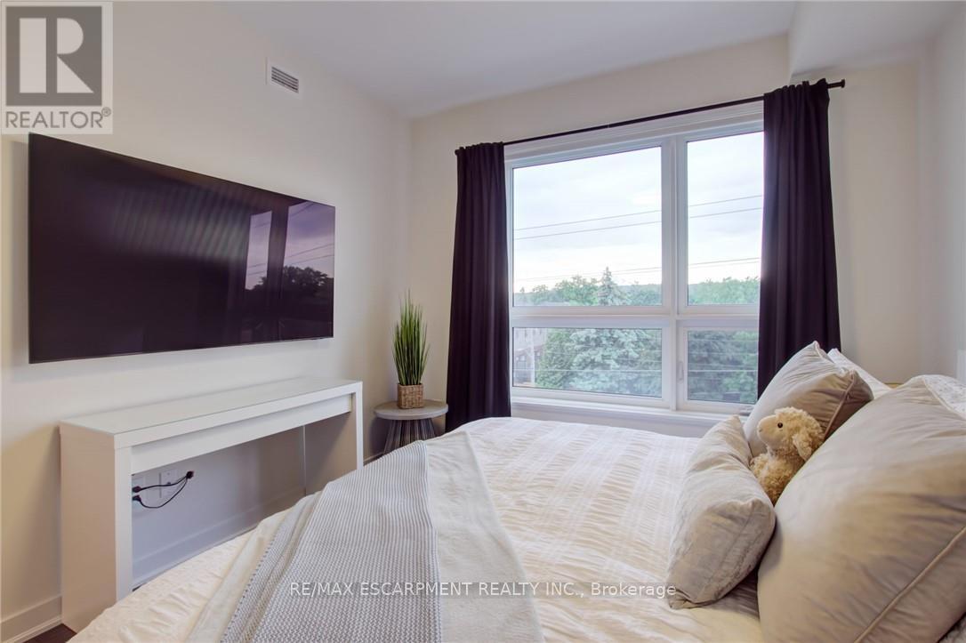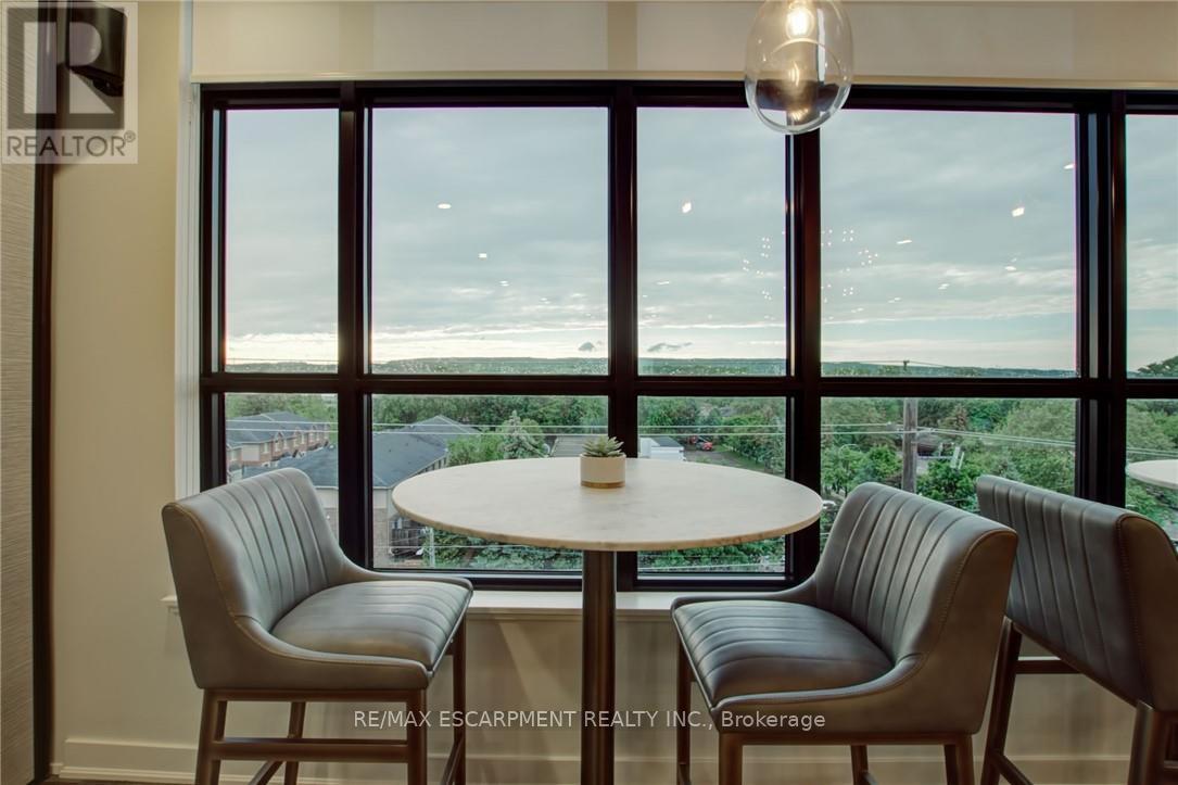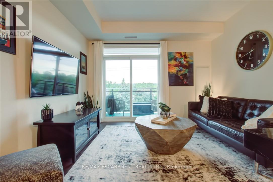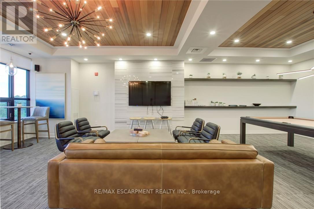 $623.99 MonthlyCheck out this amazing unit in the Trendy Affinity Condos! Living room, bedroom and terrace offer amazing sunset views of the Escarpment! Upgrades in this lovely high ceiling 1bdrm w den/workspace and 3pc bathroom. In suite laundry, master bedroom closet organizer. Large designer look kitchen area, loads of counter & cupboard space with adjacent bright living room perfect for entertaining. Newly replaced expanded quartz black island counter top with seating for 4-6 great for cooking and entertaining. Brand new stylish cabinet and door black hardware. Matching new quartz black counter in 3pc bathroom with stand up upgraded shower and tiled bathroom. Brand new fashionable black light fixtures throughout. TWO OWNED side-by-side underground parking spaces!! Loads of building amenities roof top patio with lounge area with fireplaces and barbeques. Work out gym with quality equipment, workout and yoga room. Party/games room, conference room, lots of visitor parking with an electric car charger station available. Unit locker is owned and located on the same level, convenient for storage. Providing modern living in the vibrant Aldershot neighbourhood! Located near GO Station, major highways, the downtown core, shopping and more! Lock and-leave lifestyle perfect for busy professionals or empty-nesters. (Investors welcome too...A+++ tenant offering to stay on for additional years). (id:51158)