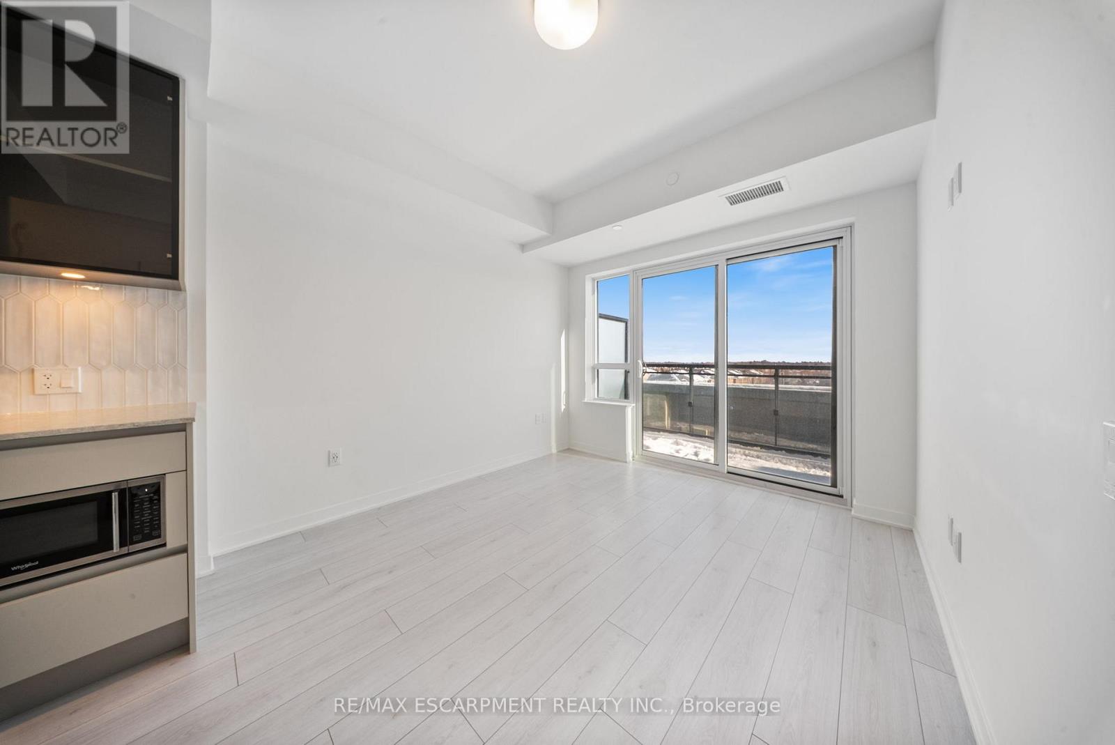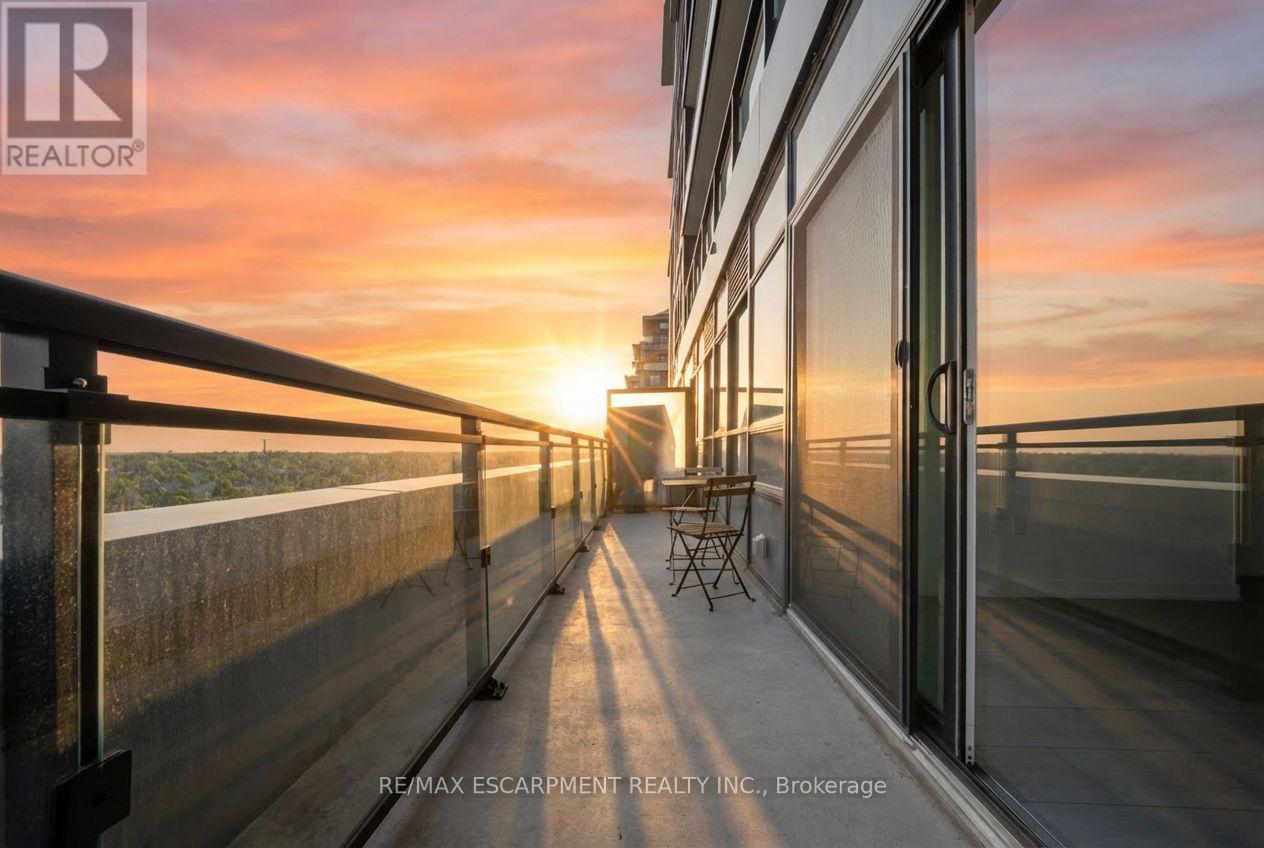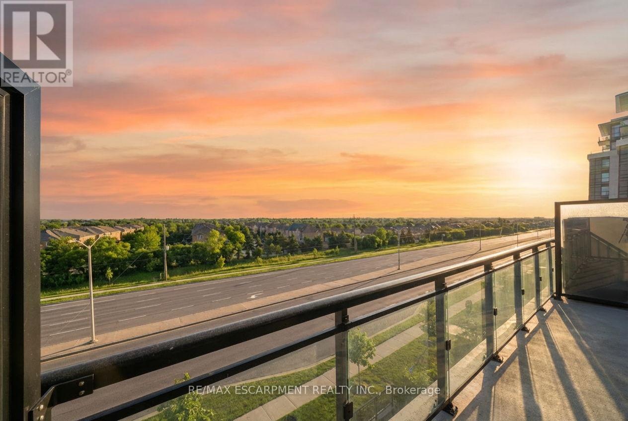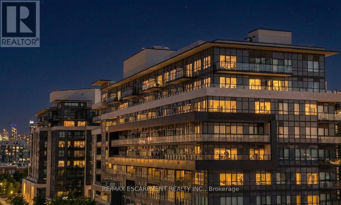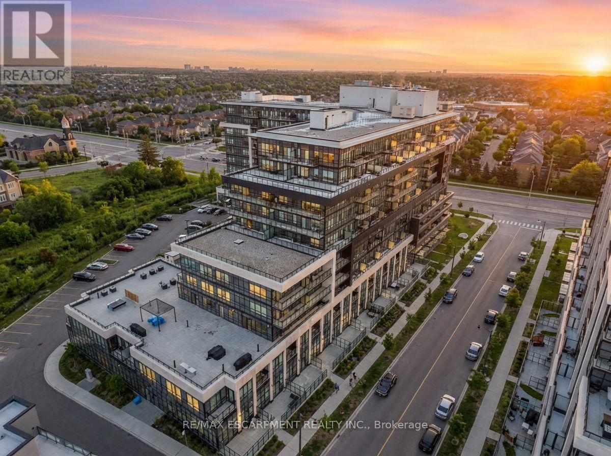 Welcome to Distrikt Trailside-where modern design, smart living, and exceptional convenience meet in the heart of North Oakville. This beautifully appointed 1-bedroom plus den, 2-bathroom suite features a bright, open-concept layout with soaring ceilings, top to bottom large windows, and abundant natural light. Enjoy the most sought-after south-facing exposure, offering sun-filled living and a sunny balcony with unobstructed view all the way to lake Ontario off your main living area-perfect for morning coffee or evening relaxation. The thoughtfully designed interior showcases elegant modern finishes, integrated cabinetry, quartz countertops, a sleek backsplash, and premium appliances, ideal for both everyday living and entertaining. Upgrades include Built in Microwave and Valance Lights. The versatile large den provides flexible space for a home office, guest area, or even second bedroom, while two modern bathrooms add comfort, privacy and functionality. Residents enjoy a smart and tech-forward lifestyle with an AI-powered Smart Community System included in the maintenance fees, offering seamless building access, security and visitor management. Resort-style amenities include a state-of-the-art fitness center with training and yoga spaces, party and meeting rooms, games room, concierge service, pet spa and a beautifully landscaped courtyard with BBQs and cabanas. Secure entry, underground parking, plenty of visitor parking, and a stylish lobby complete the offering. Ideally located minutes from Highways 403 and 407, GO Transit, Oakville Hospital, Transit, medical centers and major bus routes, with top-ranked schools, parks, trails, shopping, dining, and everyday conveniences. close by-many within walking distance, including Fortinos, Food Basics, cafés, restaurants, and transit. Whether you're a first-time buyer, downsizer, or investor, this is an exceptional opportunity to own a contemporary, well-designed condo in one of Oakville's most desirable communities. (id:51158)