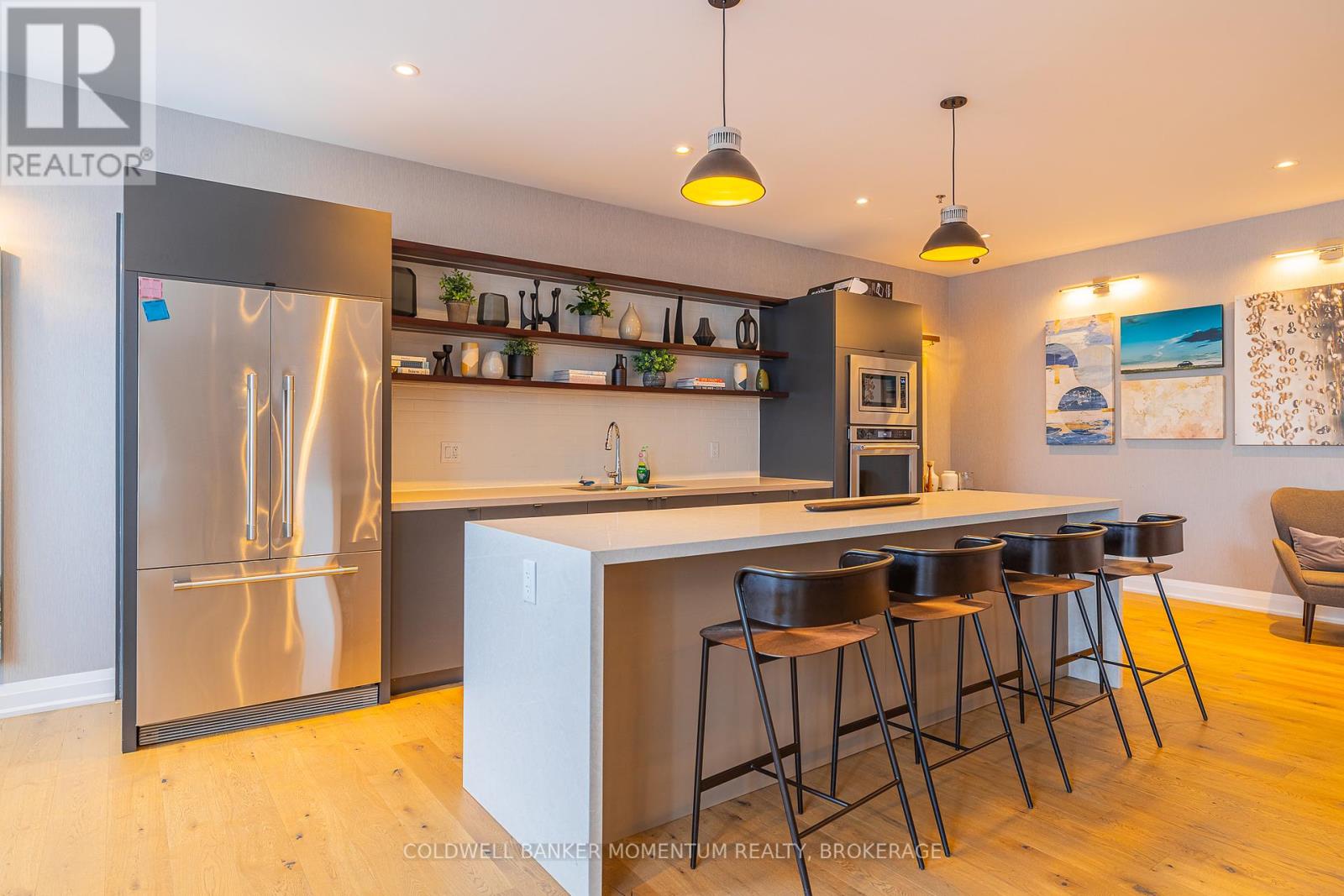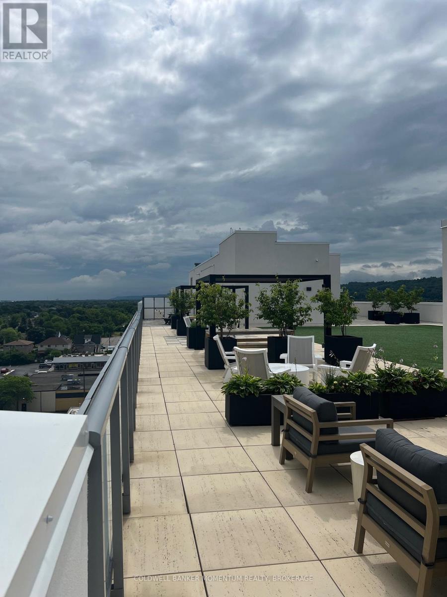 Welcome to Casa Di Torre Condominiums a modern, upscale building in the heart of Stoney Creek, built in 2021 by Marz Homes and Branthaven. This bright and stylish 825 sq. ft. corner unit offers 2 bedrooms, 2 full bathrooms, and 9-ft ceilings, all finished with quality upgrades. The southwest-facing layout provides plenty of natural light and features an open-concept kitchen and living area with a large island, quartz countertops, trendy backsplash, and access to a private balcony. The primary bedroom includes a 3-pc ensuite with glass shower and quartz vanity. A second full bathroom also features glass doors and quartz counters. Additional highlights include one underground parking space, and a storage locker. Residents enjoy premium building amenities including a fitness centre, yoga studio, lounge, party room, and rooftop terrace with BBQs and 360 views of the lake, city, and escarpment. Prime location directly across from Fiesta Mall with shops, dining, transit, and highway access all nearby. Move-in ready and perfect for professionals, downsizers, or investors. Book through BrokerBay. Note: No Smoking Policy, 2 Pet limit, dogs under 25 lbs (id:51158)