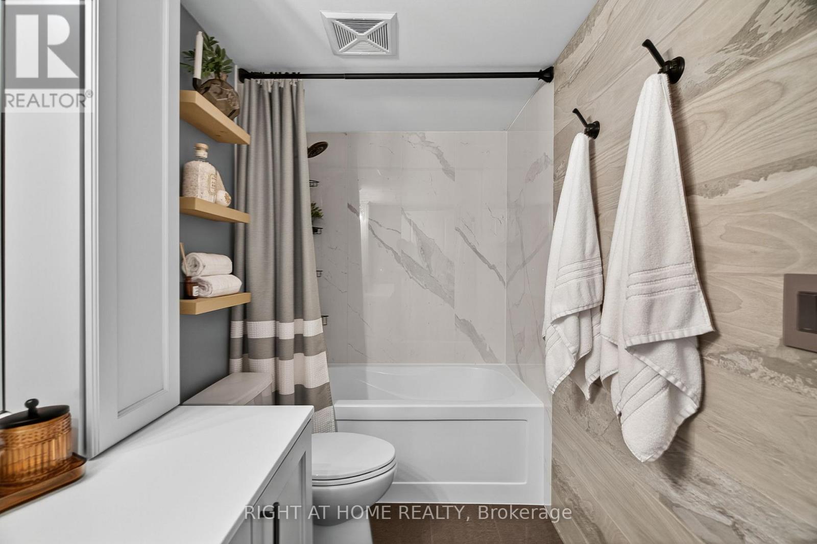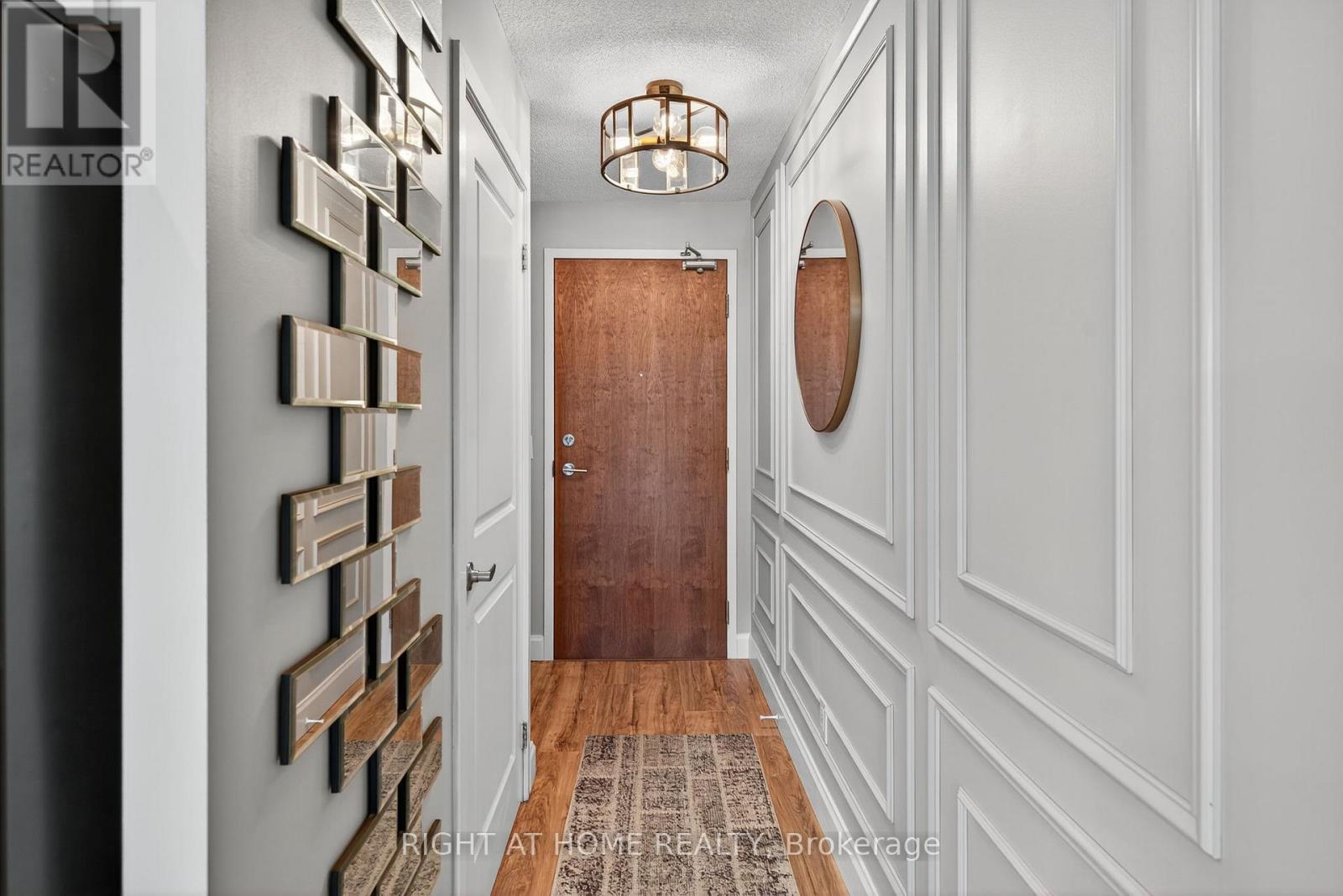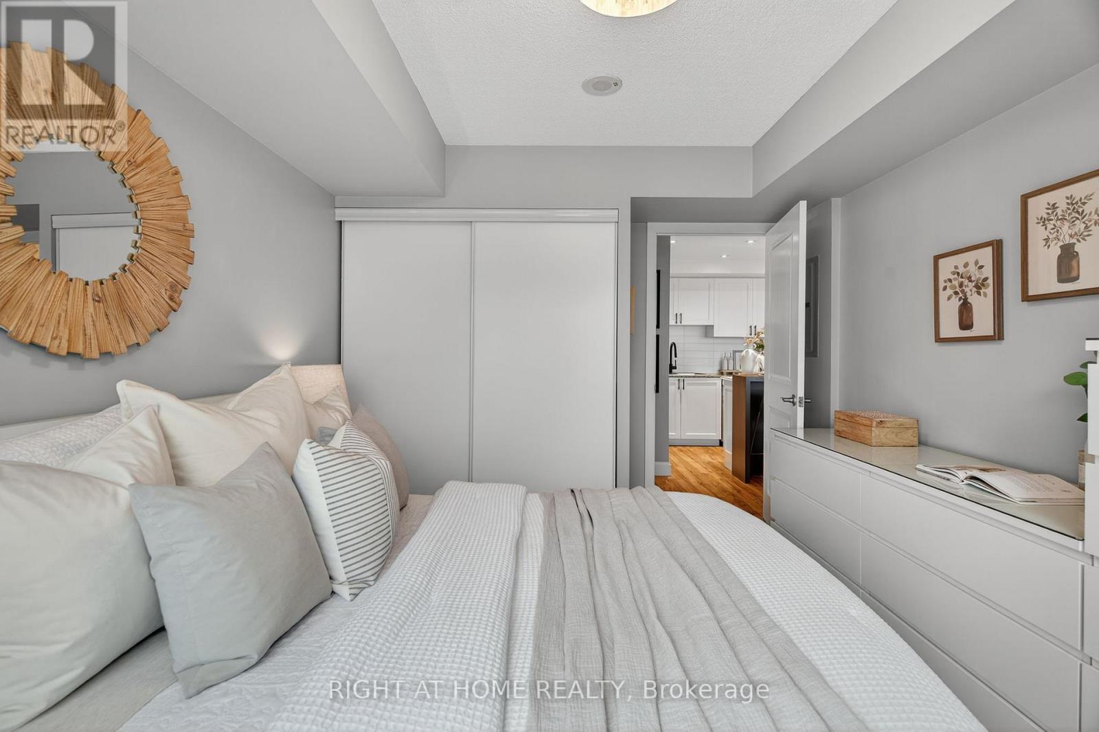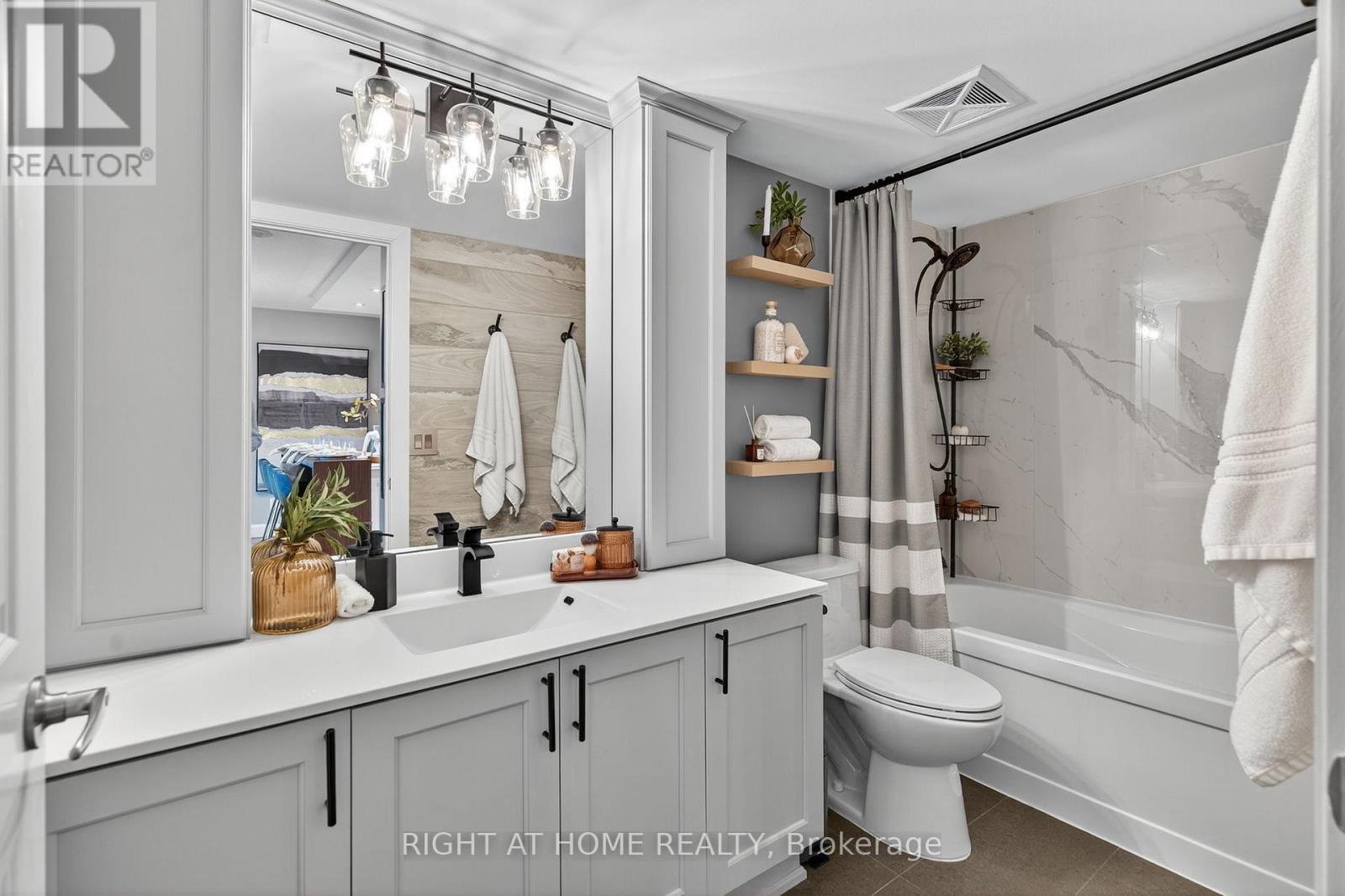 $527.39 MonthlyWelcome home to the esteemed San Francisco By The Bay condominium complex. This south facing, sun filled unit is meticulously renovated from top to bottom; no detail has been spared! Located in a prime Pickering location; close to the Waterfront, Pickering Town Centre, recreation centre, library, restaurants and steps to the GO Train station. The welcoming front hallway includes tasteful wall molding and a custom built pantry/closet combination. The eat-in kitchen features a custom built island, stainless steel appliances, subway tile backsplash & and new cabinet doors. The living area boasts a floor to ceiling entertainment wall and walks out to the uncovered balcony with outdoor flooring and custom benches for both seating and storage. The large bedroom features a sizeable south facing window and a custom designed closet. The newly tiled bathroom includes a large vanity with upper cabinets and a renovated bathtub/shower. You'll find upgraded flooring and light fixtures throughout! Building amenities include: 24-hour concierge service, underground parking, a locker for additional storage, large indoor swimming pool, steam room and fitness, aerobic and party rooms! (id:51158)