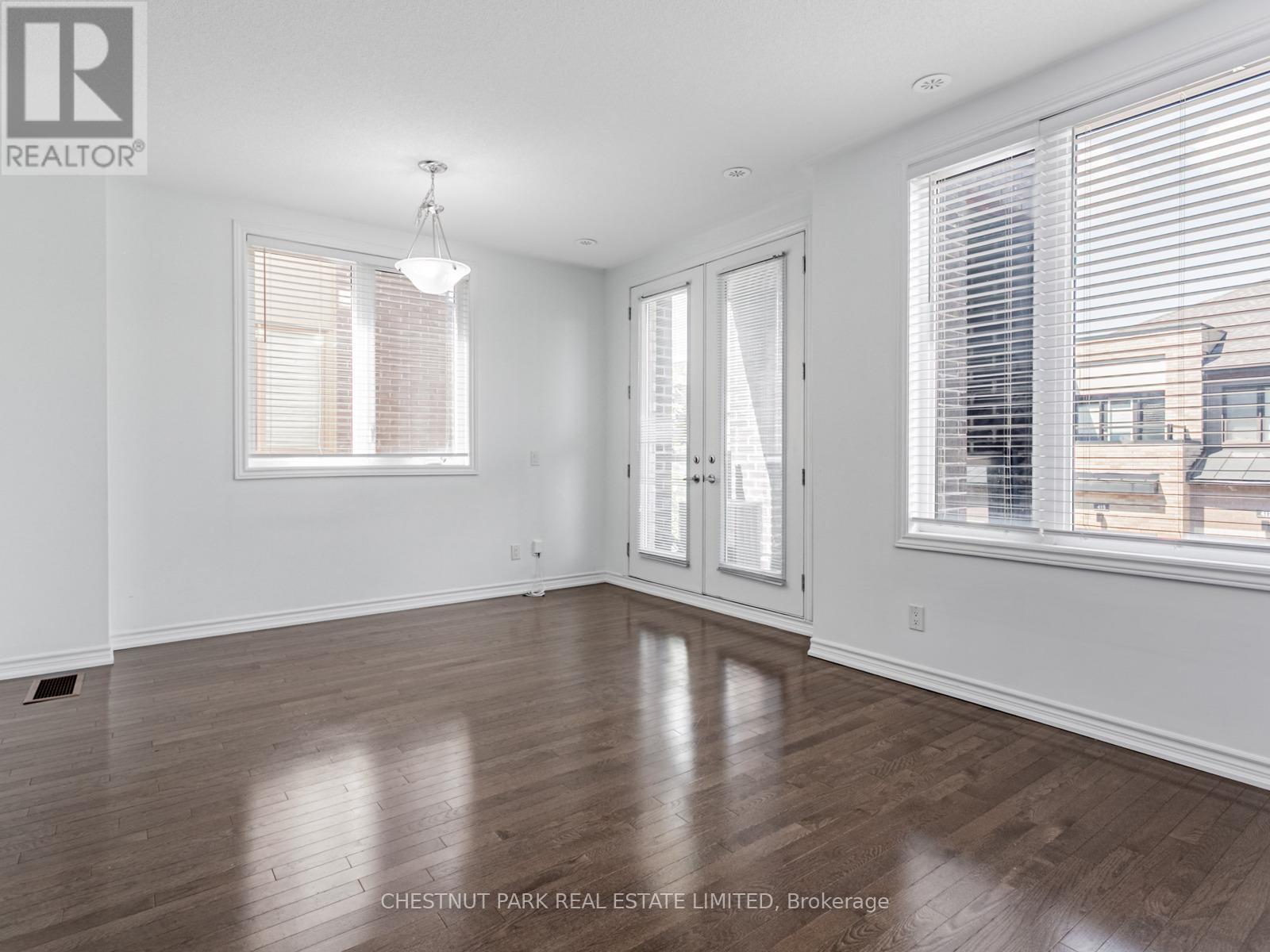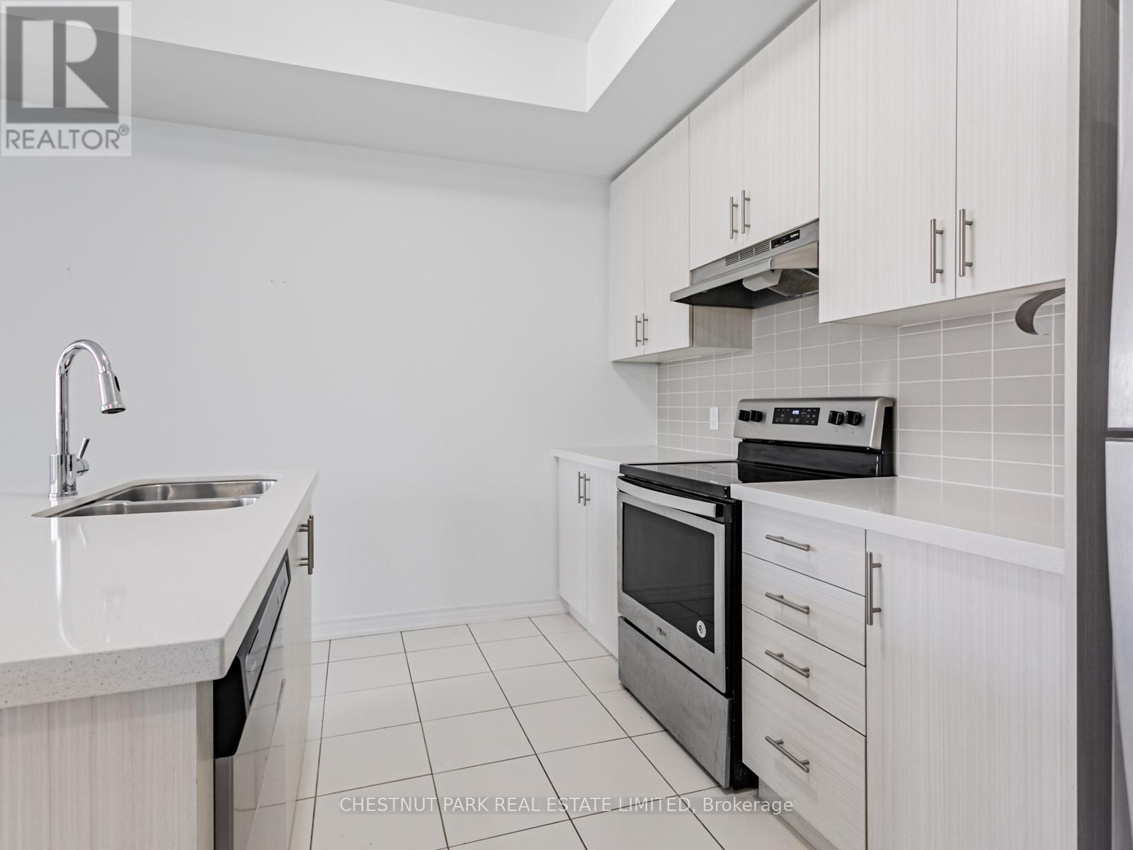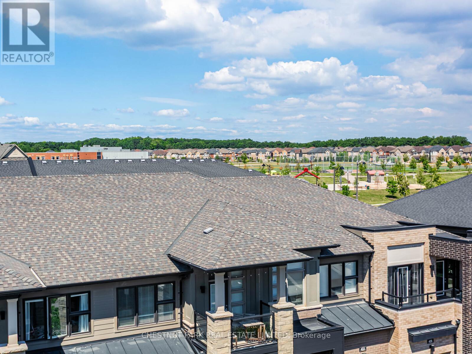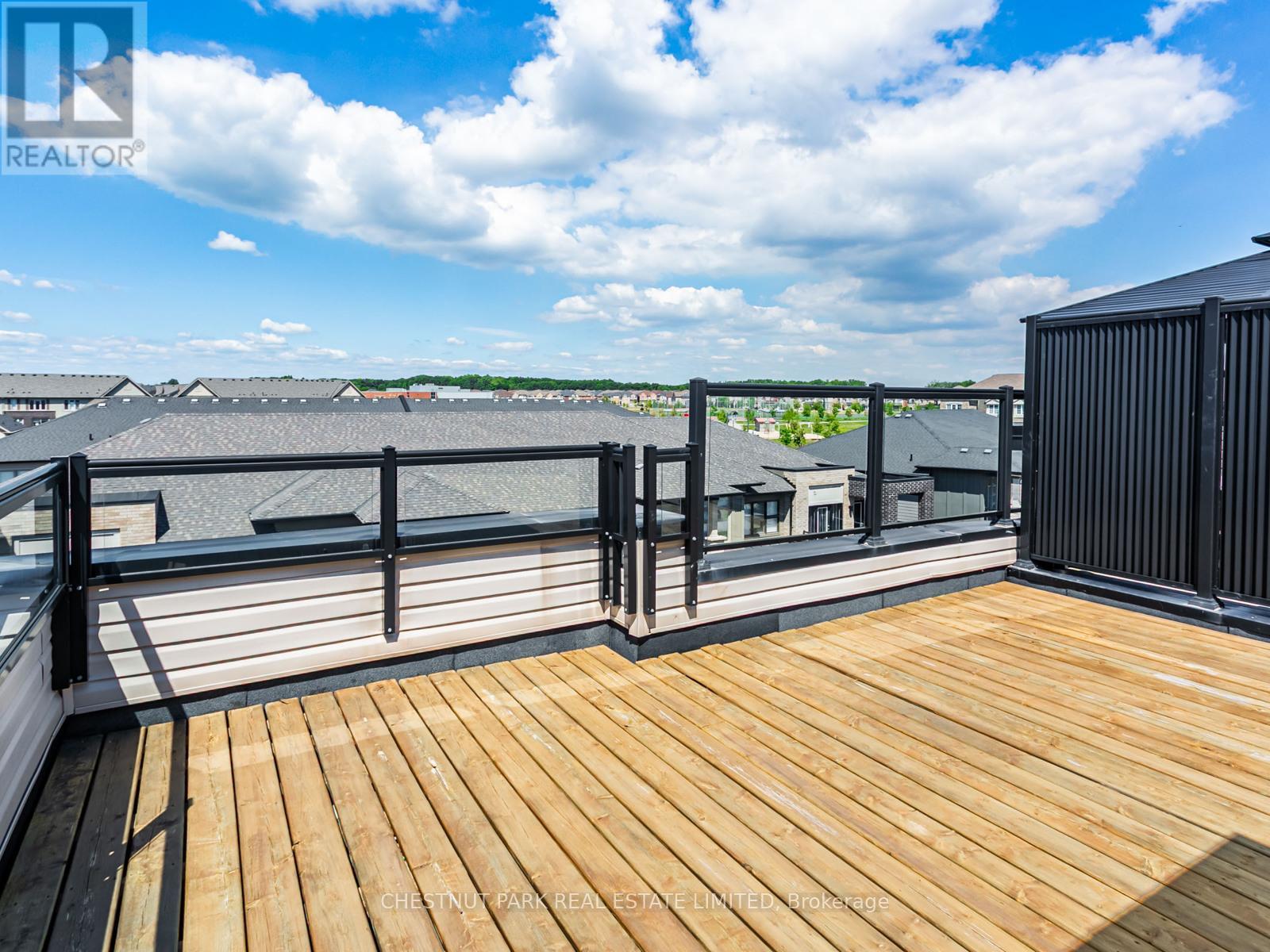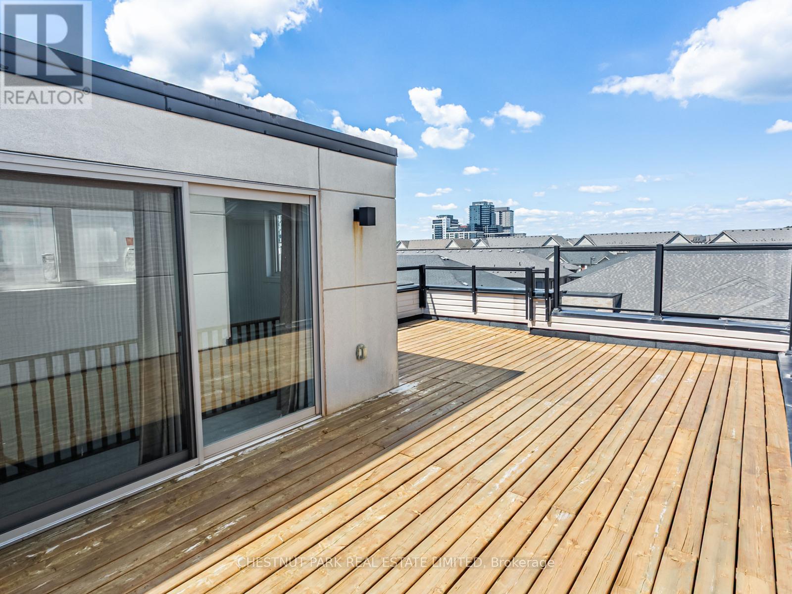 Executive newer construction two plus one bedroom, 3 bathroom end unit townhome with a private driveway, an attached 1.5 car garage (total parking for 2 cars), two balconies, and a large 445sf private rooftop terrace. Well located in the prime family-friendly neighbourhood of Joshua Meadows in north-east Oakville. Eco-friendly built for low utility bills and added comfort. The open concept main floor features 9-foot ceilings, a modern eat-in kitchen with granite counters, full-sized stainless steel appliances, a large island, a breakfast area, a 2-piece powder room and a walk-out to a covered balcony. The third level features a primary bedroom with a walk-in closet and a 3-piece ensuite featuring a large step-in shower, a good-sized second bedroom with a closet and a walk-out to a covered balcony, and a 4-piece main bathroom. The upper floor features a den/home office area and a spectacular rooftop terrace featuring gorgeous private views. The ground floor features a double closet and direct interior access to the garage. The lower level includes a full-sized washer and dryer, as well as excellent storage space in the crawl space. The garage provides great space for your car/sport utility, plus great additional space for storing your bikes and other storage needs. It's a short walk to the local park featuring a playground, splash pad, playing fields, picnic areas, and pickleball and tennis courts. Fabulous local schools, including Harvest Oak (JK to 7), River Oaks (gr 8), White Oaks (gr 9-12), and St. Cecilia Catholic Elementary School, two blocks close by. Quick access to Hwy 403/407/QEW/Go Station. There is an abundance of shopping and restaurants surrounding the area. No pets, no smoking. (id:51158)