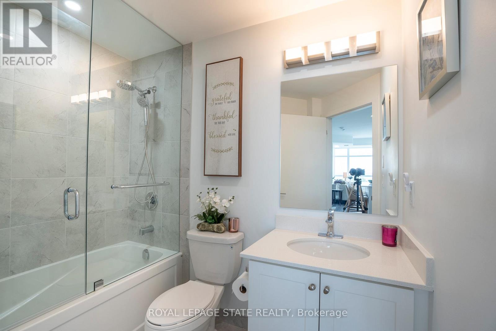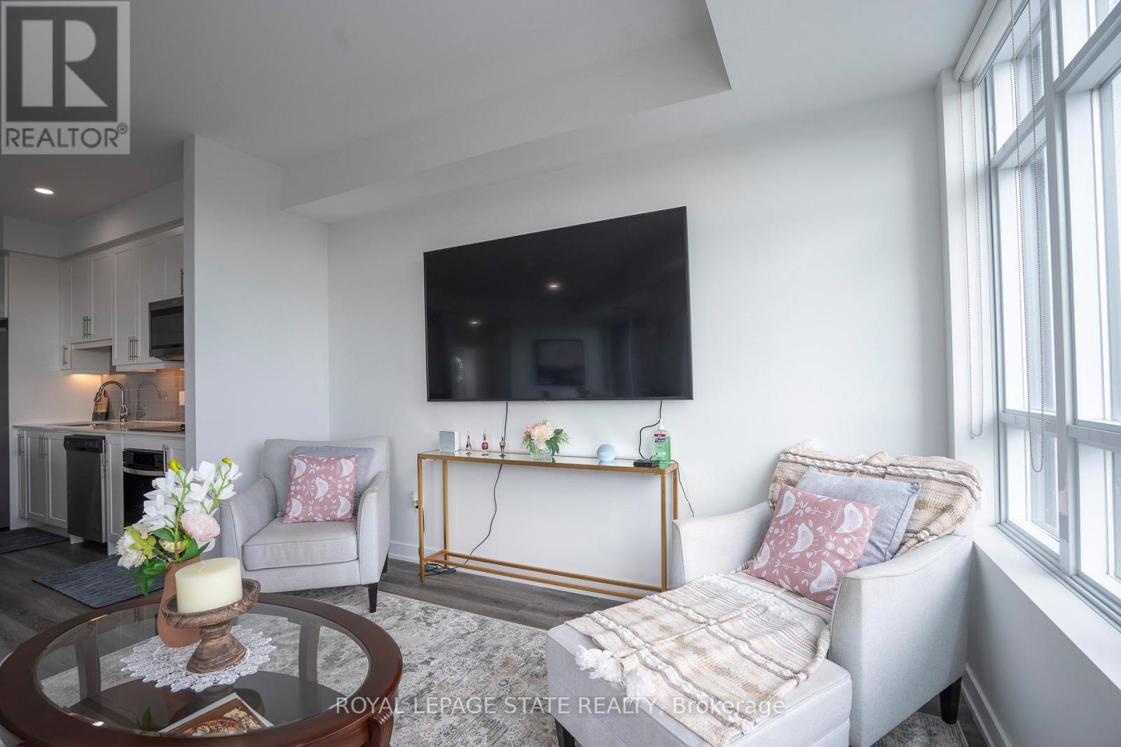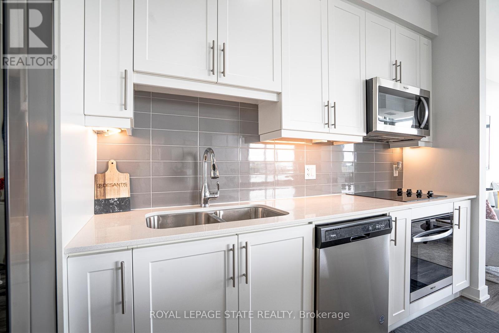 MLS# X12253987 – FOR SALE : 418 – 600 North Service Road Stoney Creek Hamilton – 2 Beds, 2 Baths ** Nestled along the pristine shores of Lake Ontario in the heart of Stoney Creek, this exceptional 2-bedroom, 2-bathroom corner suite at Como delivers a rare blend of style, space, and panoramic lakefront views – including the breathtaking Toronto skyline. Offering 1,238 square feet of meticulously designed interior space, this residence exudes modern elegance with 9-foot smooth ceilings and luxury vinyl plank flooring throughout. Flooded with natural light and boasting two full balconies, this suite is perfectly positioned to capture unobstructed lake views from virtually every angle. The gourmet kitchen is a showstopper, equipped with quartz countertops, a center island, stylish backsplash, under-cabinet lighting, and premium stainless steel appliances, including a French door fridge, wall oven, built-in cooktop, microwave, and dishwasher. Thoughtfully designed slow-close cabinetry elevates both function and finish. The spacious primary bedroom is a private retreat, featuring a walk-in closet, dual sinks, and a spa-like ensuite with glass shower, plus direct balcony access where morning coffee meets lakeside serenity. Custom roller shades offer privacy without compromising the view. Additional features include a heat pump (rental at $69.59/month), ensuring year-round comfort with energy efficiency. As a resident of Como, you’ll enjoy access to exceptional amenities: a media room, party room, and rooftop terrace – ideal for entertaining or relaxing while soaking in the sweeping lake and skyline vistas. With every detail curated for comfort and sophistication, Suite 418 is more than just a home – it’s a lifestyle. Don’t miss your opportunity to own one of Como’s most desirable lake-facing units. (id:51158) ** 418 – 600 North Service Road Stoney Creek Hamilton **