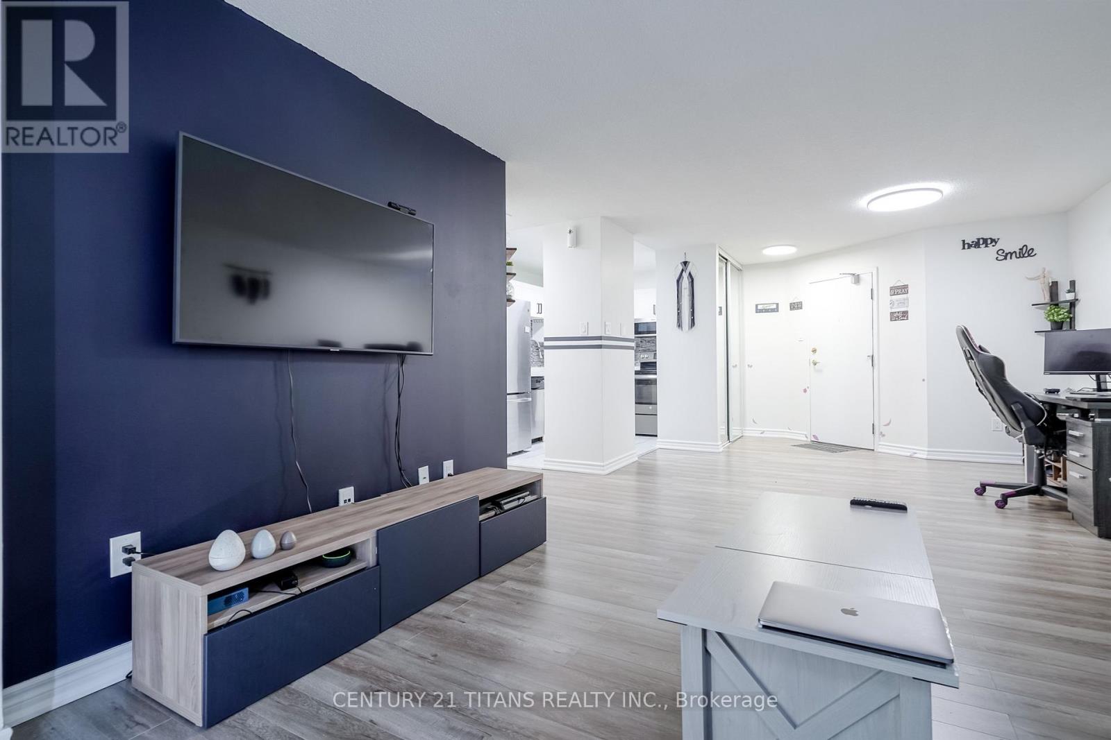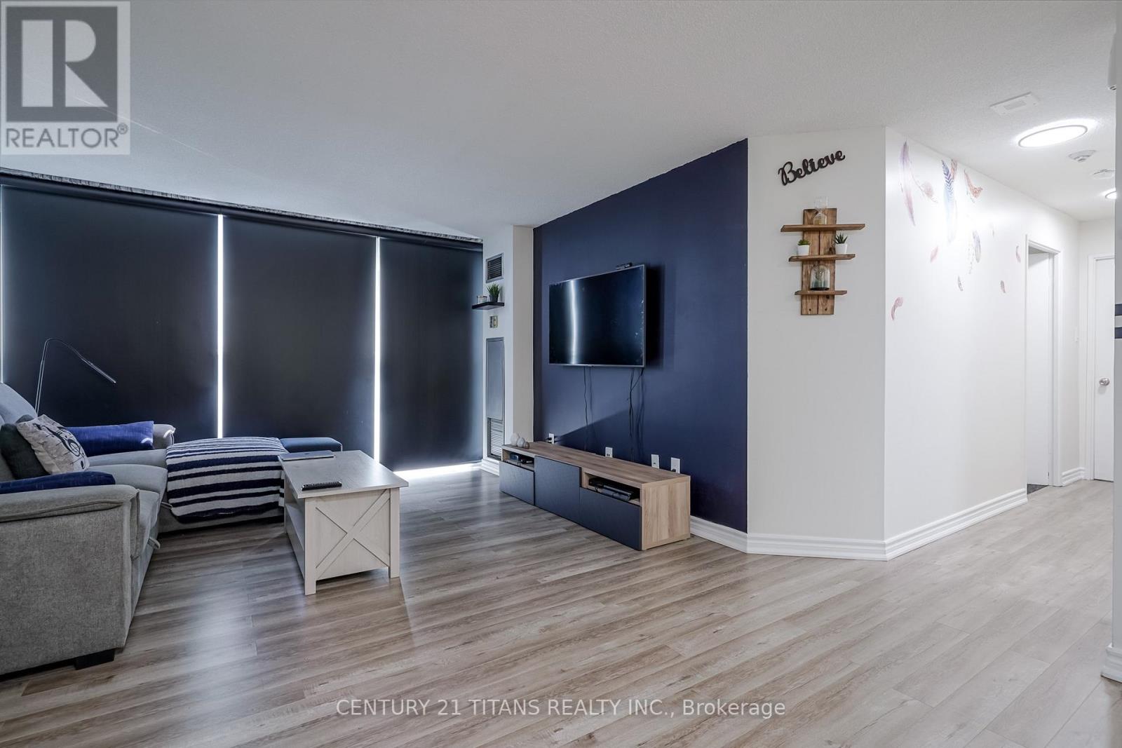 $948 MonthlyDiscover this beautifully renovated, stunning end unit offering breathtaking city views! Featuring 2 bedrooms and 2 bathrooms, this home boasts a brand-new kitchen with modern closets and elegant porcelain flooring. Enjoy new laminate floors throughout, stainless steel appliances, and an ensuite washer and dryer. Floor-to-ceiling windows flood the space with natural light. Conveniently located within walking distance to Square One and close to highways, bus routes, and GO terminals. Move-in ready for you to enjoy! (id:51158)