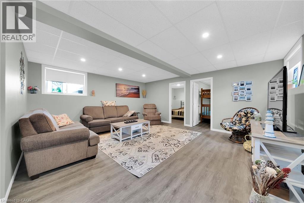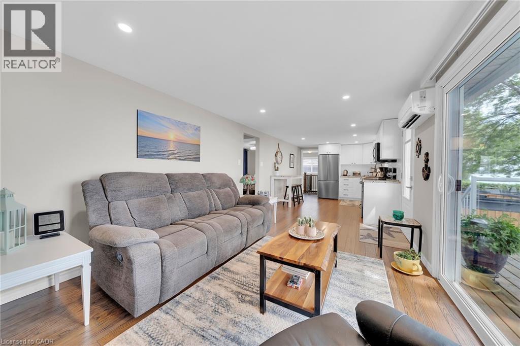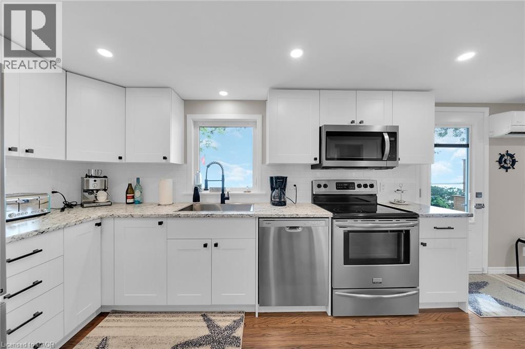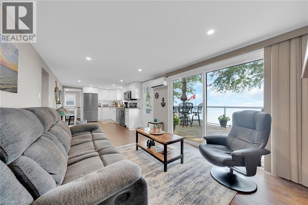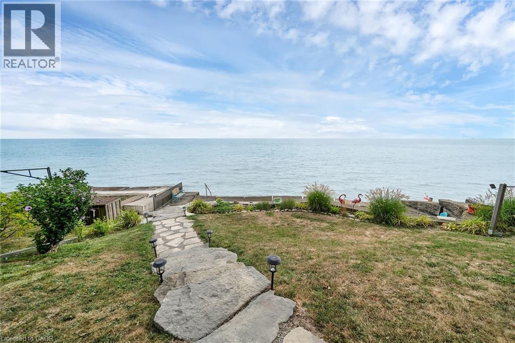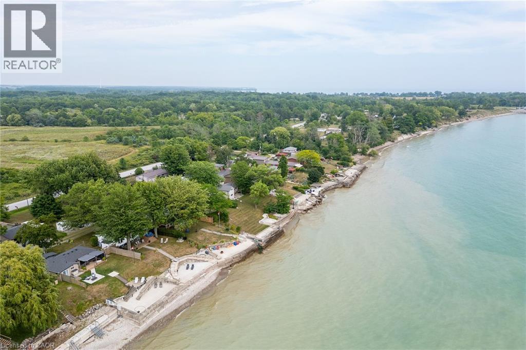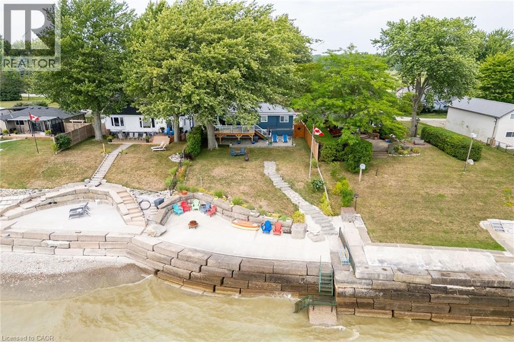 Beautifully updated Lake Erie waterfront property fronting on quiet, private lane - mins West of Woodlawn & Peacock Point - 45/55 min/Hamilton, Brantford & 403 - 15 mins E. Port Dover popular amenities - near Selkirk. Positioned majestically on 0.15ac lot is tastefully appointed, freshly redecorated year round cottage offering 1600sf (both levels) of nautically inspired living area - mounted firmly on new 782sf poured concrete basement-2016 boasting sought after IN-FLOOR heat through-out plus spectacular resort-style lake facing yard offering several unobstructed, panoramic water viewing venues -incs 240sf entertainment deck-2017, 288sf paver stone patio-2018 & armour stone garotto'20 built on quality professionally installed break-wall incs retractable lake access ladder. Spacious side foyer provides entry to gorgeous new kitchen-2024 sporting modern white cabinetry, mobile island & premium stainless steel appliances - continues to living room ftrs p/gas FP, sliding door deck walk-out & new man deck walk-out-2020 completed w/2 sizeable bedrooms & updated 3pc bath. Durable engineered hardwood flooring & new drywalled ceiling augmented w/LED pot lights-2024 compliment soft, inviting décor w/stylish flair. Generous size family room highlights 9ft high lower level - perfect for large family or friend gatherings - or - simply to relax after a day of aquatic adventures -incs 2 roomy bedrooms, utility room & east-side landing. Desired heated laminate flooring & multiple oversized above grade windows ensure comfortable, bright lower level ambience Extras -metal roof'23, exterior vinyl siding'16, windows'16, ductless heat/cool HVAC unit'20, groomed double driveway, 2000 gal water cistern, 2000 holding tank, new 100 amp hydro panel-2024 & stand-by generator w/separate panel. Stylish “Year-Rounder” or Ideal “Weekend - Weekday” Retreat - Unpack & Enjoy! (id:51158)
