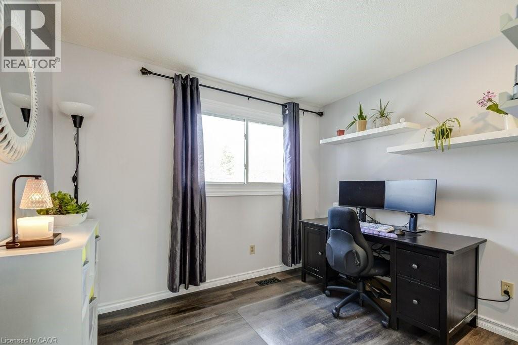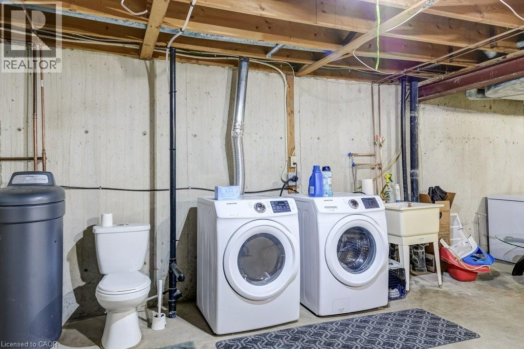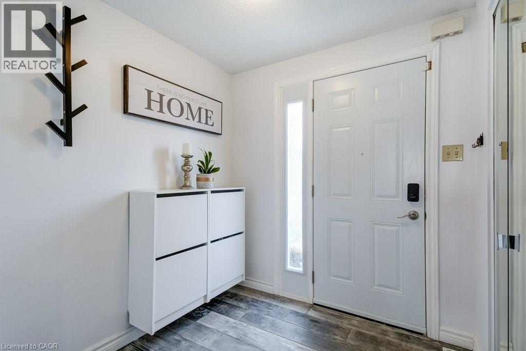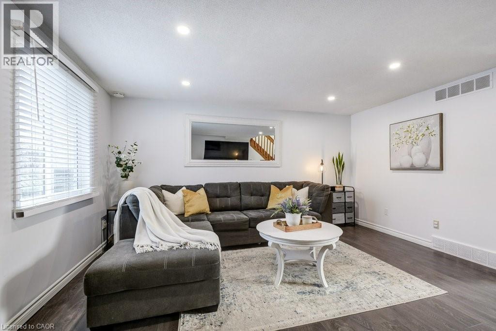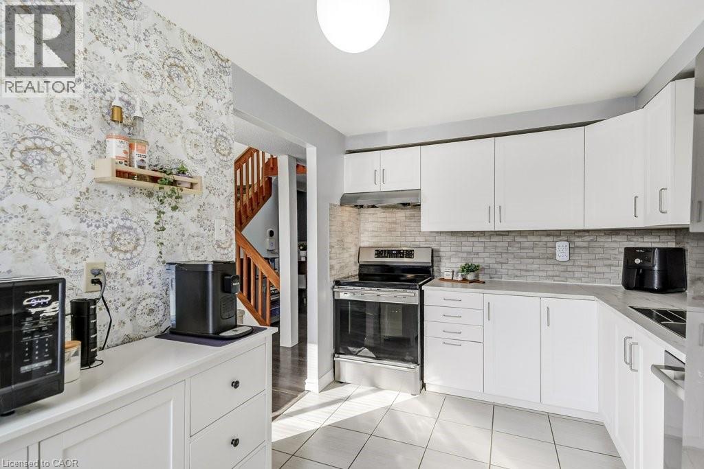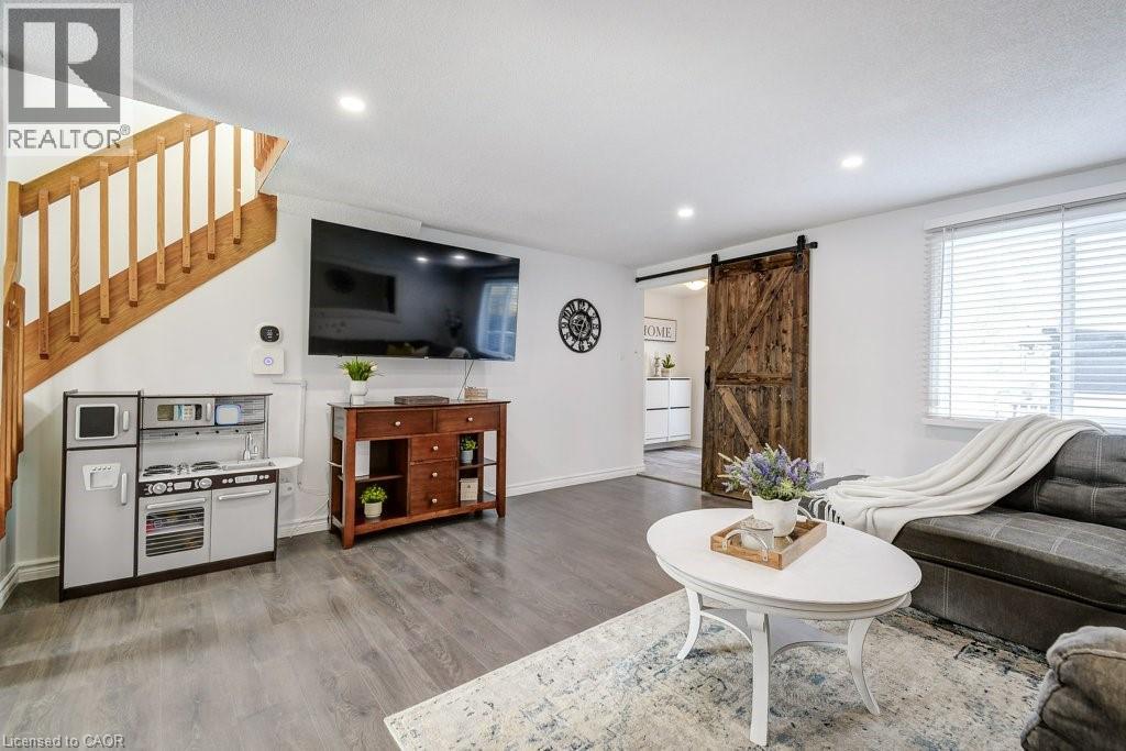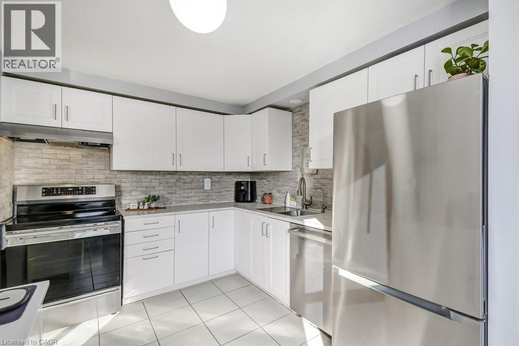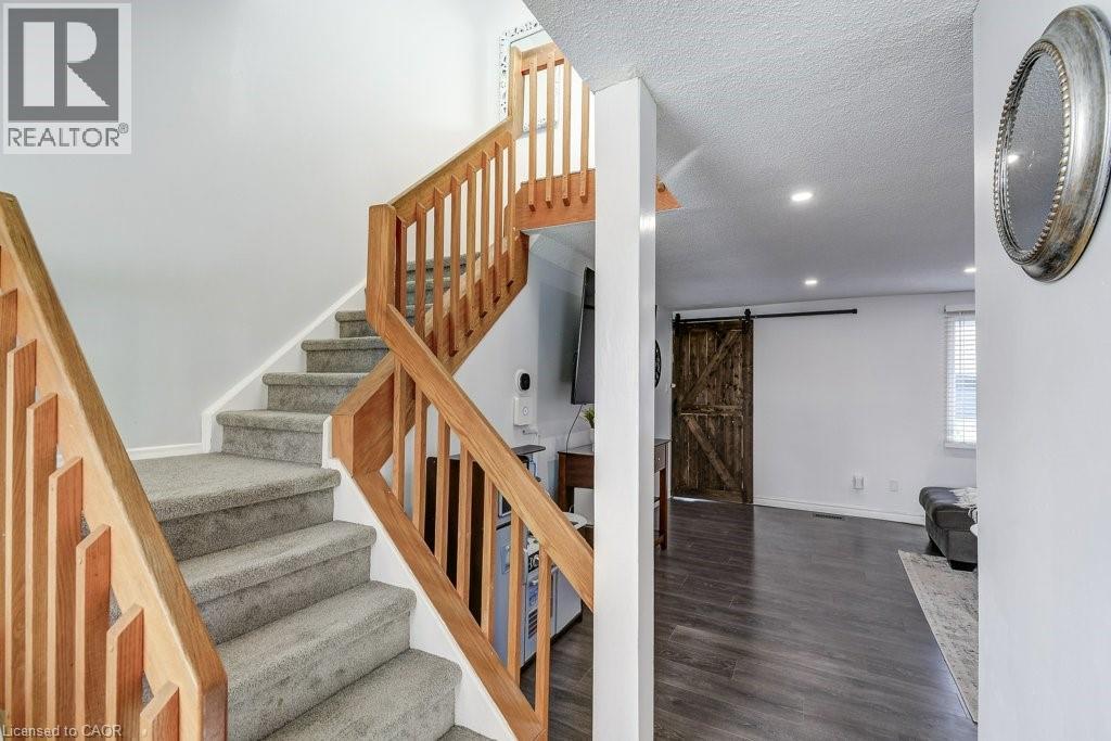 Opportunity is knocking with no condo fees! This bright and inviting freehold townhome offers a spacious layout and vibrant interior - perfect for entertaining family and friends. You'll love the easy flow of the main level which comes complete with a generous living room as well as a dining area with a vaulted ceiling and stylish light fixture. The fully remodeled kitchen with crisp white cabinetry, additional pantry and stainless steel appliances make it both stylish and functional. Upstairs, you’ll find three good-sized bedrooms and an updated 4-piece bathroom. This home has been freshly painted throughout and features brand new vinyl flooring and plush carpeting on the stairs. A large unfinished walk-out basement offers an ideal blank canvas for future living space and includes a rough-in for a second bathroom. Step outside to a large partially fenced backyard perfect for kids to play or simply just relaxing in the sun. Two new sheds provide outside storage space. A beautifully stamped concrete front patio and a freshly paved driveway (2022) with carport accommodates up to three vehicles. Enjoy peace of mind with several recent upgrades, including a newer furnace, humidifier, and smart thermostat (2021), all with transferable warranties. Additionally, the home comes equipped with a Ring security system which will be staying with the house. Ideally located in a family friendly neighbourhood close to parks, shopping, schools, and is just minutes from Highway 401. This property is a fantastic opportunity you won’t want to miss. Book your showing today! (id:51158)