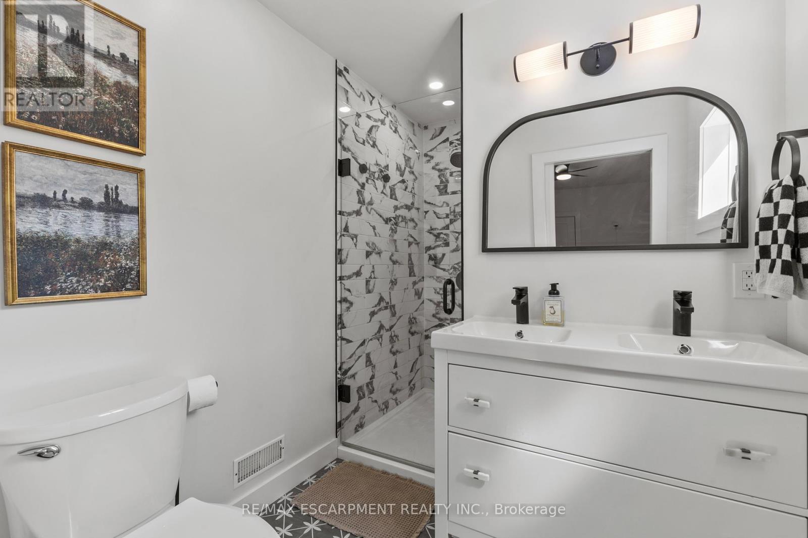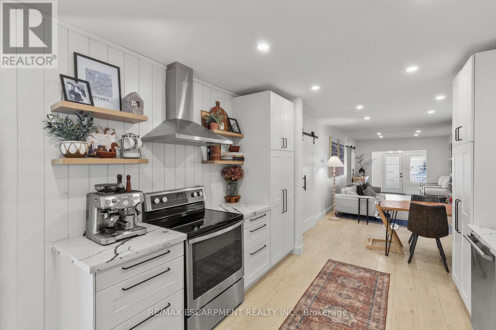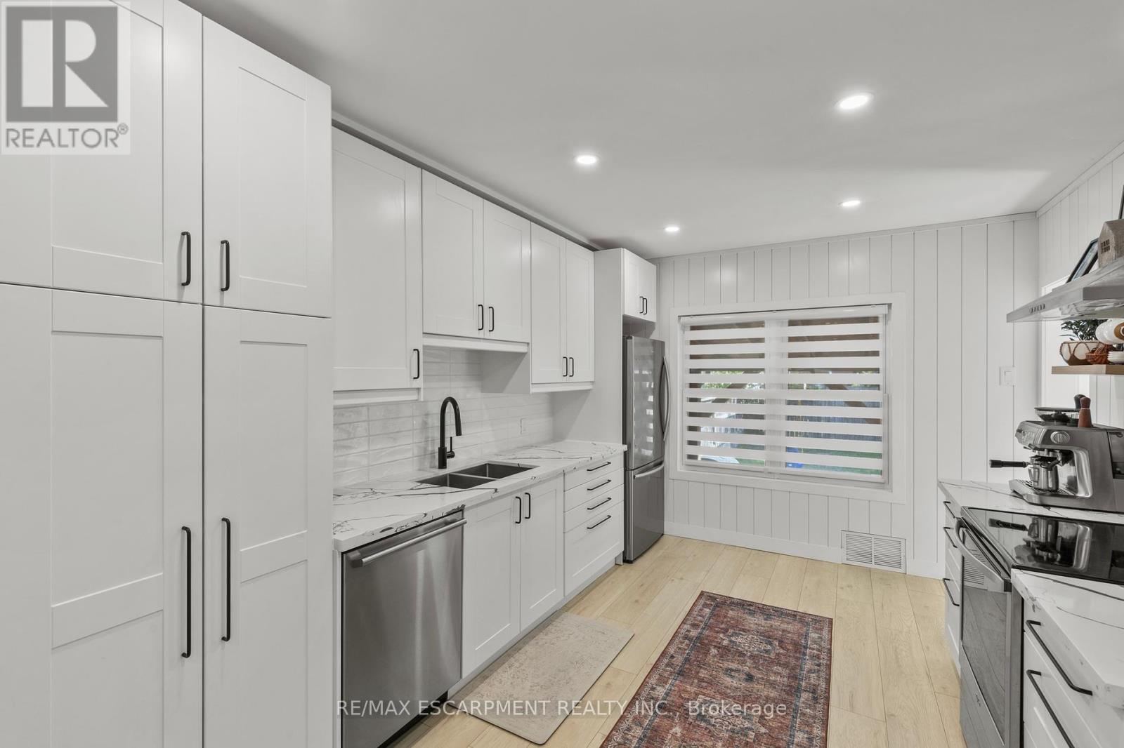 Modern, functional, and fully renovated this 2+1 bedroom, 2-bath home is designed to impress. The bright foyer opens into a stunning main floor where a full open-concept layout, crisp white walls, and sleek finishes create a fresh and timeless style. With generous bedrooms, two updated bathrooms, and a finished lower level that adds flexibility for a family room, home office, or guest retreat, the home balances style with practicality. Outside, a private backyard and covered porch extend the homes living areas, offering a comfortable spot to unwind or entertain. Perfect for first-time buyers or those looking to downsize, this property delivers move-in-ready living in a desirable Hamilton neighbourhood. (id:51158)
