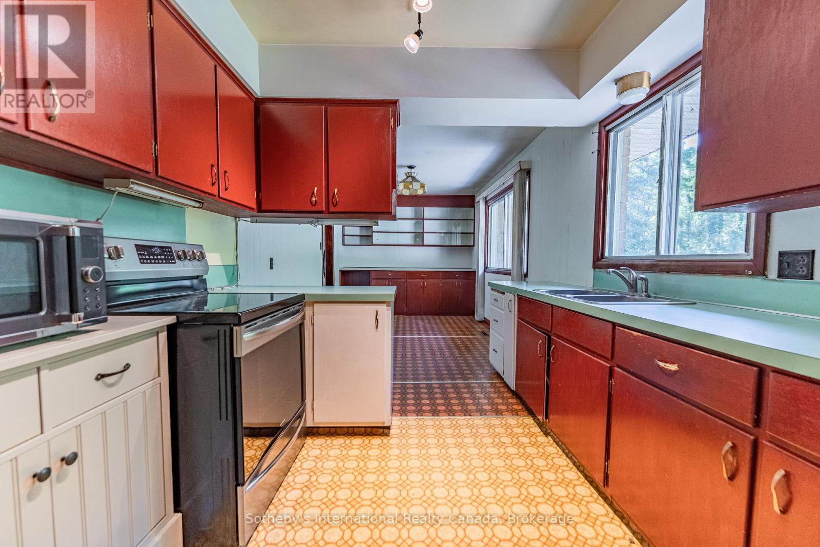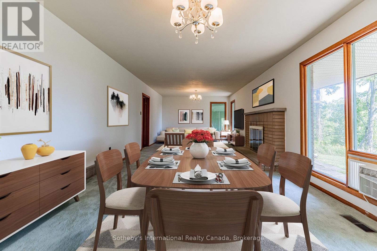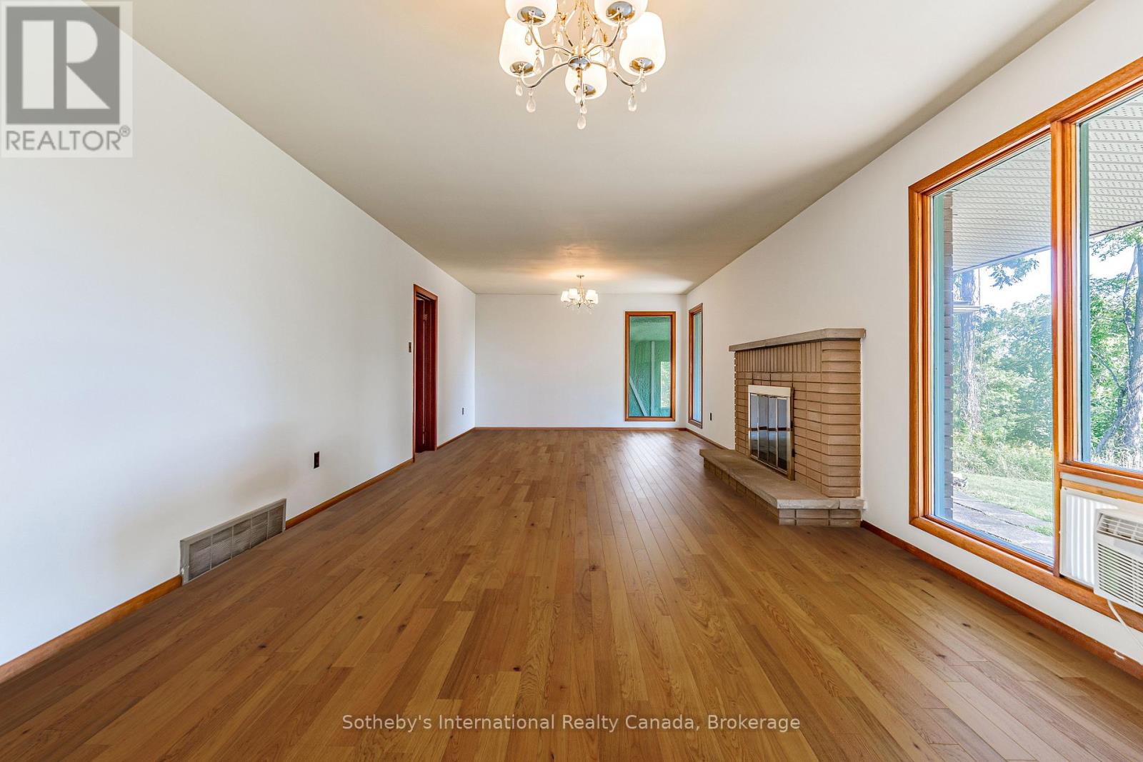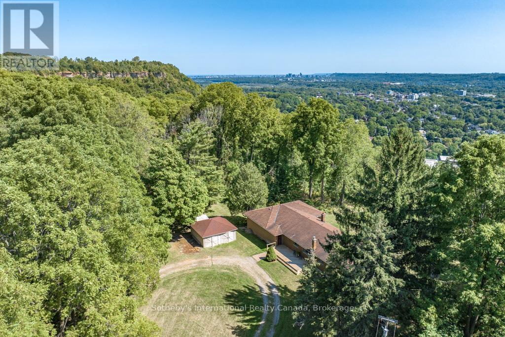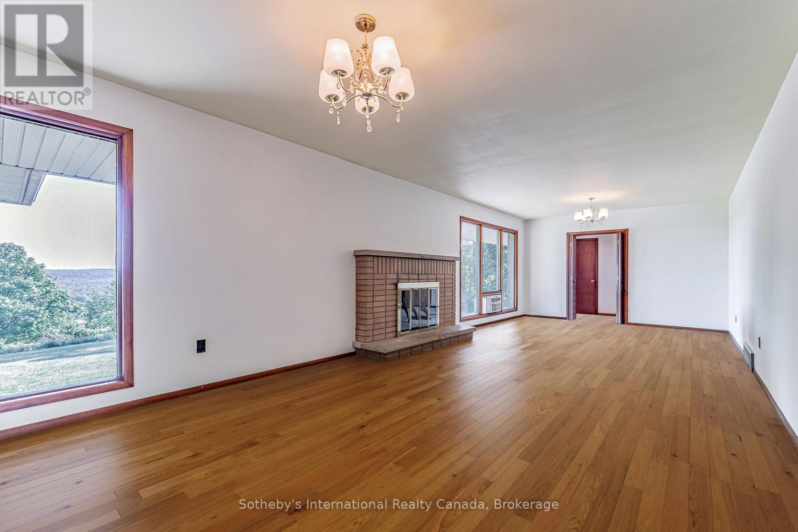 This charming bungalow sits on 17 private acres, surrounded by forest and on the edge of the Niagara Escarpment. The home offers a spacious kitchen with loads of counter space and cupboards, a very spacious breakfast area for a full table and chairs and bright windows overlooking the front of the home and forest. The back of the home offers a very spacious living/dining room, with wood burning fireplace and unparalleled views of the valley and golf course below. There are three spacious bedrooms, a 4 piece bath, a 2 piece bath and laundry room, for convenient one floor living. The lower level is an unspoiled basement, great for storage. This rental is a short term, four month lease, with the potential of month to month. All carpets have been removed. The entire main floor is hardwood and laminate flooring. Please do not enter the property without an appointment. (id:51158)