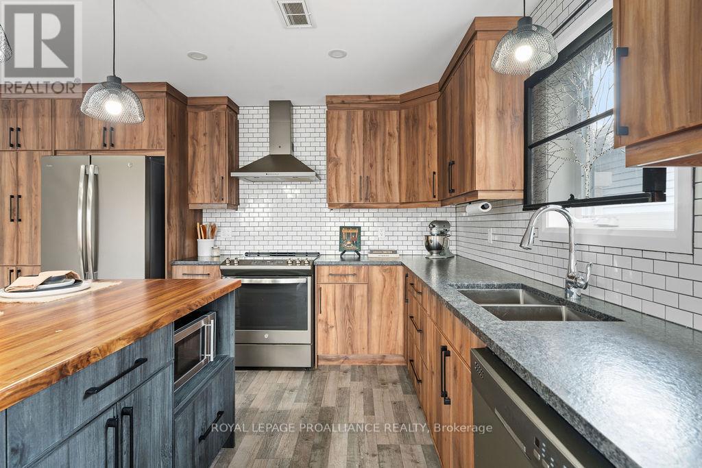Want a new home but love character? This spacious 5 year old home in Potters Creek delivers style and space that is not cookie cutter. The modern exterior with accents of stone draws you in to this fully finished and spacious 3+1 bedroom with an open concept living area, patio doors to two tiered deck with gazebo overlooking the private fenced yard on a large corner lot. Primary suite, large second bedroom and the third is perfect for guests or home office. Room for everyone with the finished lower level featuring double room family space for movie nights, parties + exercise space, a large 4th bedroom, full bath & large utility room with laundry & storage space. This location is a walk to the park for the kids to play or for a game of pickle ball. A family friendly neighbourhood close to schools, parks, shopping, golf courses or the waterfront trail on the Bay of Quinte and just across the bridge from Prince Edward County wineries and beaches along Lake Ontario. Belleville, the friendly city, is the place to be whether you are retiring, starting out, simplifying your life or raising a family. Only minutes to CFB Trenton, VIA rail and easy access to the 401 for commuters. (id:51158)