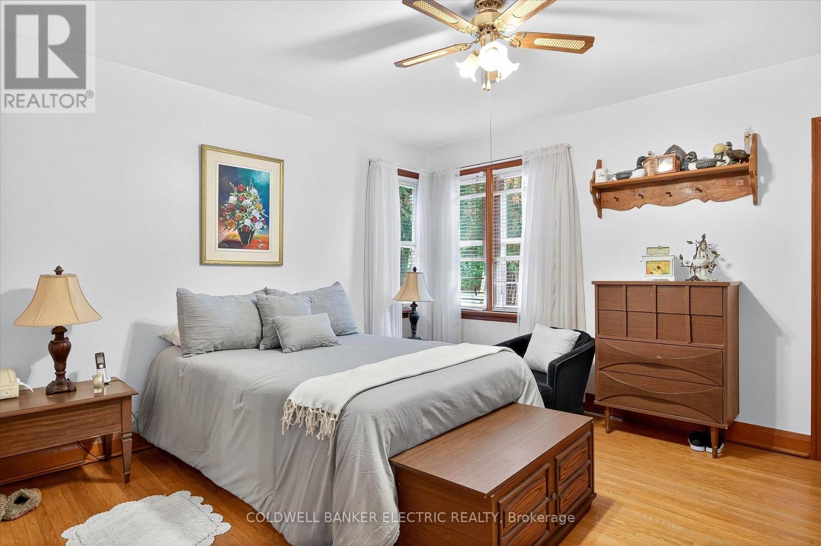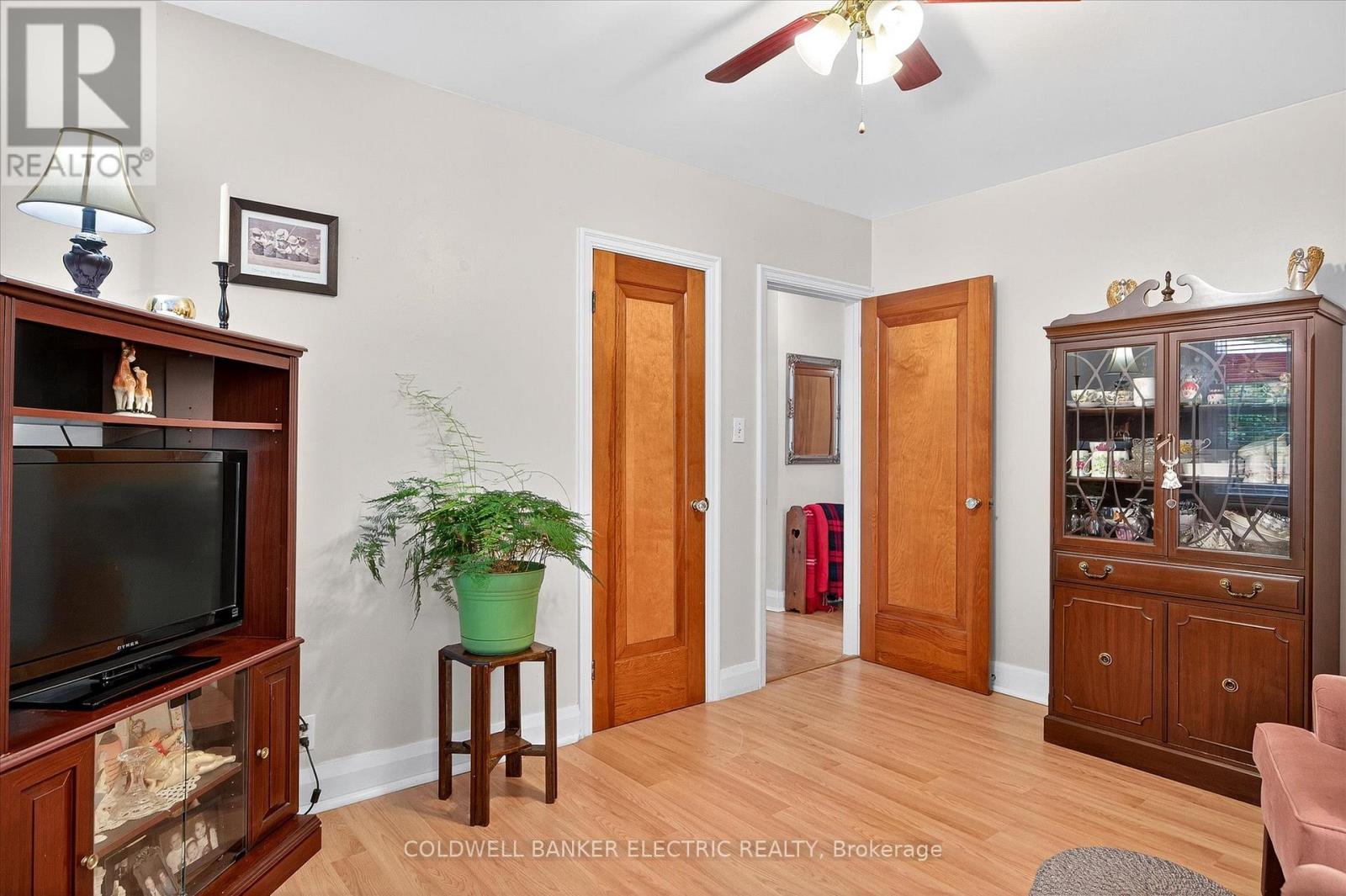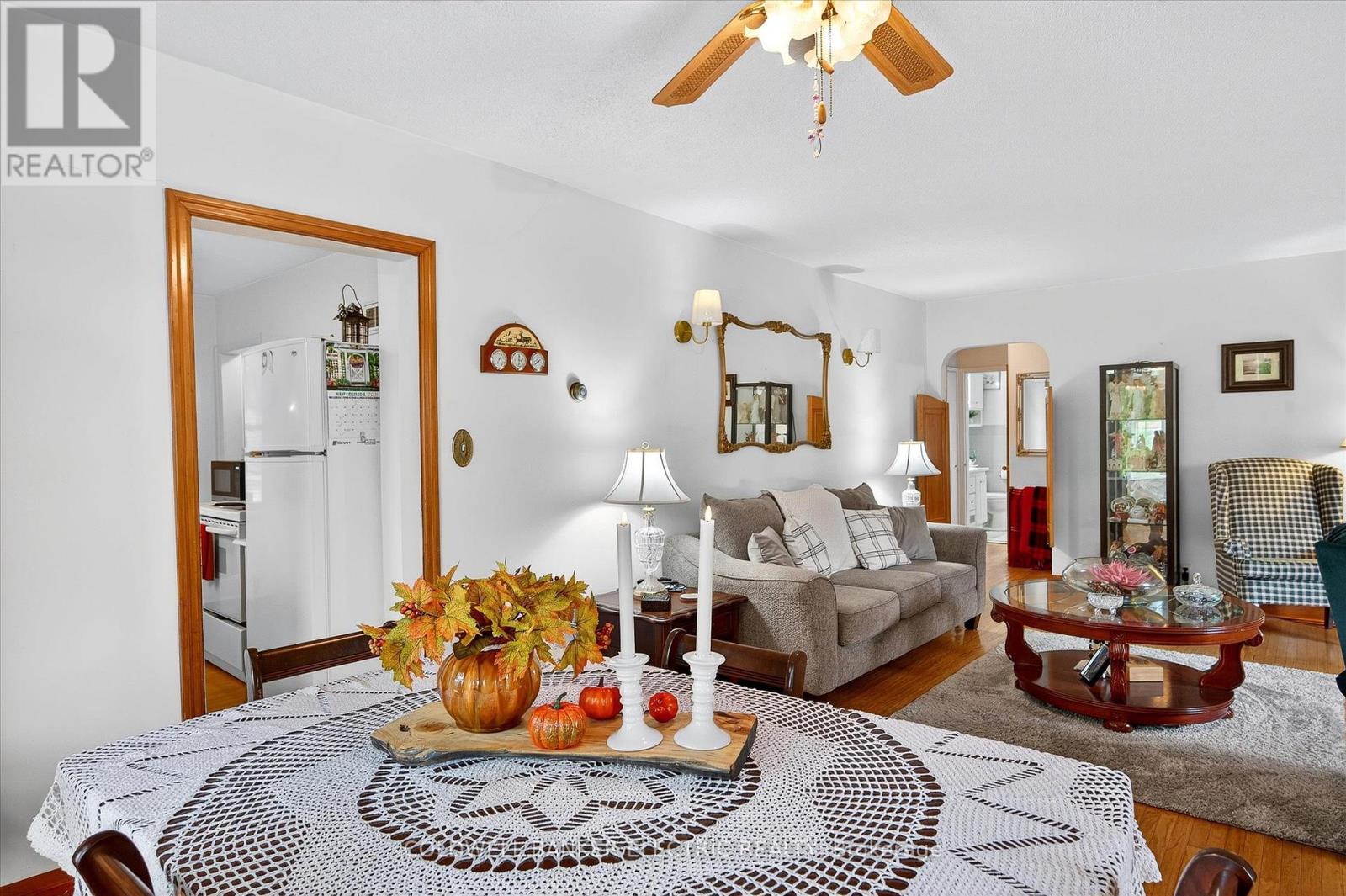 Nestled in a serene, water-adjacent community, this charming bungalow sits on a generous corner lot of approximately 95 feet by 170 feet. The property blends open space with natural beauty, featuring a tiered landscape that includes a large, flat area perfect for gatherings, as well as a wooded second tier for boat and utility trailer storage. This well-maintained bungalow boasts a low-maintenance exterior with a durable metal roof, vinyl siding, and vinyl windows. Inside, you'll find a cozy country kitchen, a comfortable living space with a dedicated dining area, two inviting bedrooms, and a versatile main-floor den or TV room. The basement provides ample storage, laundry facilities, and a convenient toilet beside the laundry tub. Just a short walk away, you'll find the Crowe River and nearby parks that offer endless opportunities for kayaking, fishing, and boating into Crowe Lake. You're also conveniently close to a sports center and the Marmora Pickleball Club, as well as local trails for ATVs and snowmobiling for some outdoor adventures .The property also includes a detached single-car garage with an opener, municipal water and sewer, natural gas heating and air conditioning. This property is ideal for first-time buyers or empty nesters seeking a peaceful, nature-filled lifestyle. (id:51158)