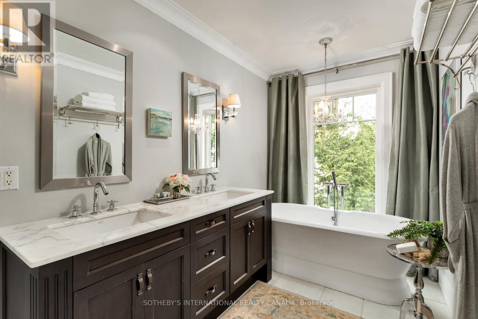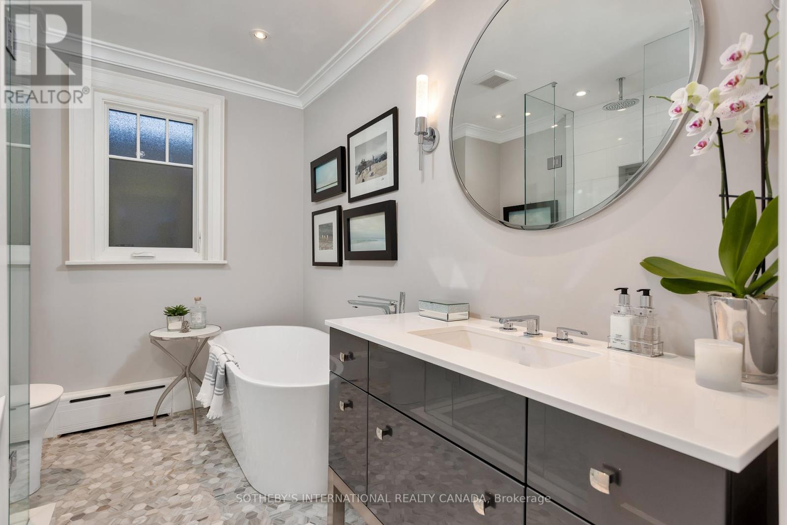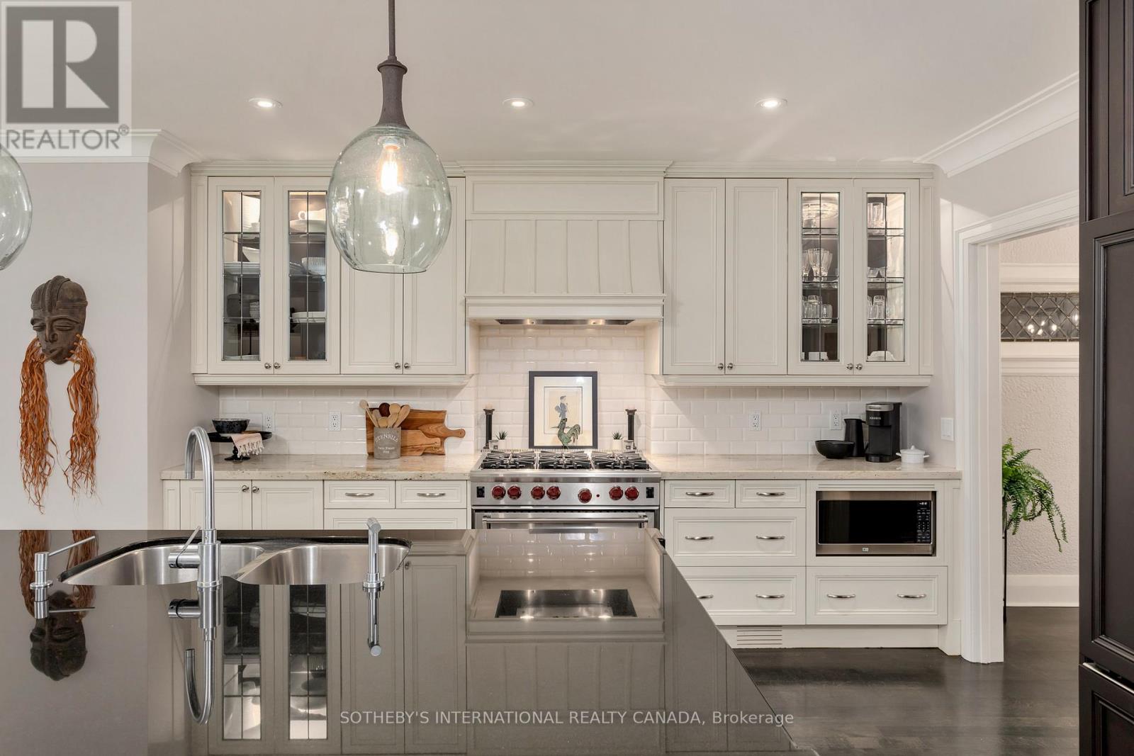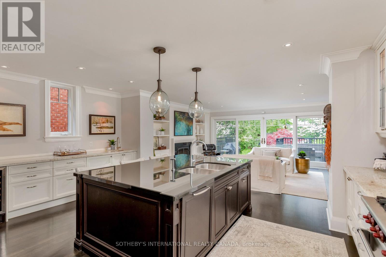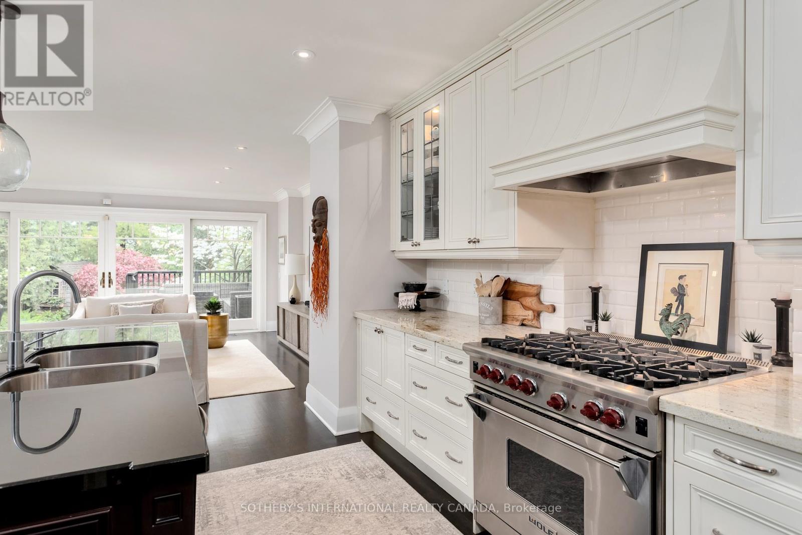 Nestled on a quiet, tree-lined street in the heart of Lawrence Park North, this fully renovated detached home offers timeless elegance paired with modern comfort. Located in the coveted John Wanless school district, this 3+1 bedroom, 3-bath residence is perfectly suited for family living. The gourmet kitchen is a chef's delight, featuring granite countertops, a 6-burner Wolf gas range, built-in dishwasher, and a breakfast bar for casual dining. A custom bar with a wine fridge makes entertaining effortless. Multiple fireplaces bring warmth and character throughout the home. Flooded with natural light, the expansive family room opens to a professionally landscaped garden retreat with a custom deck, landscape lighting, and irrigation system ideal for outdoor entertaining. The luxurious primary suite includes a walk-through closet, spa-inspired ensuite, and the convenience of its own washer/dryer. A finished basement adds versatility with a bedroom, full bath, and flexible space for a nanny suite, guest room, or office. Enjoy the best of city living with Yonge St shops, cafés, and restaurants just steps away, plus quick access to top schools, transit, and Hwy 401. This is a rare opportunity to own a move-in ready gem in one of Torontos most prestigious neighbourhoods. (id:51158)