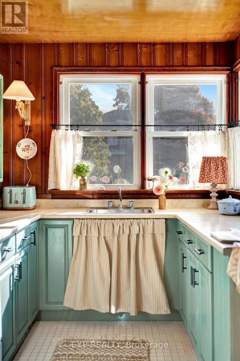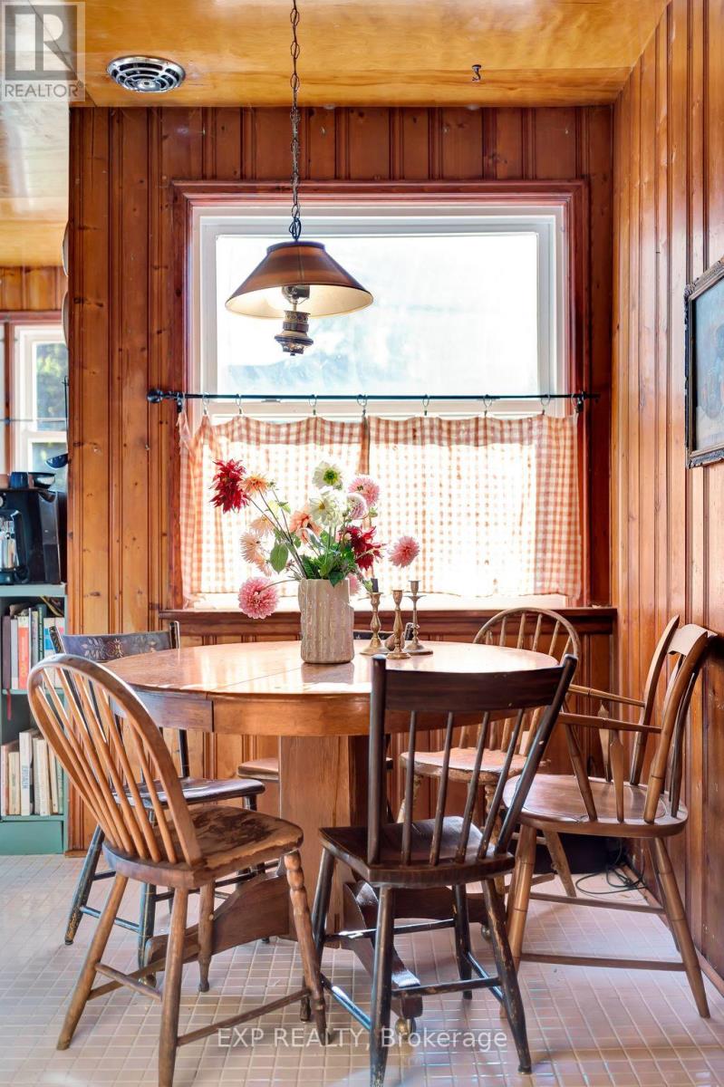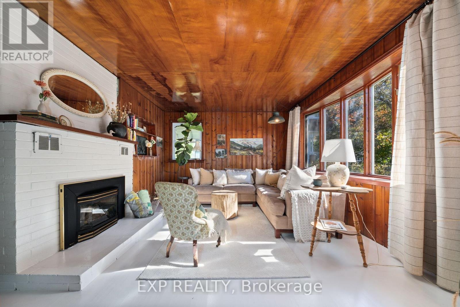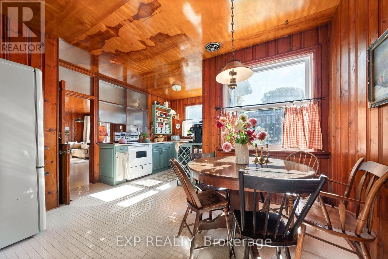 Retro Revival in the Heart of Picton. Step back in time-in the best possible way-with this lovingly restored 1953 bungalow where vintage character meets modern comfort. Freshly updated and brimming with mid-century quirk, this one-level home captures the playful spirit of the era with its warm wood paneling, cheerful details, and inviting layout. Inside, you'll find an airy living/dining space anchored by a gas fireplace with brick surround, and a sunny West-facing eat-in kitchen. The flexible layout includes three bedrooms, with the spacious primary easily doubling as a family room, sunroom or creative studio. Recent updates celebrate the home's original craftsmanship while adding modern convenience, including an updated kitchen and refreshed 3-piece bath. An attached garage with high ceilings offering plenty of storage, and a main level laundry, add practicality to its vintage appeal. Set on a large corner lot with beautiful flower gardens, and a fenced rear yard surrounded by mature trees, this home offers privacy, sunshine, and a dash of nostalgia-all within walking distance to downtown Picton's shops & restaurants, and just steps from PECI - a K-12 school. Whether you're an artist, a design lover, or simply someone who appreciates the charm of a bygone era brought tastefully into the present, this one's ready to make you smile. (id:51158)