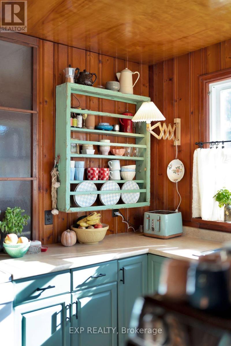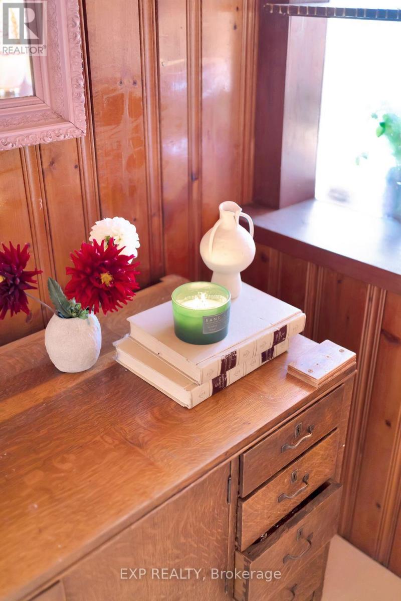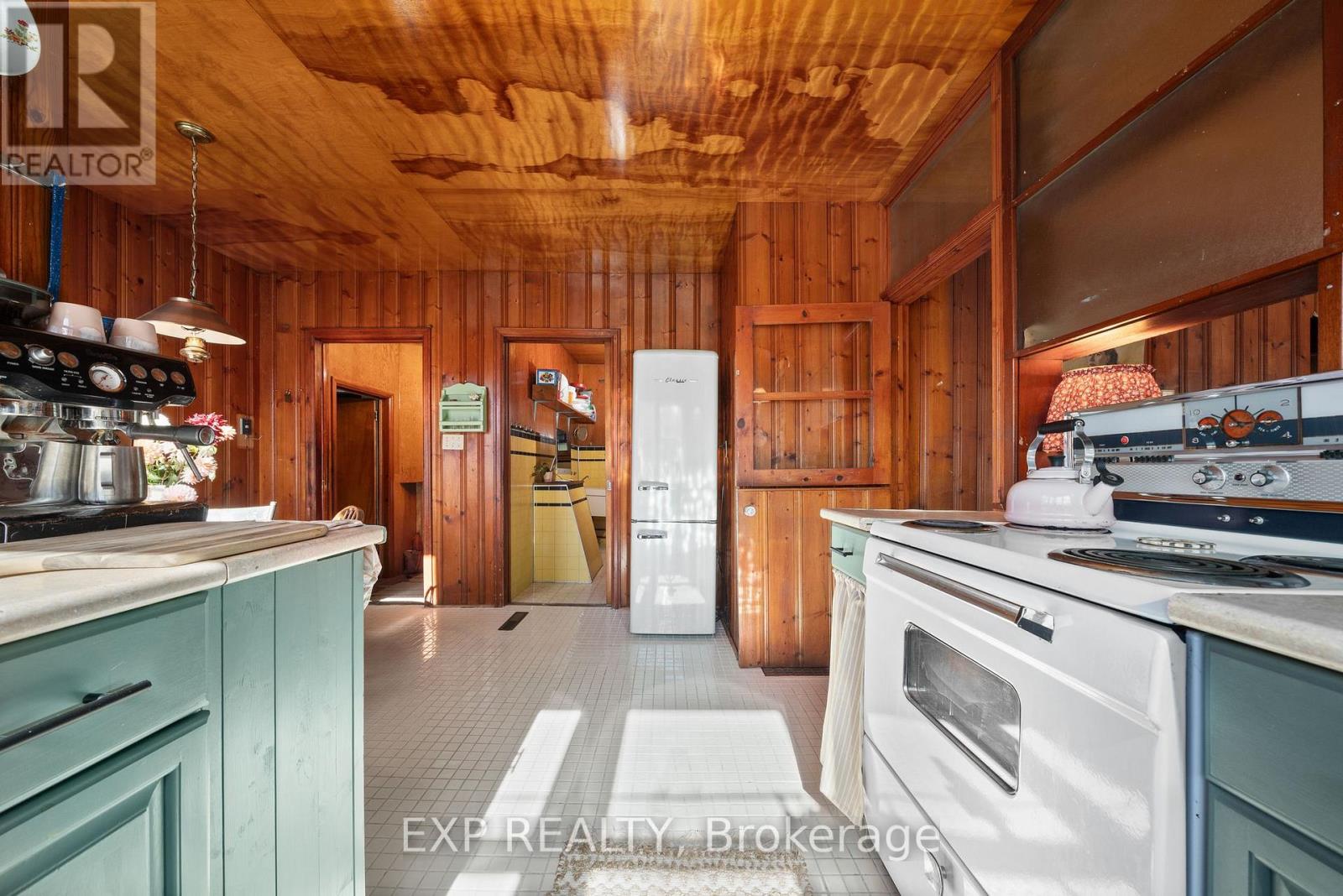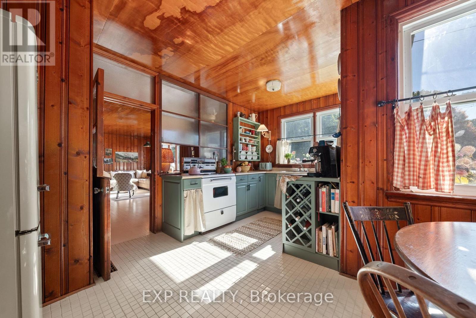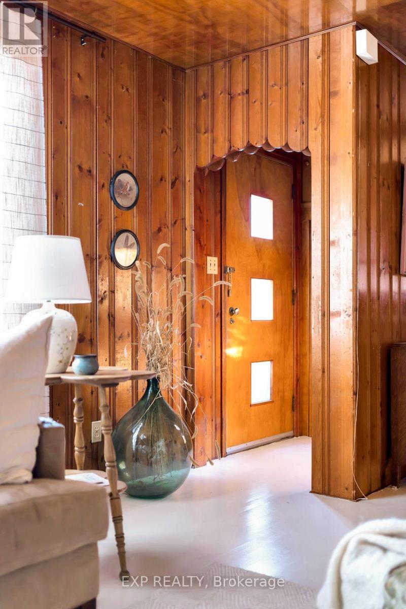 Retro Revival in the Heart of Picton. Step back in time-in the best possible way-with this lovingly restored 1953 bungalow where vintage character meets modern comfort. Freshly updated and brimming with mid-century quirk, this one-level home captures the playful spirit of the era with its warm wood paneling, cheerful details, and inviting layout. Inside, you'll find an airy living/dining space anchored by a gas fireplace with brick surround, and a sunny West-facing eat-in kitchen. The flexible layout includes three bedrooms, with the spacious primary easily doubling as a family room, sunroom or creative studio. Recent updates celebrate the home's original craftsmanship while adding modern convenience, including an updated kitchen and refreshed 3-piece bath. An attached garage with high ceilings offering plenty of storage, and a main level laundry, add practicality to its vintage appeal. Set on a large corner lot with beautiful flower gardens, and a fenced rear yard surrounded by mature trees, this home offers privacy, sunshine, and a dash of nostalgia-all within walking distance to downtown Picton's shops & restaurants, and just steps from PECI - a K-12 school. Whether you're an artist, a design lover, or simply someone who appreciates the charm of a bygone era brought tastefully into the present, this one's ready to make you smile. (id:51158)