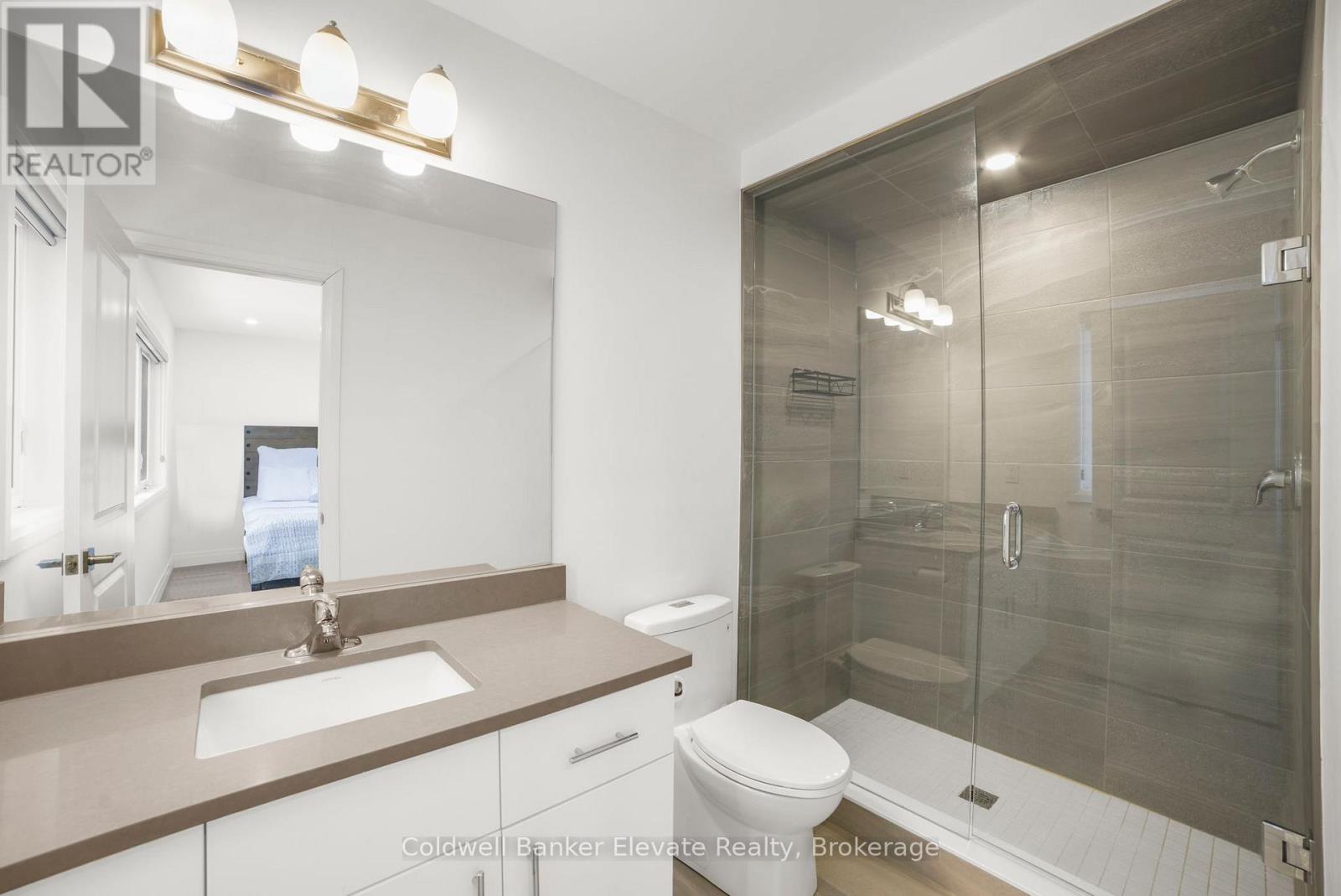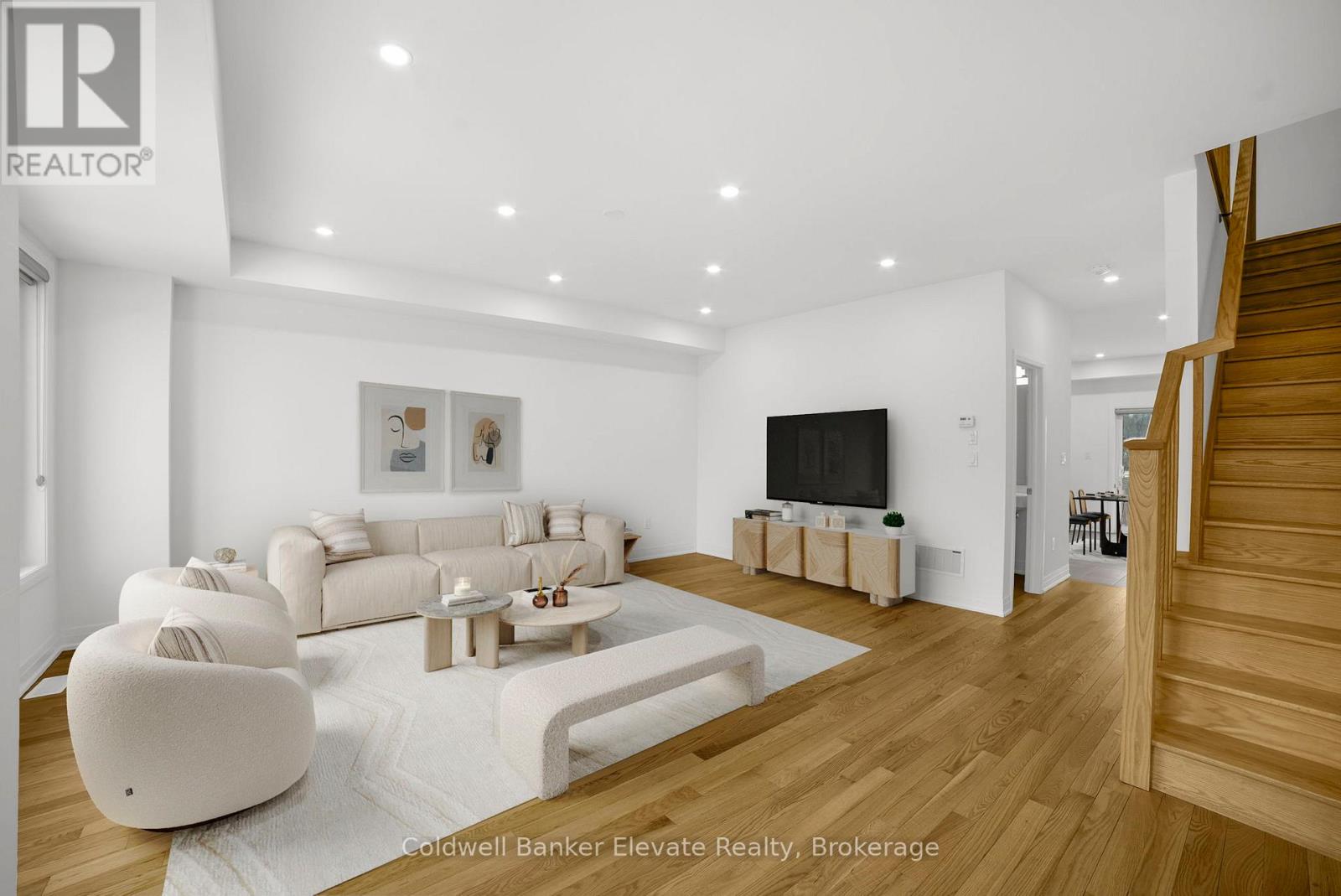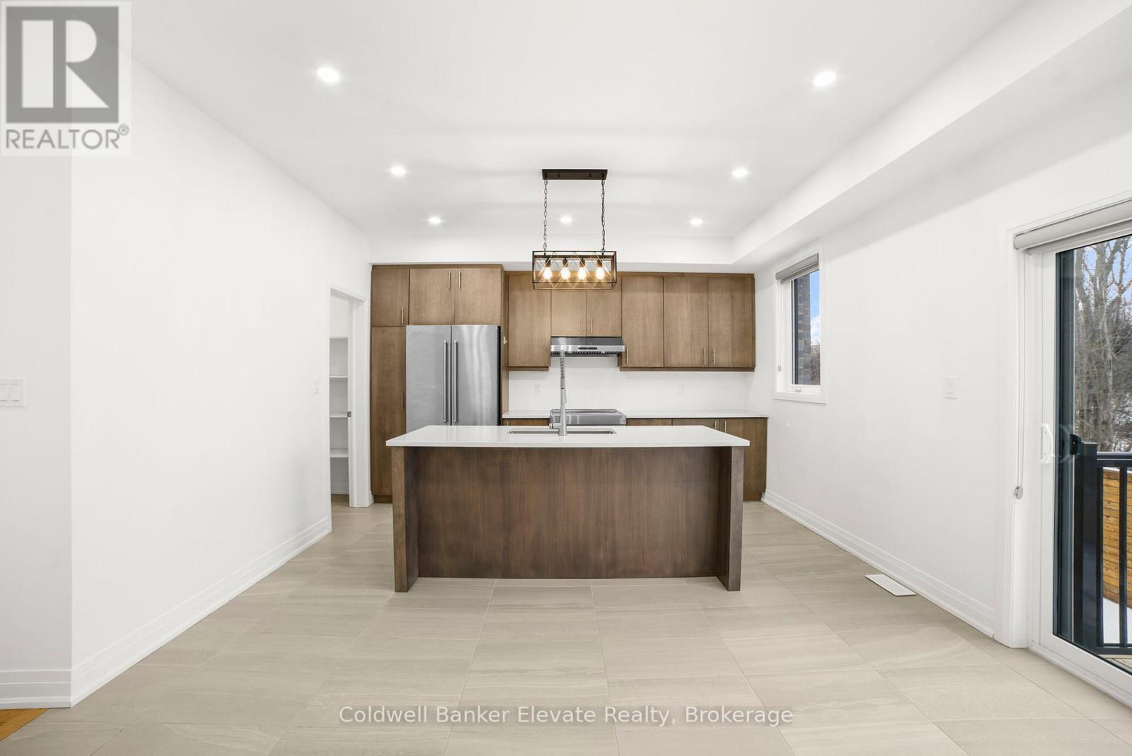 Step into 42 Windtree Way, where modern luxury meets the serenity of small town charm. Located in Georgetown's coveted Trafalgar Square neighborhood, this like-new freehold townhome offers nearly 2,000 square feet of sun-drenched living space, perfectly positioned directly across from a brand-new park and the lush greenery of the Chris Walker Trail. You will find high end, modern finishes throughout the home, including quartz countertops, stainless steel appliances, upgraded pot lights, and Zebra blinds throughout. The ground level offers a versatile rec room with walk-out patio doors to the backyard, direct access to the garage, as well as a powder room. The main level offers a spacious open concept living area with large windows flooding the space with natural light, an upgraded eat-in kitchen with a large walk-in pantry, Kitchen Aid appliances, farmhouse sink and large center island. Step right onto the balcony, overlooking the backyard and greenspace - no neighbours at the back! Upstairs, you find a generous primary bedroom with a beautiful view of nature, a walk-in closet and 3 piece ensuite with extra large glass shower. The upper level is complete with two additional bedrooms, the main bathroom, convenient upper level laundry & linen closet. Beyond your front door, you are minutes from the historic charm of Downtown Main Street, the Georgetown Fairgrounds, the hospital, shopping and more. For commuters, seamless access to the 401 ensures the perfect balance between small-town tranquility and urban accessibility. (id:51158)