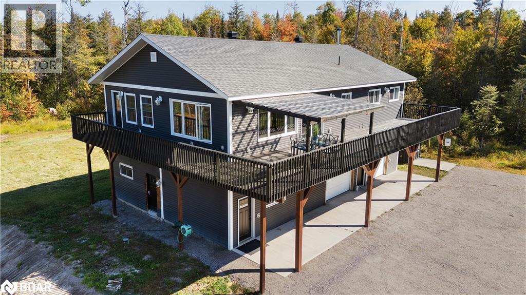 Country Charm Meets Modern Luxury! Welcome to this gorgeous, fully renovated detached home set on 2 acres of peaceful countryside - the perfect blend of comfort, style, and functionality!The oversized, fully insulated 4-car garage/man cave is every enthusiast's dream - complete with heat, a 3-piece bathroom, and laundry rough-ins, plus plenty of space for vehicles, tools, or hunting gear.Inside, the main floor offers in-law suite potential with a separate entrance bachelor featuring its own 3-piece bath, ideal for extended family or guests.Upstairs, enjoy a bright open concept layout perfect for entertaining, with tons of natural light and a huge wrap-around deck to take in the scenic views. The spacious primary suite boasts pot lights, balcony access, and serene vibes for your private retreat.The renovated kitchen shines with quartz countertops, stainless steel appliances, and a gas stove - a chef's delight!Plus, you're in close proximity to snowmobile and ATV trails, making this property a true outdoor enthusiast's paradise. A one-of-a-kind property combining modern updates, multi-generational living, and country adventure - ready for you to move in and make it your own (id:51158)