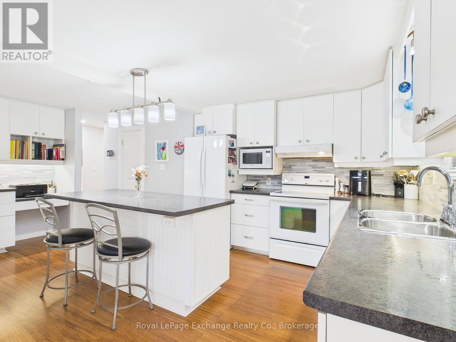 This well-maintained 3-bedroom, 2-bathroom bungalow offers over 2,100 sq. ft. of finished living space on a beautifully private 220-foot deep lot. Ideal for first-time buyers or downsizers, the home blends comfort, practicality, and charm throughout. The spacious kitchen features a large island and connects seamlessly to the bright sunroom addition, creating the perfect setting for morning coffee or quiet relaxation. The lower level expands the living area with a versatile family room and additional space for hobbies, guests, or a home office. An attached single-car garage includes workshop space and a 60-amp panel, providing excellent utility for the handyman or DIY enthusiast. The deep backyard offers a private outdoor retreat with ample room for gardens, entertaining, or simply enjoying the peace and quiet. Located in a desirable area of Kincardine, close to parks, schools, and the shoreline, this property offers the best of small-town living with modern convenience. (id:51158)
