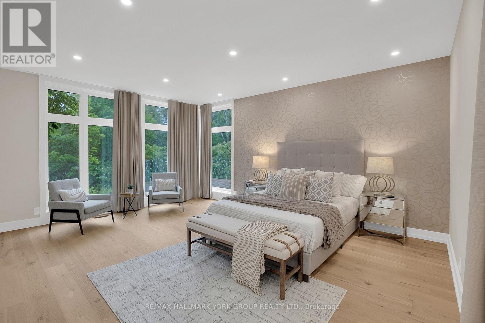 Welcome to an extraordinary estate tucked away behind welcoming stone pillars and a winding forested driveway! This is a work of art designed by the legendary Grant Whatmough and Gardiner Cowan, with distinctive Frank Lloyd Wright style of Architecture. This iconic Mid-Century Modern residence is gracefully integrated into 32 acres of majestic land, where nature and architecture exist in perfect harmony. From the moment you approach the stunning entry door, you're drawn into a world of timeless design and serene beauty. This home is lovingly maintained with extensive renovations, while preserving the character and soul of this home, Including Floor-to-ceiling windows bring the outdoors in, Stone fireplaces indoor and out, original stone walls and impressive wood beams throughout. Spanning approximately 5,000 sq ft, the main residence features 6 bedrooms, 7 bathrooms, an office, a meditation room, and a separate nanny suite. Multiple terraces and decks surround the home, offering breathtaking views of the land, and a tranquil lake creating the feel of a private luxury retreat. This property features a rare second home- fully renovated and approximately 3,500 sq ft-offering 3 bedrooms, 4 bathrooms, and a massive loft space! This second home is ideal for an extended family! There is an additional Yoga studio with an outdoor shower! a Detached garage/ workshop, a charming cedar Cabin with Sauna and Cold plunge, a Covered cabana for entertaining or relaxing on the property. This is a once-in-a-lifetime opportunity to own an architecturally significant estate in the prestigious King Township. With unmatched privacy, lush surroundings, and two beautifully appointed homes, this property is truly a timeless work of art. Don't Miss it! (id:51158)