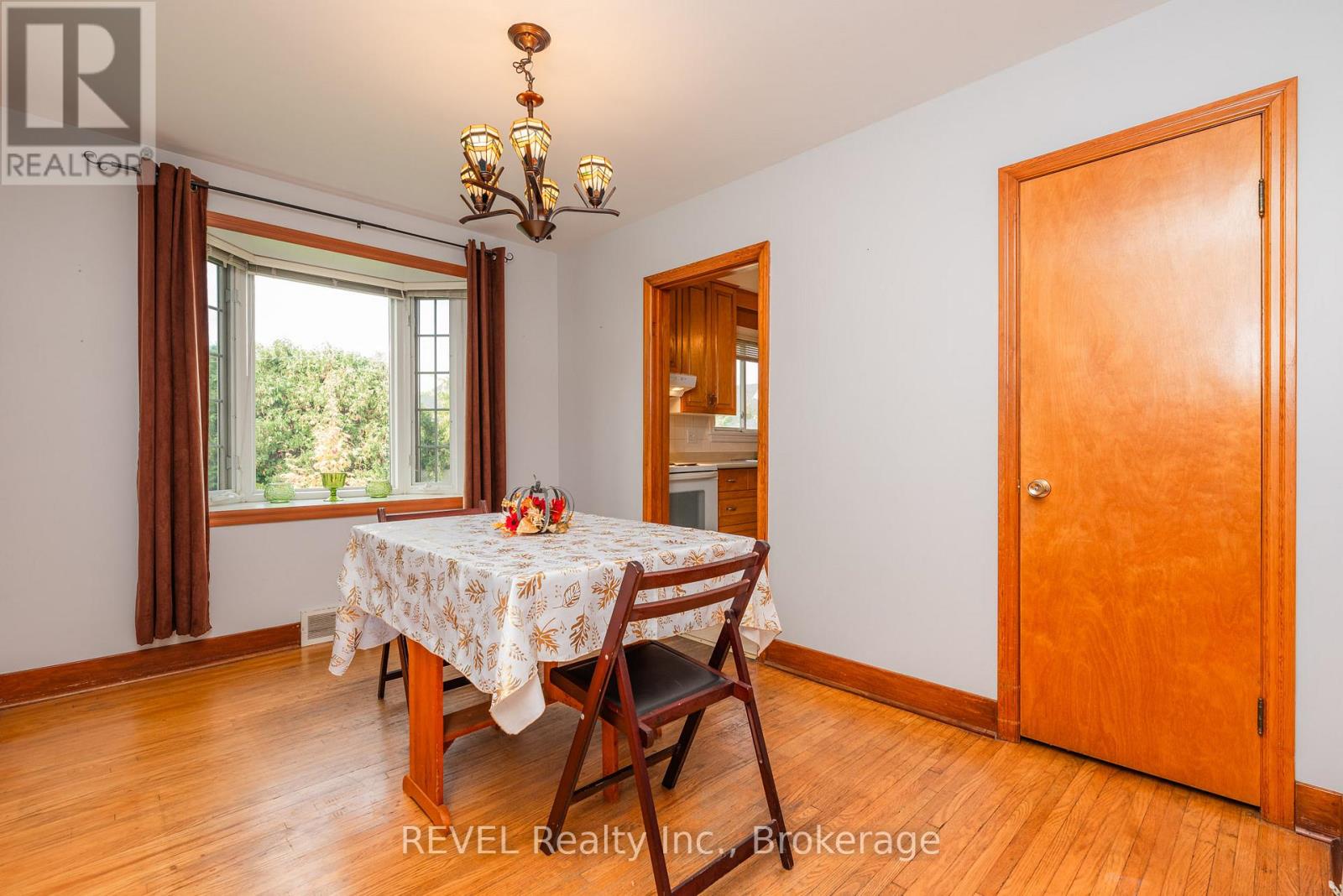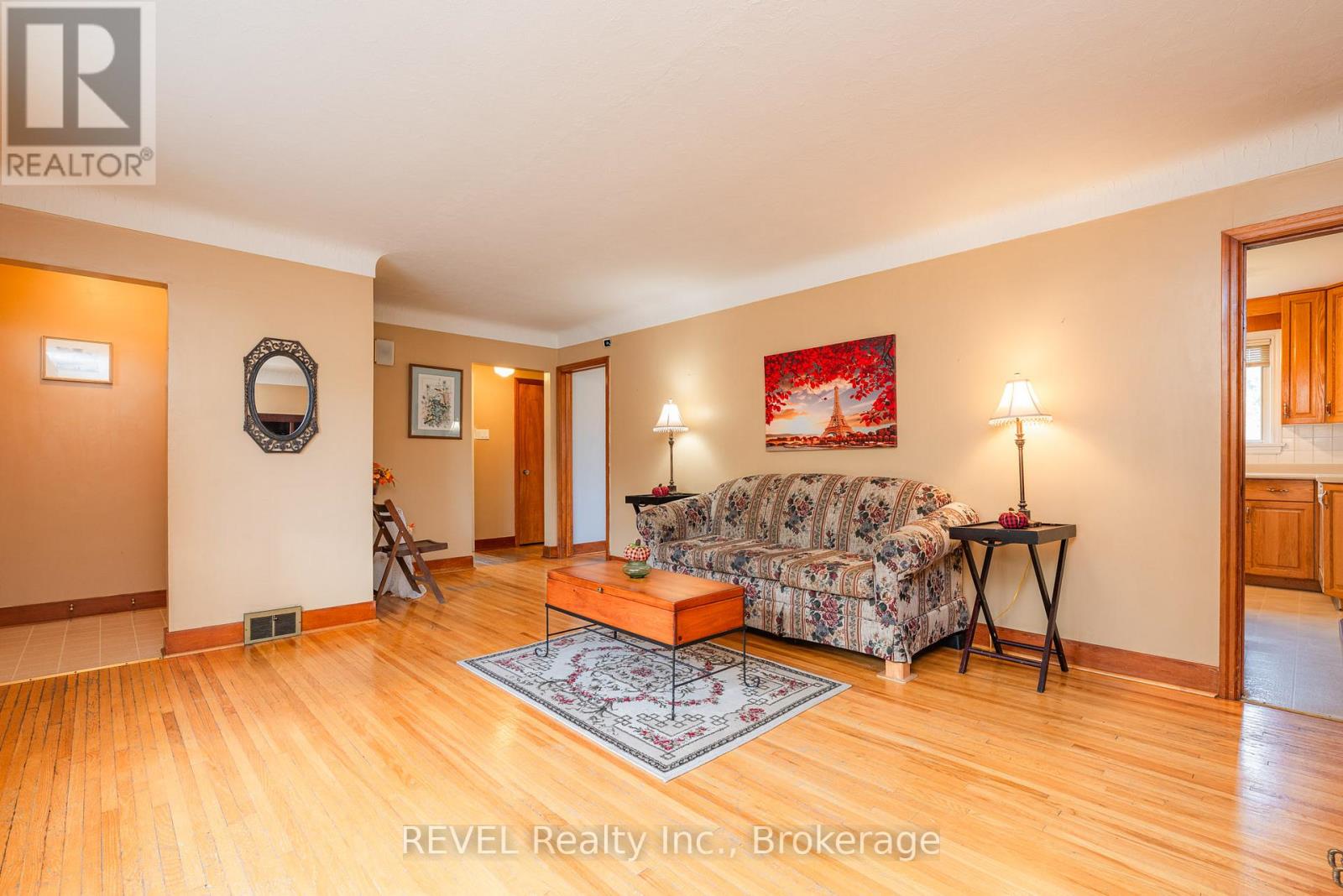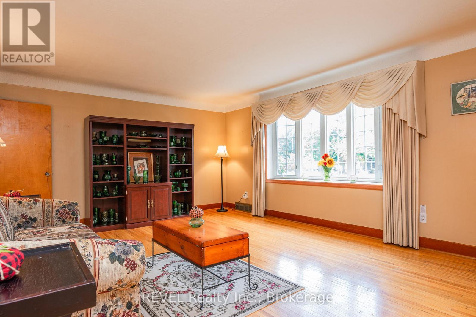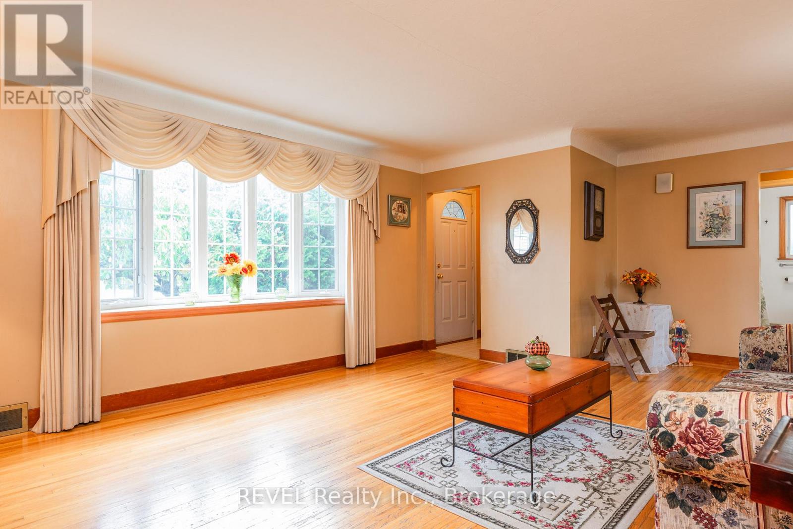This solid brick, north-end bungalow was built in 1953 and offers a single attached garage which has a ceiling height of 11 feet! There's no need to stress about visitor parking because the driveway could hold approximately six cars. The front lawn is graced with a magnificent queen of a cherry tree! When entering the front door, you'll be immediately impressed by the size of the front living room which showcases a large picture window and original hardwood floors. The kitchen is located at the back of the house with views of the backyard, and the convenient main floor laundry is located in the kitchen as well. Off the kitchen is a dining room with a bay window looking out to the backyard, this room in the past was designated as a bedroom but modern living calls for it to be a dining room. The bay window could be converted to a door to have direct access to the backyard from the dining room. On the main floor you also find two very spacious bedrooms with original hardwood floors and the main floor four-piece bathroom which offers a combination shower and soaker tub! The lower level has a gas fireplace/stove and is very spacious, perfect for entertaining! The glamorous original wet bar is in excellent condition and would make a perfect centerpiece for hosting cocktail parties! This lower level has the space and potential to make a great in-law suite or perhaps you wish to cherish the past and enjoy the space as is. In the basement there is also a cute and unique 3-piece bathroom, a workshop space that can be curtained off or a sliding door system could be added, a coat closet, a walk-in storage closet and the utility room with laundry hookups in case you prefer to have the laundry downstairs and the forced air gas furnace which was installed in 2022. The generous sized lot is 63.50 ft x 125 ft and the backyard is fully fenced. The homes location is nice and central, close to all the city conveniences! (id:51158)