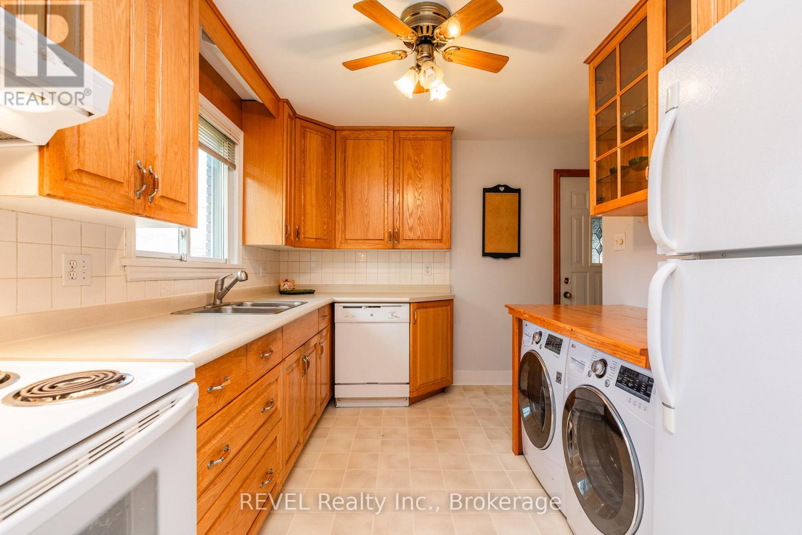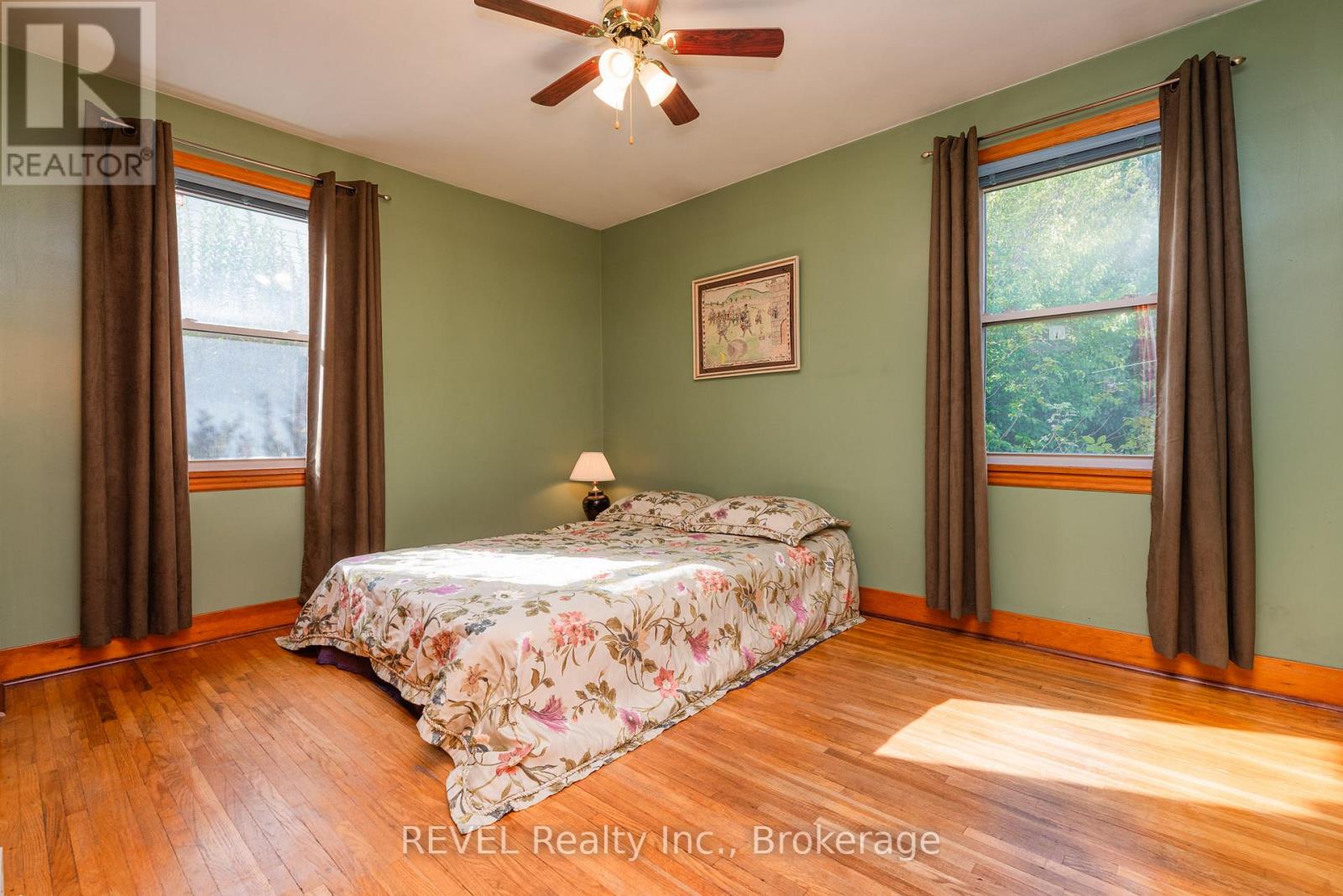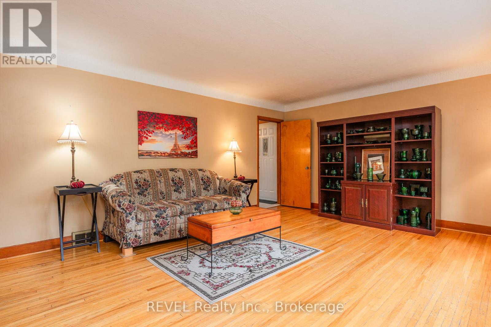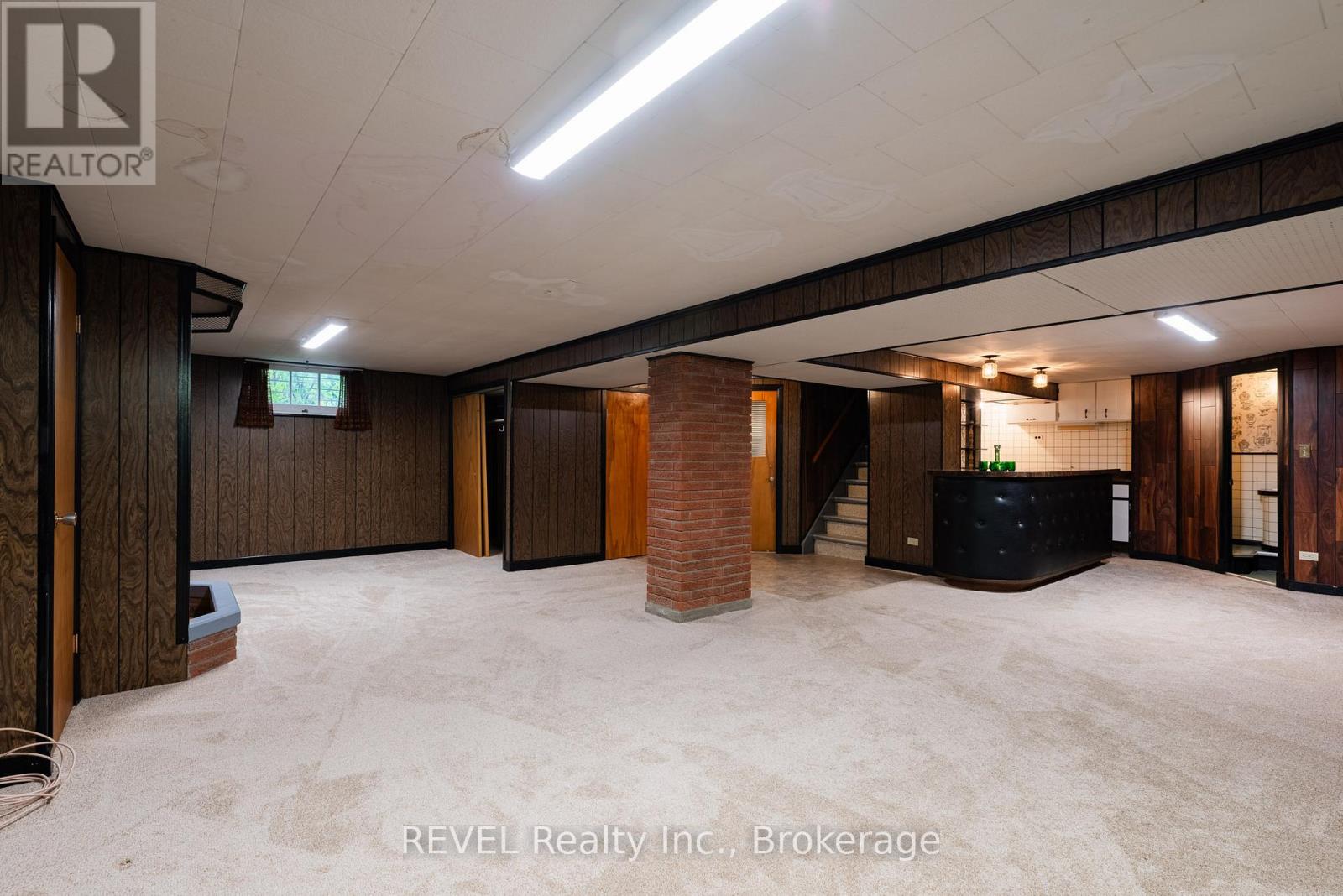 This solid brick, north-end bungalow was built in 1953 and offers a single attached garage which has a ceiling height of 11 feet! There's no need to stress about visitor parking because the driveway could hold approximately six cars. The front lawn is graced with a magnificent queen of a cherry tree! When entering the front door, you'll be immediately impressed by the size of the front living room which showcases a large picture window and original hardwood floors. The kitchen is located at the back of the house with views of the backyard, and the convenient main floor laundry is located in the kitchen as well. Off the kitchen is a dining room with a bay window looking out to the backyard, this room in the past was designated as a bedroom but modern living calls for it to be a dining room. The bay window could be converted to a door to have direct access to the backyard from the dining room. On the main floor you also find two very spacious bedrooms with original hardwood floors and the main floor four-piece bathroom which offers a combination shower and soaker tub! The lower level has a gas fireplace/stove and is very spacious, perfect for entertaining! The glamorous original wet bar is in excellent condition and would make a perfect centerpiece for hosting cocktail parties! This lower level has the space and potential to make a great in-law suite or perhaps you wish to cherish the past and enjoy the space as is. In the basement there is also a cute and unique 3-piece bathroom, a workshop space that can be curtained off or a sliding door system could be added, a coat closet, a walk-in storage closet and the utility room with laundry hookups in case you prefer to have the laundry downstairs and the forced air gas furnace which was installed in 2022. The generous sized lot is 63.50 ft x 125 ft and the backyard is fully fenced. The homes location is nice and central, close to all the city conveniences! (id:51158)
