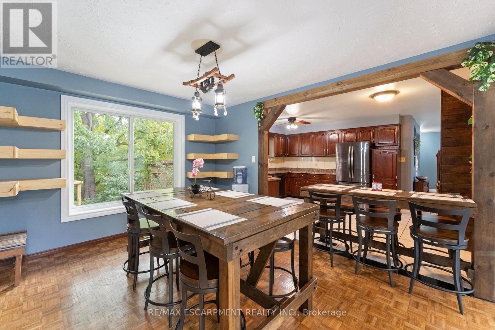 A rare mix of space, flexibility, and natural beauty. Featuring 6 bedrooms, 3.5 bathrooms, and 2 main floor kitchens, this home is well suited for extended family or in-law potential. Skylights bring in abundant light, while the layout provides plenty of room to adapt to your needs. The ravine lot is the highlight, with a huge backyard backing onto green space where deer and foxes are often seen. Multiple decks make it easy to relax outdoors, and the tree house adds a playful touch. Set in a family-friendly neighbourhood close to schools, parks, and transit, this home offers privacy without giving up convenience. (id:51158)