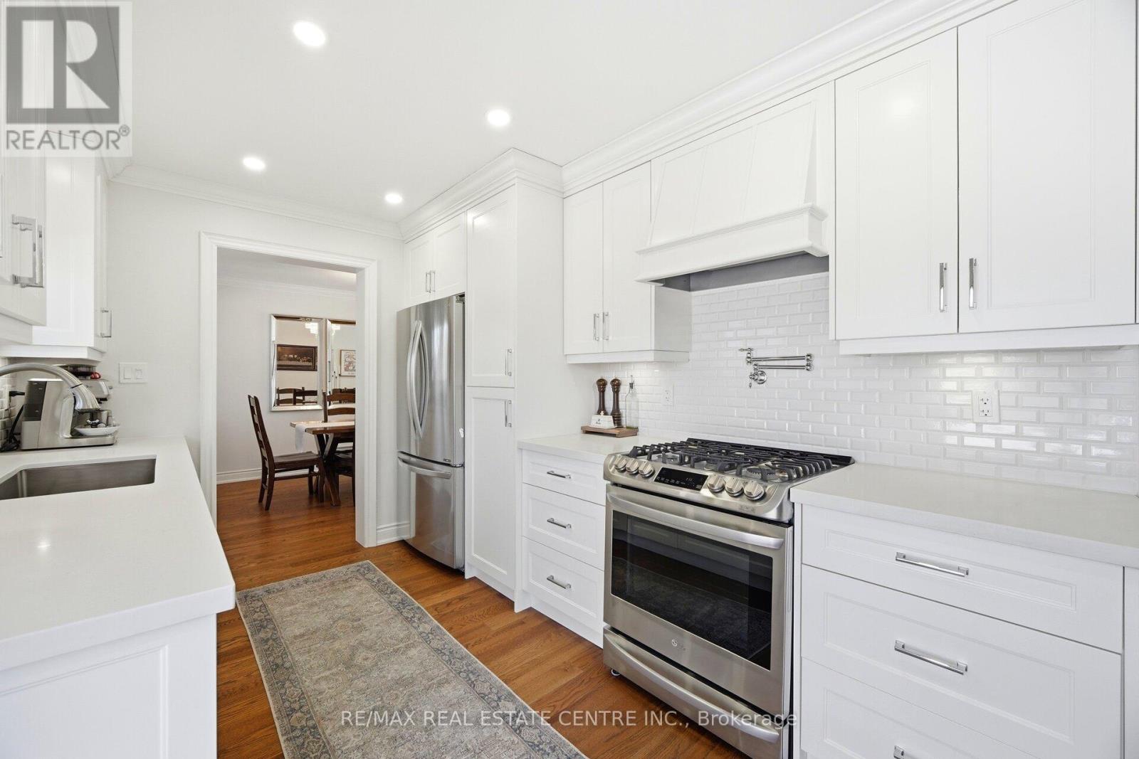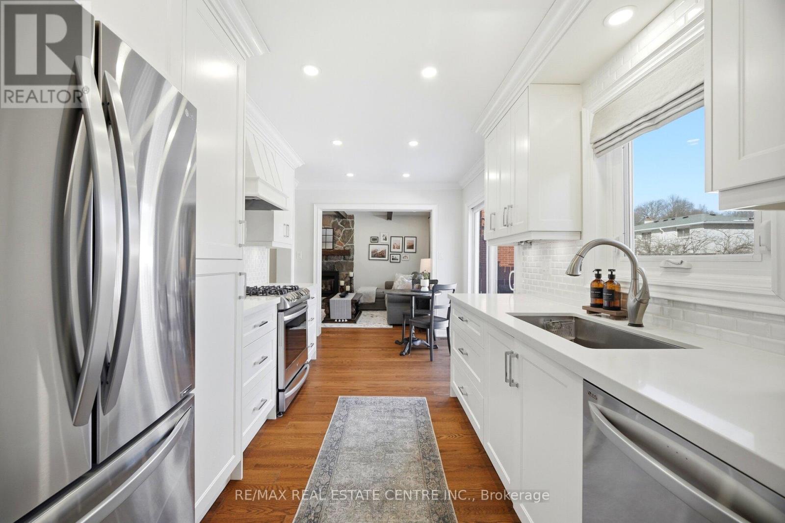 Nestled on a quiet street in the prestigious community known as Rockwood Village, 4253 Marblethorne Crt. is a must see. One of Mississauga's most desirable east-end neighborhoods this beautifully re-imagined 4 Bedroom/Detached home showcases a complete, top-to-bottom renovation with exceptional attention to detail. Every element of the home has been thoughtfully updated to offer refined style & modern comfort. The designer kitchen features quartz counter-tops, S/S Appliances, seamlessly opening to the inviting family room with rich hardwood floors, a striking stone gas fireplace, an elegant beamed ceiling, & custom built cabinetry. In conjunction with a bright and spacious living/dining Rm combination, the main floor creates a warm yet sophisticated atmosphere where quality meets functionality. The second floor offers an elegant & inviting retreat, featuring 4 beautifully appointed bedrooms designed for comfort and relaxation. Each room provides generous space & natural light, creating a warm and cozy atmosphere throughout. The serene primary suite serves as a private haven, complete with a stunning three-piece en-suite & W/I Closet. The finished basement offers a versatile extension of the home, featuring a spacious rec room along with a dedicated playroom & 2-pc en-suite. With ample room & flexible layout options, there is obvious potential to create a fifth bedroom, making this lower level both practical and full of possibility. Outdoors, a private backyard sanctuary awaits, framed by mature trees and professional landscaping. This family friendly community is known for its great parks, the Etobicoke Creek Trail system, top-rated schools, everyday amenities just moments away, along with a short drive to HWY 401/403/427/410 & the DIXIE GO. If you are looking for a home, where neighbors connect, children thrive, & families grow... 4253 Marblethorne Crt. may be the home for you. (id:51158)