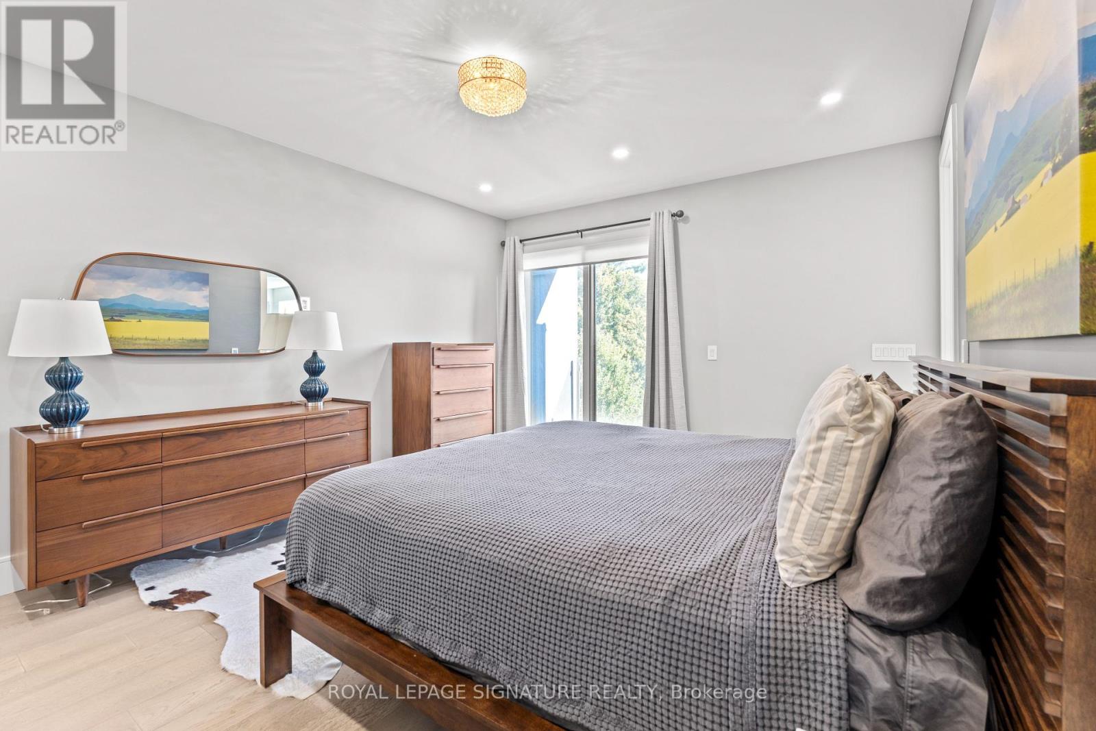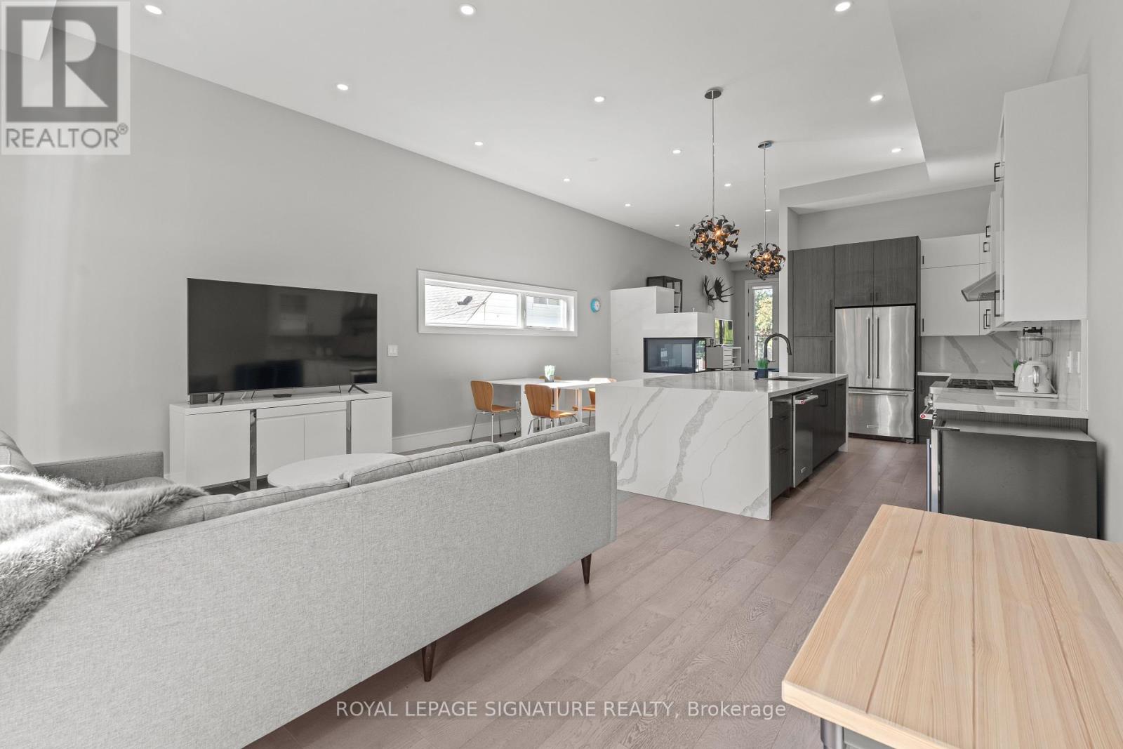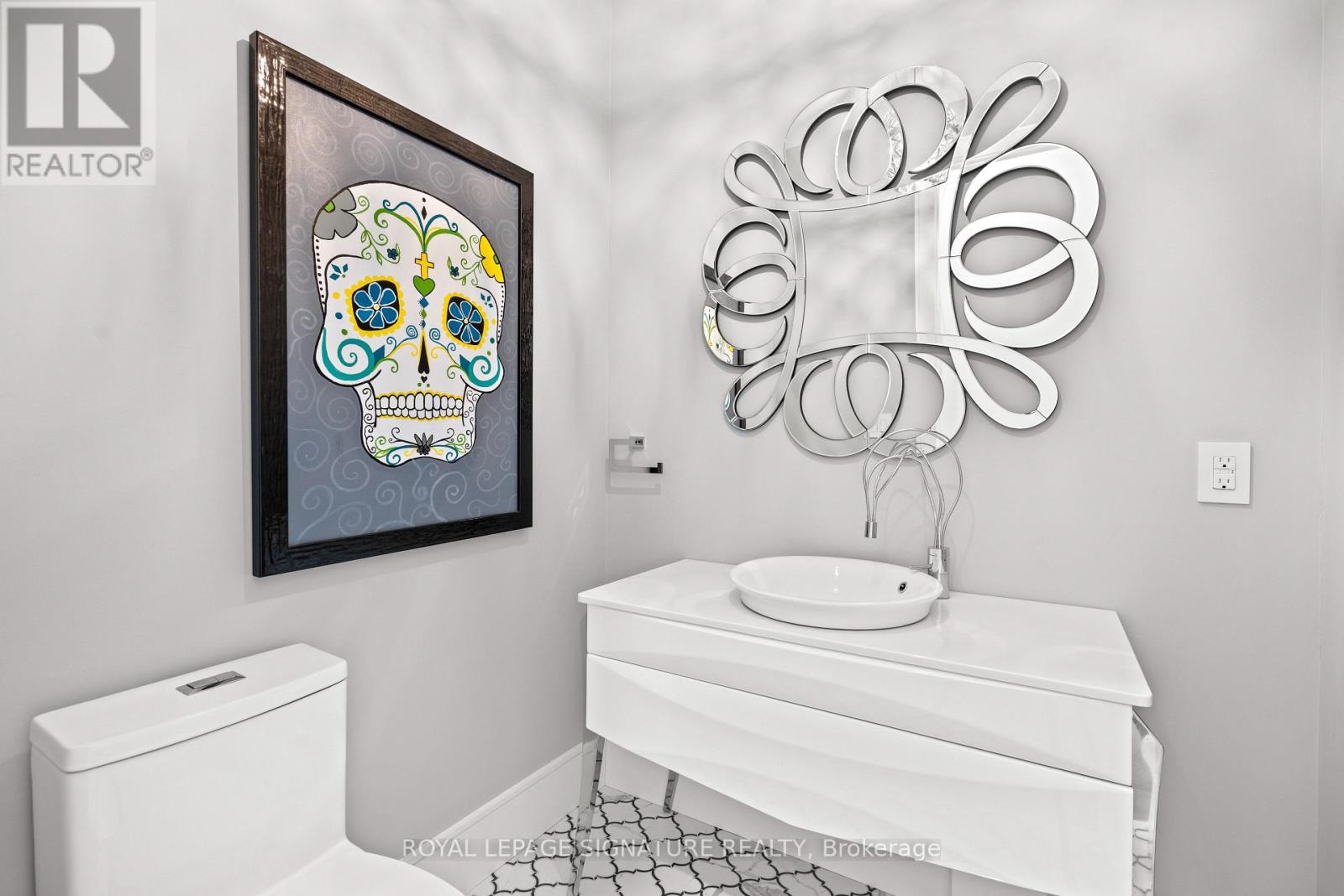 Stunning contemporary luxury home showcasing top-of-the-line custom design and high-end finishes throughout. This residence features wide-plank hardwood floors, 12 ft ceilings, and an open-concept layout that seamlessly blends the kitchen, dining, and family room areas. The chefs kitchen is equipped with a custom design, luxury appliances, and an impressive 10 ft island, with a walkout to a spacious deck and private backyard, perfect for entertaining. Elegant skylights and a striking two-way gas fireplace add warmth and natural light to the main living areas. The primary suite offers a private balcony, custom walk-in closet with built-ins, and a spa-inspired ensuite bathroom. The lower level is finished with heated polished concrete floors, full walkout, and ample space for recreation or a home gym. Conveniently located near top-rated schools, parks, golf courses, shops, transit, the Lakeshore, and major highways, this home delivers both luxury and lifestyle. (id:51158)