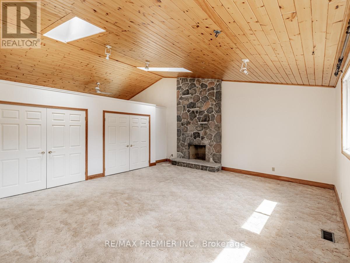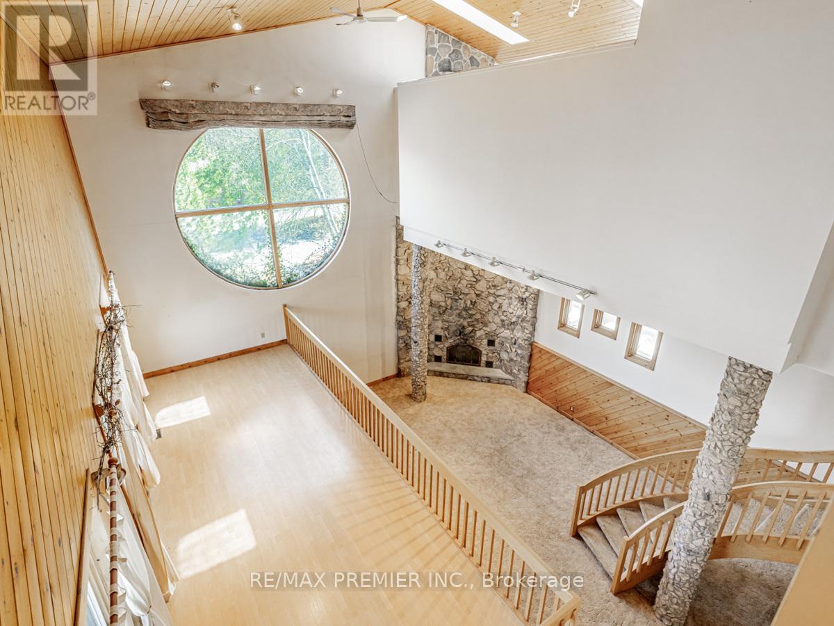 Nestled and tucked away, this 5 acre estate home is over 5000 sq feet and surely to impress. Complete privacy invites you to feel like you are away at the cottage, when you are only 7 min to Hwy 404. There is a large heated workshop with 4 stalls ideal for those looking for an equestrian focused property or a cottage feel near the city with an oil furnace. The home has 4 spacious bedrooms including one bedroom with walkout to stunning sun room to enjoy your morning cup of coffee or take in the beauty that surrounds you. Gourmet kitchen with built in appliances, breakfast room combined with mezzanine dining perfect for entertaining. Great room with adjacent room that can be used as another bedroom or office. Plenty of natural light throughout the home. Large swimming pool to enjoy summer days. 4 wood fireplaces to keep you warm in the colder months. High efficiency boiler. Primary bedroom features 4 pc ensuite with steam shower built in. Finished basement with den, common room, and 2 additional bedrooms. Plenty of storage space throughout. The property comes with a self contained coach house needing finishing touches, perfect for nanny quarters or income potential. (id:51158)