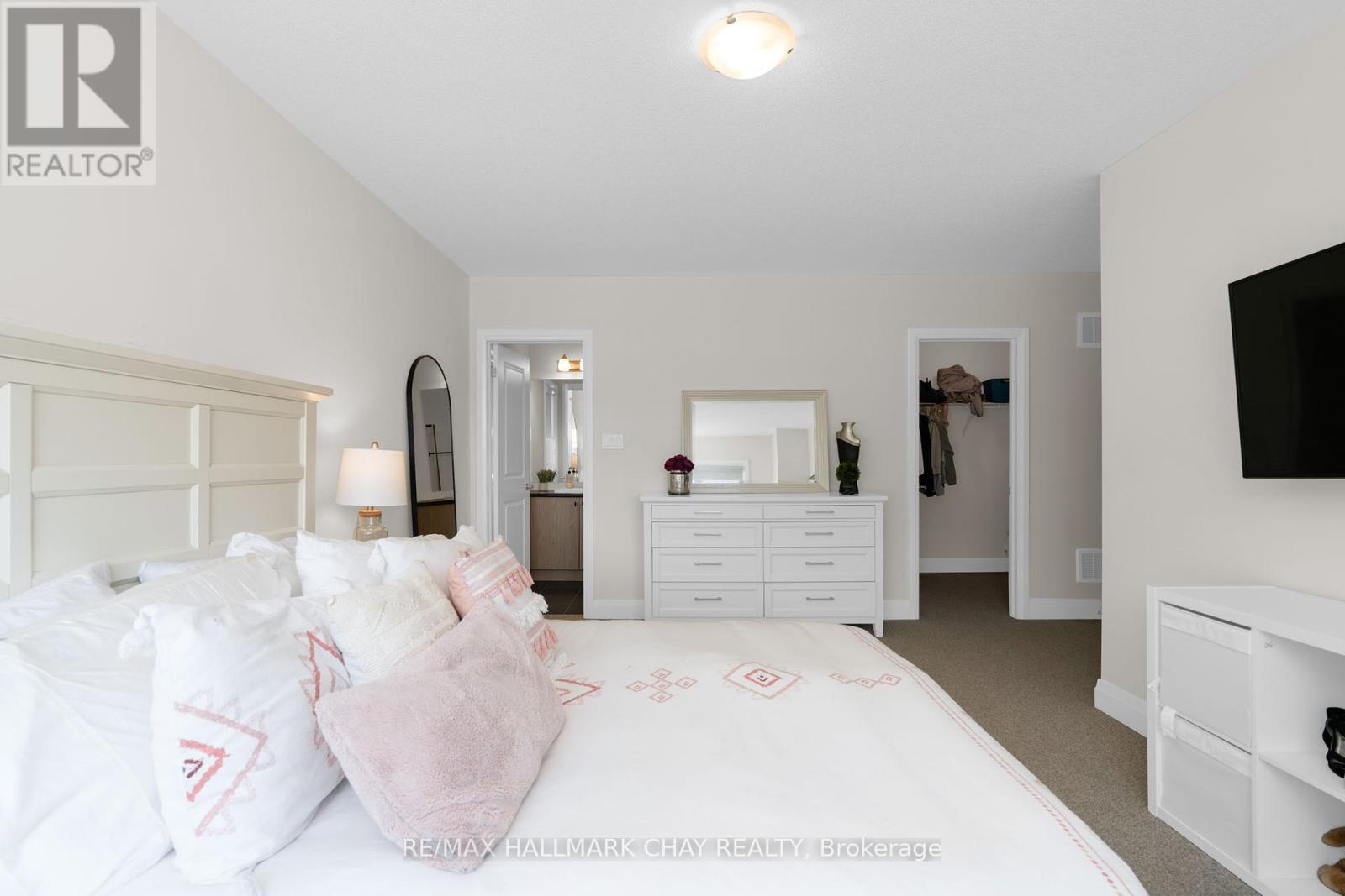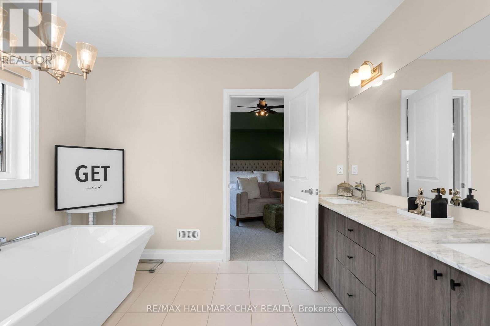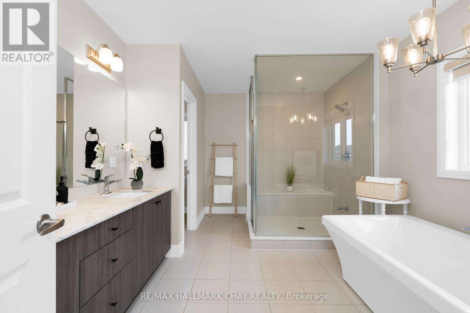 Welcome to 43 Calypso Avenue in Springwater's Midhurst Valley community. This newer build offers all the benefits of buying a new home, with the benefits of having the "new home" work done! Interior decorating has been done - not just a sea of beige! Fences have been installed. This 3,500 sq.ft. contemporary residence offers updates/upgrades throughout - light fixtures, window coverings - an abundance of tasteful decor & high end finishes. Welcoming front entrance leads to stunning foyer with 11' ceilings, upgraded 12' x 24' floor tiles. At the front of this home you will find a spacious "flex room" - home office, study zone, media room, den, main floor bedroom - the choice is yours! Gorgeous dining space complete with shiplap feature wall & elegant light fixture. On the other side of the feature wall, natural gas fireplace adds warmth to the open living space and heart of the home - the open kitchen & family room. Chef's delight kitchen shows to perfection with extended height cabinetry, quartz countertops, upgraded over-sized island for meal prep & entertaining. This hub of the home also features a Butler's Pantry for work space & additional storage. Seamless floor plan flows to the family room with expansive windows, wood paneled feature wall w/gas fireplace. Main floor convenience of statement 2 pc guest bath, mud room with additional storage & built in bench, as well as interior access to the double car garage. Hardwood staircase with feature window & light fixture leads to the 2nd level private family zone features primary bedroom, three spacious bedrooms - all bedrooms with the luxury of their own walk-in closets and private ensuites. Primary suite presents with resort-like vibes - tray ceiling, an abundance of space for a king-sized bedroom suite, privacy of your own sitting area for reading, relaxing - exceptionally well-appointed private ensuite with stand-alone soaker tub, separate glass-walled shower. This truly is a move-in ready gem - take a look t (id:51158)