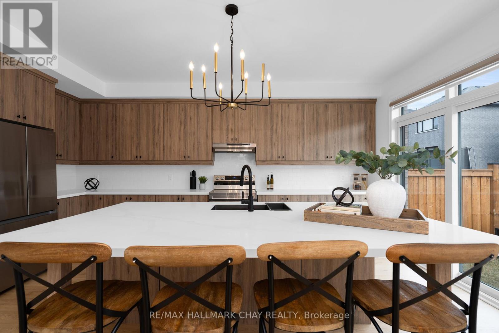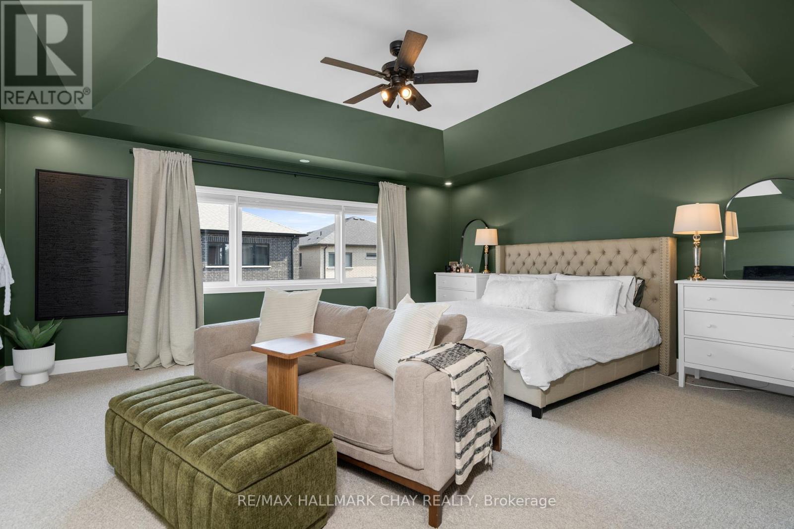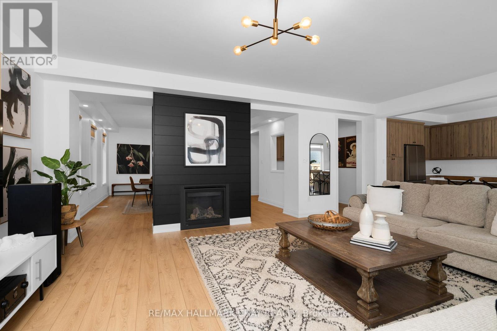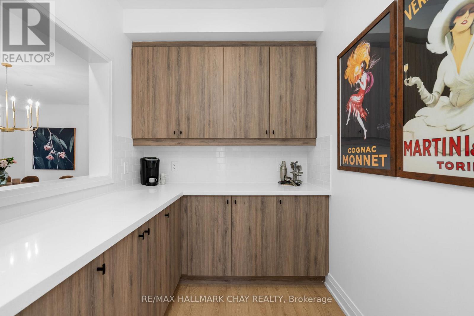 Welcome to 43 Calypso Avenue in Springwater's Midhurst Valley community. This newer build offers all the benefits of buying a new home, with the benefits of having the "new home" work done! Interior decorating has been done - not just a sea of beige! Fences have been installed. This 3,500 sq.ft. contemporary residence offers updates/upgrades throughout - light fixtures, window coverings - an abundance of tasteful decor & high end finishes. Welcoming front entrance leads to stunning foyer with 11' ceilings, upgraded 12' x 24' floor tiles. At the front of this home you will find a spacious "flex room" - home office, study zone, media room, den, main floor bedroom - the choice is yours! Gorgeous dining space complete with shiplap feature wall & elegant light fixture. On the other side of the feature wall, natural gas fireplace adds warmth to the open living space and heart of the home - the open kitchen & family room. Chef's delight kitchen shows to perfection with extended height cabinetry, quartz countertops, upgraded over-sized island for meal prep & entertaining. This hub of the home also features a Butler's Pantry for work space & additional storage. Seamless floor plan flows to the family room with expansive windows, wood paneled feature wall w/gas fireplace. Main floor convenience of statement 2 pc guest bath, mud room with additional storage & built in bench, as well as interior access to the double car garage. Hardwood staircase with feature window & light fixture leads to the 2nd level private family zone features primary bedroom, three spacious bedrooms - all bedrooms with the luxury of their own walk-in closets and private ensuites. Primary suite presents with resort-like vibes - tray ceiling, an abundance of space for a king-sized bedroom suite, privacy of your own sitting area for reading, relaxing - exceptionally well-appointed private ensuite with stand-alone soaker tub, separate glass-walled shower. This truly is a move-in ready gem - take a look t (id:51158)