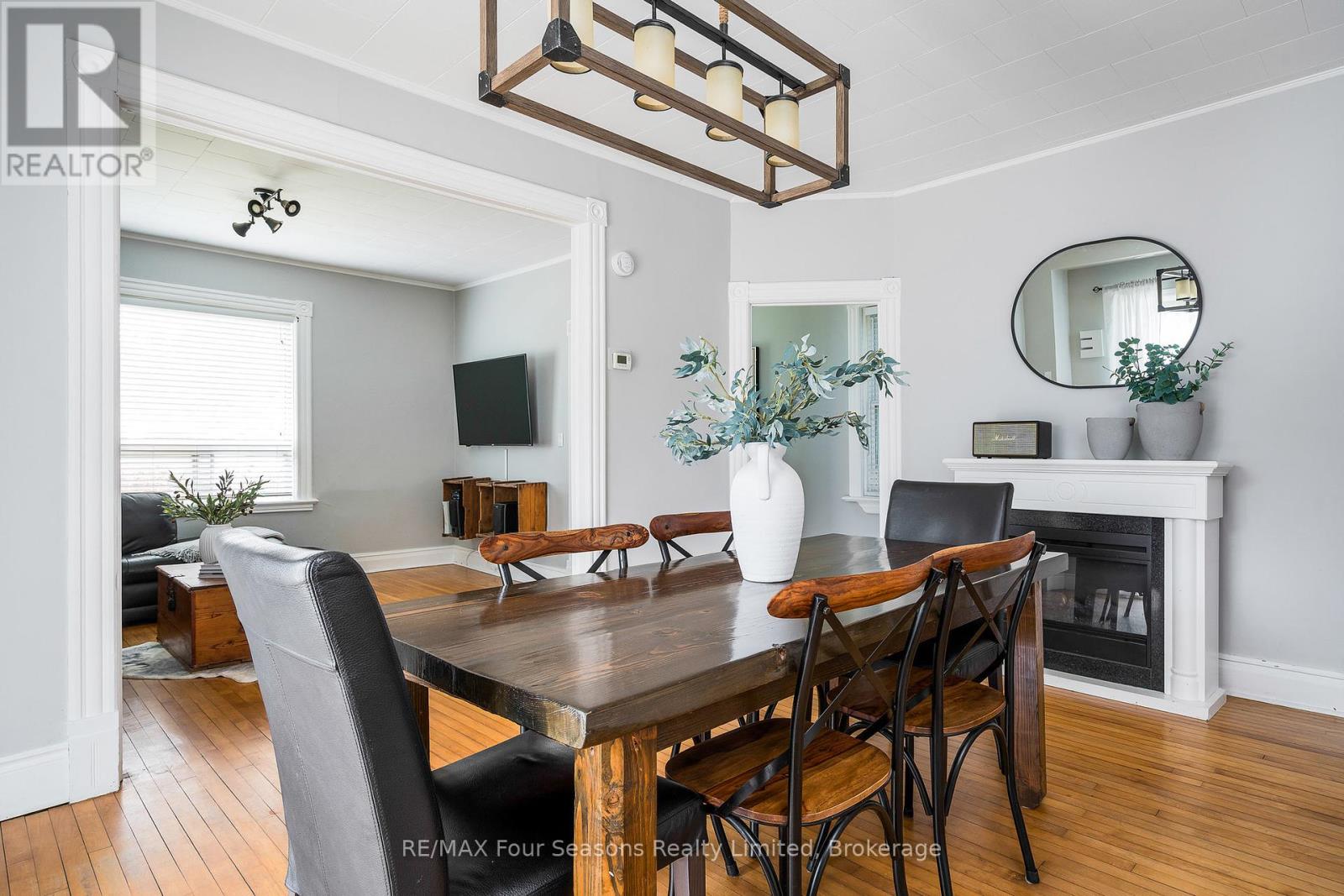 A character-filled century home nestled on one of Collingwood's most sought-after tree streets with a 16x40 ft DETACHED GARAGE/SHOP with 200 amp service. This home is ideal for hobbyists, contractors, or families that need space for snowmobiles, ski gear, 4-wheelers, or classic car enthusiasts! Set on a deep 51x165 ft town lot, providing tons of space in the backyard for family activities and entertaining. This property blends timeless charm with some thoughtful modern touches. Featuring 3-bedrooms and 2-bathroom, with a convenient main-floor primary bedroom offering flexibility for families or those looking for minimal stairs. A refreshed separate main floor bathroom through the laundry area adds comfort, while the classic architectural details remain intact, preserving the homes historic and unique appeal. Discover original hardwood flooring throughout the main level, complemented by new vinyl plank flooring upstairs in the hallway and bedrooms. The updated kitchen, complete with modern butcher block counters and bright skylight, that fills the space with natural light, creating an inviting hub for daily living. Garage has operational garage doors on both ends, making it a versatile space with endless potential. An additional storage shed offers even more room for tools, toys, or seasonal gear. Whether you're looking to embrace Collingwood's heritage or simply enjoy the peaceful, walkable neighbourhood, this home is a rare find. Don't miss the opportunity to own a piece of history with room to grow. Call now for your own private showing! (id:51158)