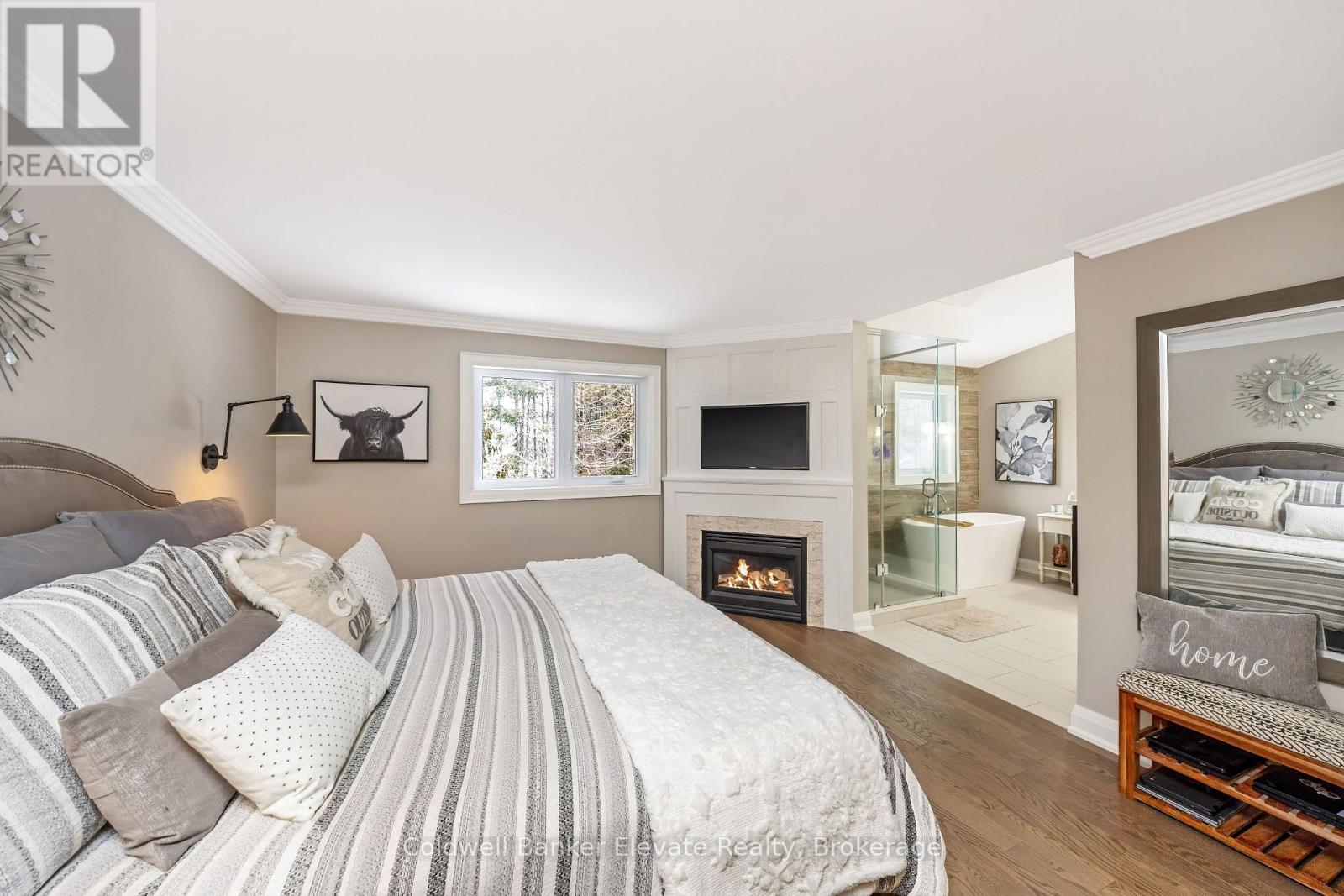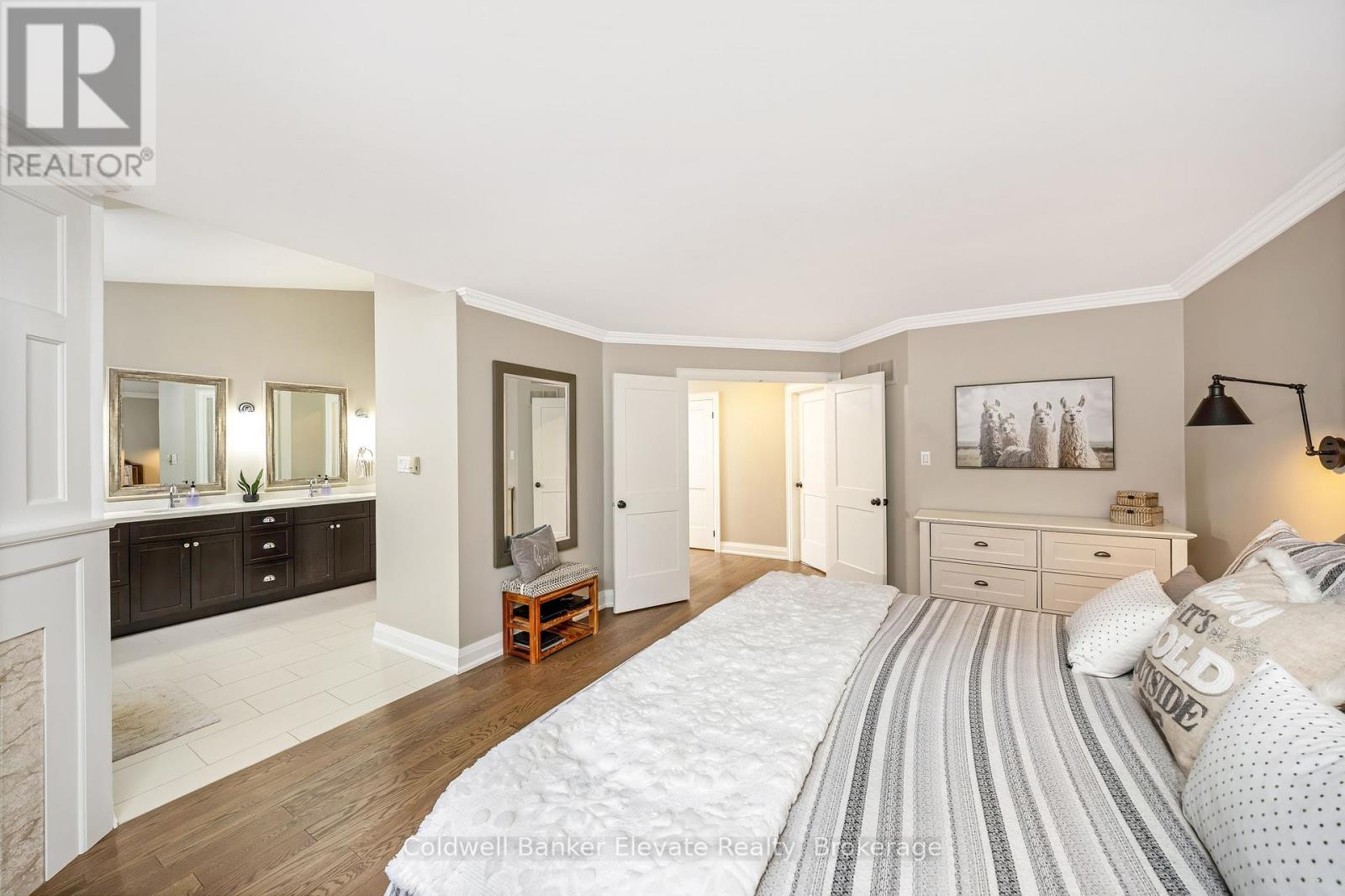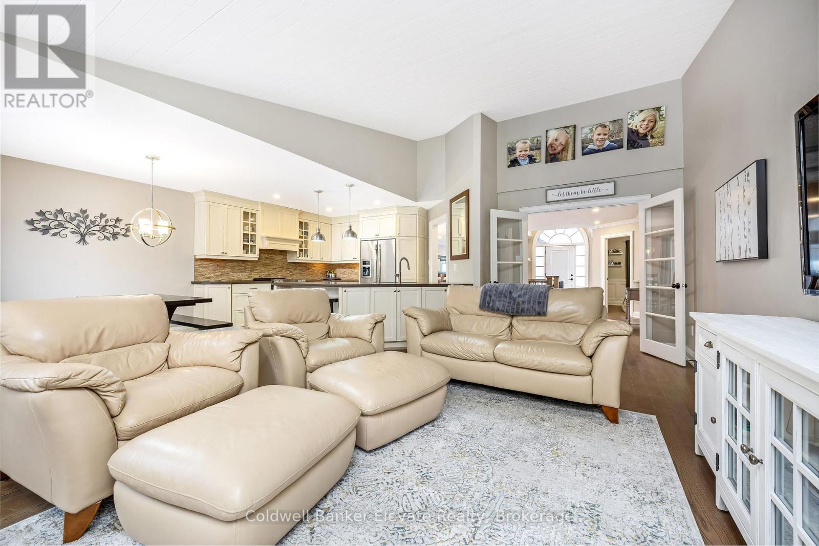 Welcome to Newman Place, a quiet cul-de-sac just minutes from downtown Georgetown, offering a stunning detached bungalow set on a private ravine lot with an inground pool. A landscaped front yard and stone walkway lead to a bright, inviting foyer highlighted by soaring ceilings, an arched transom window, and full-height sidelights. The main level features hardwood flooring throughout and a seamless open-concept layout ideal for both everyday living and entertaining. The living and dining areas are accented by crown moulding, expansive windows, and a striking feature wall with an electric fireplace. The kitchen showcases white shaker-style cabinetry, quartz countertops, tile backsplash, a centre island with breakfast bar seating, and stainless steel appliances. The adjoining breakfast area offers a walkout to a private composite deck with gas BBQ hookup and spiral staircase to pool area. Open to the kitchen, the family room impresses with vaulted shiplap ceilings, a gas fireplace, & large windows overlooking the ravine. The primary bedroom retreat features hardwood flooring, a walk-in closet with built-in shelving, a gas fireplace, and a spa-inspired five-piece ensuite complete with soaker tub, glass-enclosed shower, and double vanity. Two additional bedrooms, a four-piece family bathroom, and a convenient laundry room with garage access complete the main level. The finished lower-level walkout is designed for entertaining, featuring a movie room, office area, and a spacious recreation room with wet bar and gas fireplace. Two additional bedrooms & a four-piece bathroom provide excellent space for teens, guests, or in-law potential. Step outside to enjoy the private backyard oasis, perfect for hot summer days, complete with an interlocking stone patio, heated inground saltwater pool with waterfall, cabana, and the private ravine setting. All this close to Downtown, Farmer's Market & Park Public School with easy access to commuter routes. Don't miss out on this one! (id:51158)